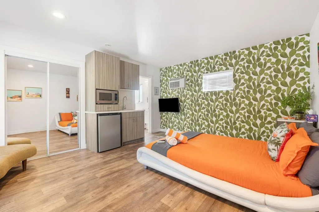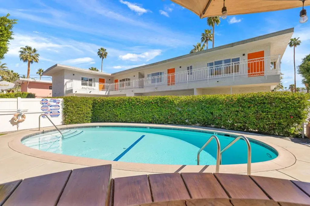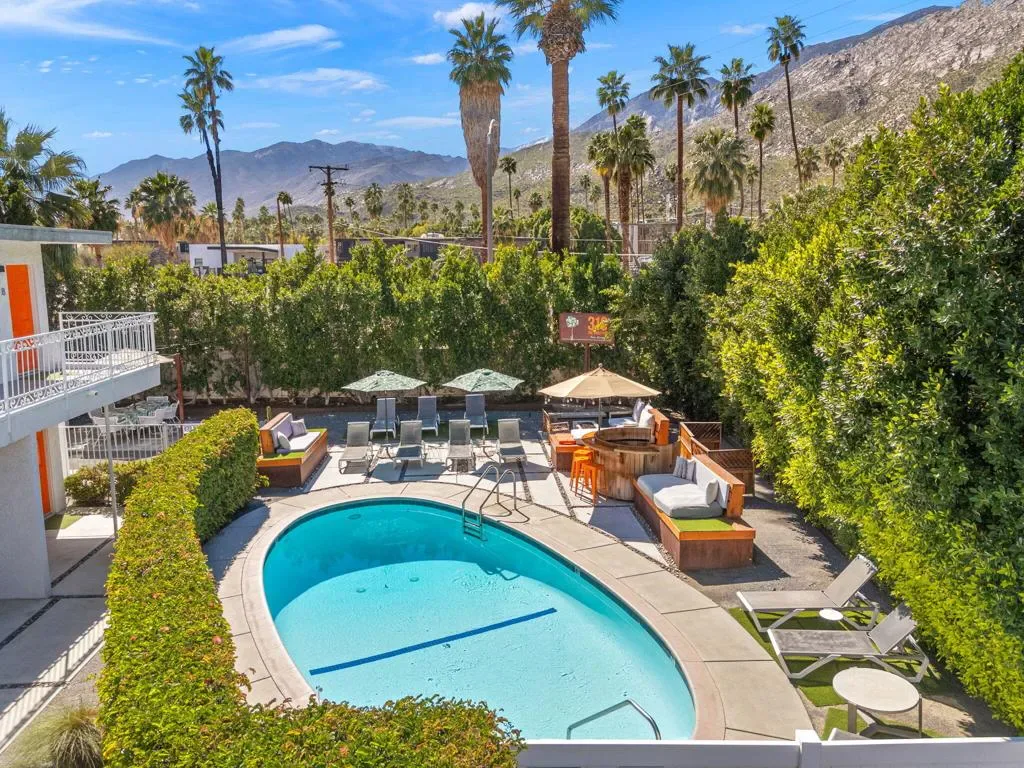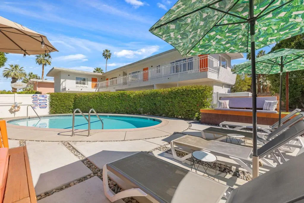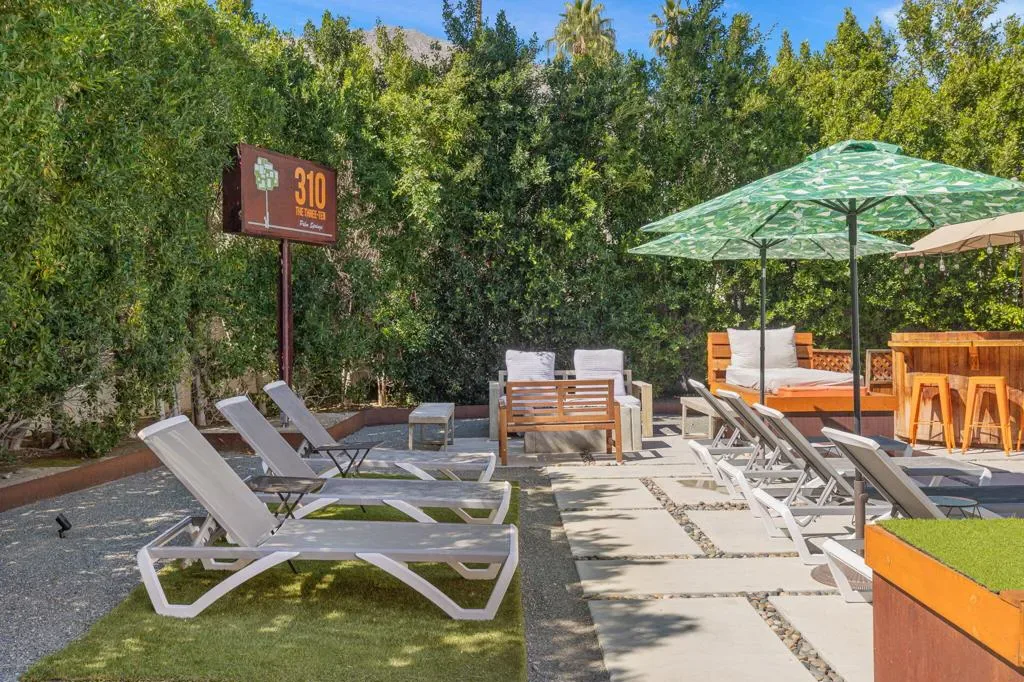 Nestled in the heart of Palm Springs The Three Ten Hotel offers an elevated desert escape where timeless design meets effortless luxury. This beautifully restored Mid-Century boutique property captures the spirit of classic Palm Springs while delivering the comfort, privacy, and style today’s discerning travelers expect.Designed for intimate getaways and memorable group experiences, the hotel features seven spacious, vintage-inspired suites thoughtfully arranged around a tranquil central pool courtyard. Each room blends retro charm with modern convenience, featuring luxurious queen beds, curated furnishings, and private kitchenettes. Two larger suites offer full kitchens and separate living areas–perfect for extended stays, entertaining, or relaxing in true Palm Springs fashion.Guests are invited to unwind beneath endless desert skies while enjoying sweeping views of the majestic San Jacinto Mountains.Sun-drenched afternoons by the pool transition seamlessly into breathtaking sunset evenings, where the surrounding desert landscape creates an atmosphere of serenity and understated glamour.Whether you’re planning a private celebration, a stylish group retreat, or a festival getaway to nearby events like the world-renowned Coachella Valley Music and Arts Festival or Stagecoach Festival, The Three Ten Hotel offers a boutique experience designed for unforgettable moments.With accommodations for up to 17 guests, the property is ideal for exclusive buyouts, bachelorette weekends, birthdays, and curated desert escapes–where mid-century elegance, mountain views, and Palm Springs sophistication come together in perfect harmony.