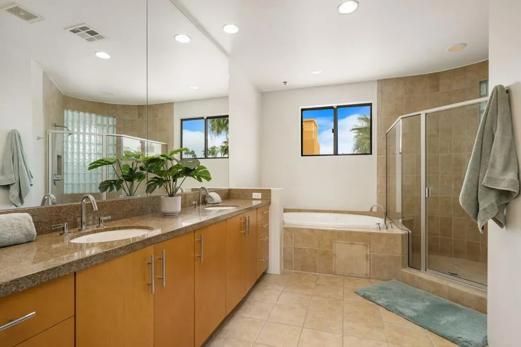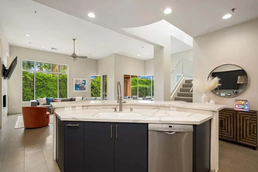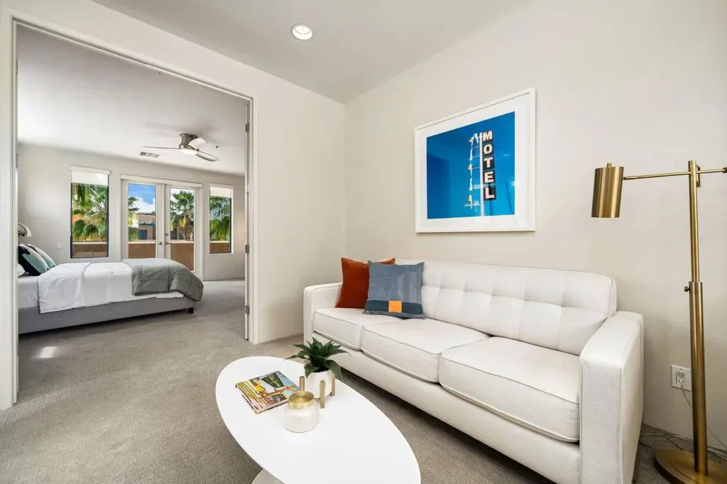 Sophisticated and sun-drenched, this contemporary downtown townhome offers an exceptional blend of luxury and livability in one of Palm Springs’ most desired locations. Soaring ceilings anchor the great room, flowing into a beautifully updated kitchen, perfect for entertaining or quiet evenings in. The private pool and spa, covered patio, and prime location create the perfect setting for relaxing or entertaining. Featuring an open design, this home is thoughtfully laid out across a well-appointed floor plan complete with an inside laundry room and an oversized, finished two-car attached garage. On the second floor, you will find the expansive primary retreat, featuring a spa-inspired bath with double sinks, soaking tub, an oversized shower, a private water closet, and a generous walk-in closet. A loft/den and private balcony complete this sanctuary-like escape. HOA includes insurance! Offered furnished per inventory and just moments from premier shopping, dining, entertainment, and outdoor recreation, this property offers the perfect balance of privacy, sophistication, and desert living at its finest.