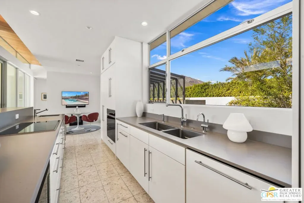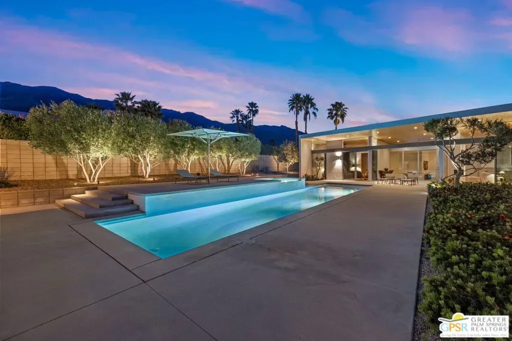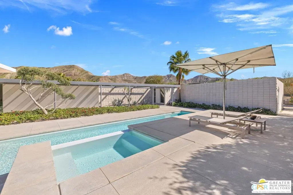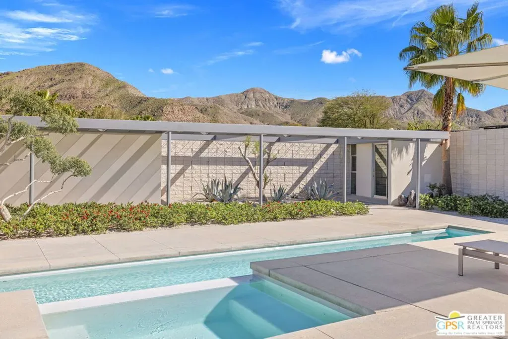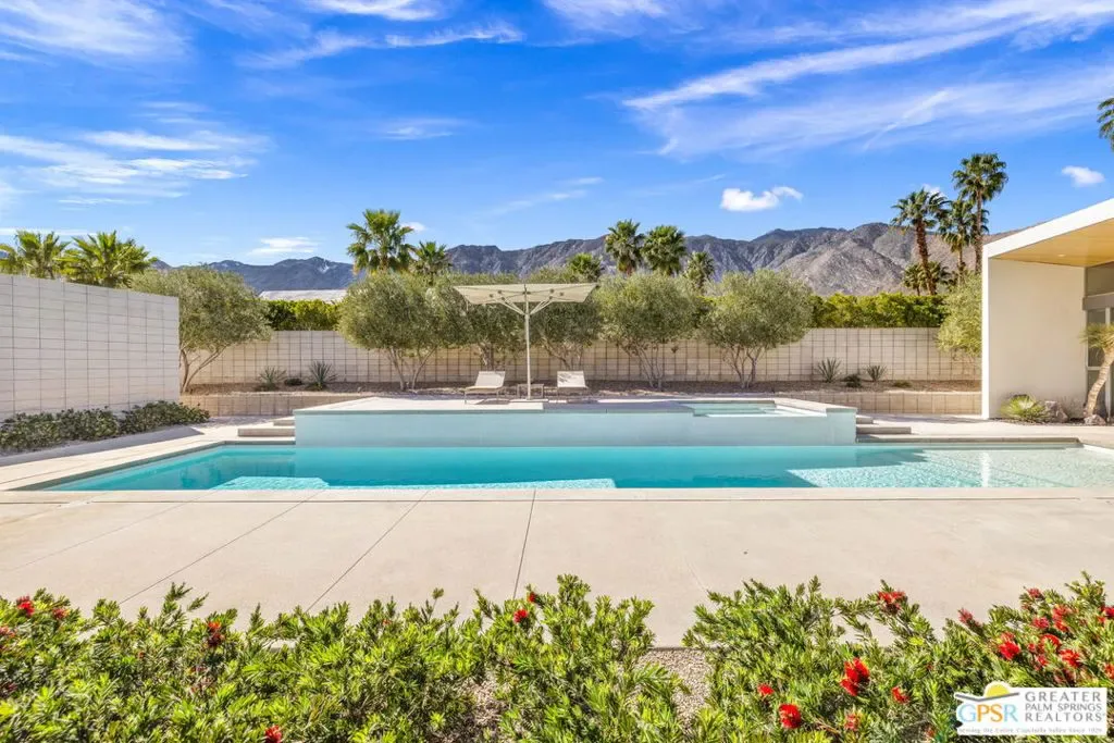 A bold expression of modern desert architecture, this striking estate designed by award-winning architect Lance O’Donnell stands as a masterwork of design, light, and landscape framed by sweeping 360-degree mountain views in every direction. Completed in 2017, the residence is a study in precision and intention, where materials, orientation, and environment converge to create a home that is as intelligent as it is beautiful. From the moment of arrival, the architecture makes a statement. A facade of split-face concrete block and Corten steel introduces a palette that is both grounded and sculptural, setting the tone for interiors that unfold with clarity and purpose. Terrazzo floors run seamlessly throughout, while expansive walls of glass dissolve the boundary between indoors and out, capturing the changing light of the desert from sunrise to sunset. The home is thoughtfully composed as a private compound, offering a 2-bedroom, 2.5-bath main residence alongside a detached 1 bedroom, 1 bath guest house – ideal for hosting while maintaining a sense of retreat. The floor plan is carefully calibrated to the path of the sun, maximizing natural light in winter and minimizing heat in summer, a subtle yet powerful expression of architectural intelligence. At the heart of the home, the kitchen is both refined and functional, featuring Sub-Zero and Wolf appliances, induction cooking, and a generous walk-in pantry – all opening to living and dining spaces that flow effortlessly to the courtyard beyond. Outdoor living becomes an immersive experience. A private interior courtyard anchors the home, centered around a saltwater pool and spa, fire feature, and multiple gathering areas framed by mature landscaping and uninterrupted mountain views. This is a setting designed not just for entertaining, but for living in rhythm with the desert. Equally impressive is the home’s performance. Dual solar arrays, advanced water filtration, four-zone climate control, UV-protected glazing, motorized shading, and fully integrated smart systems deliver a level of efficiency and control that matches the home’s architectural pedigree. Gated and private, with dual driveways, a two-car garage, and additional covered parking, the property offers both presence and practicality. Architectural, intentional, and quietly extraordinary. This is not simply a home, but a modern desert statement.