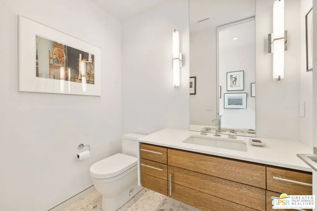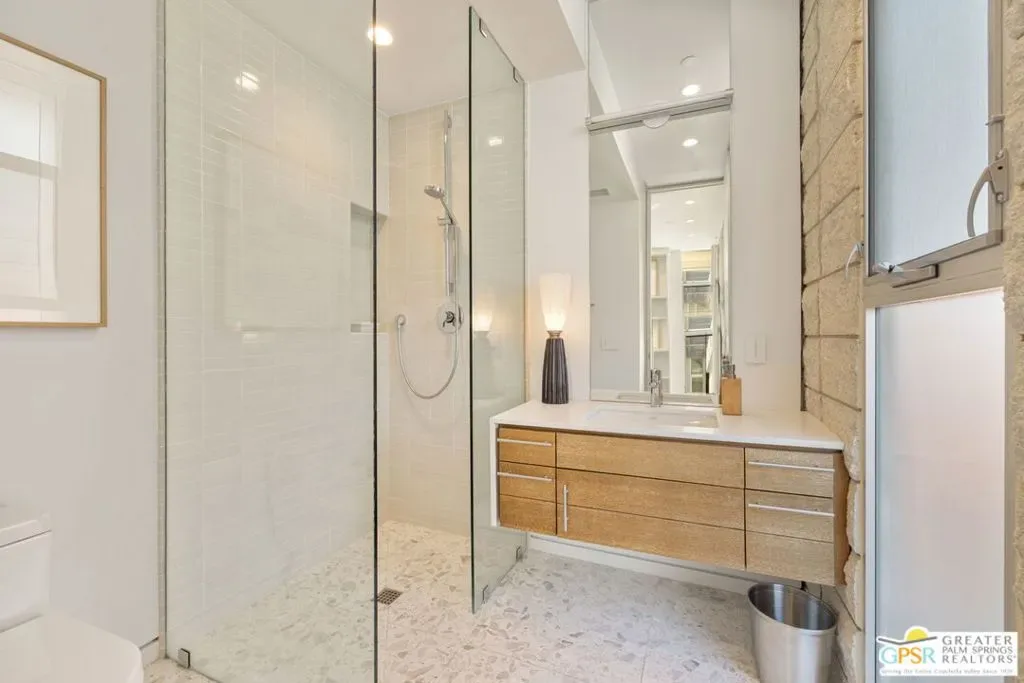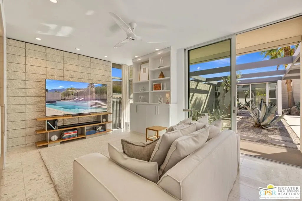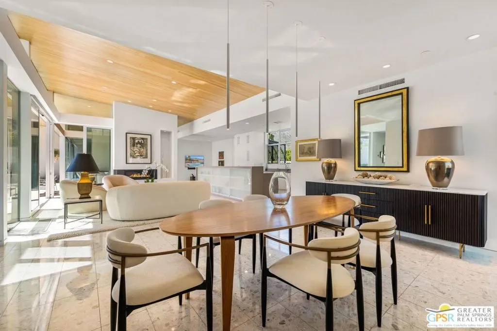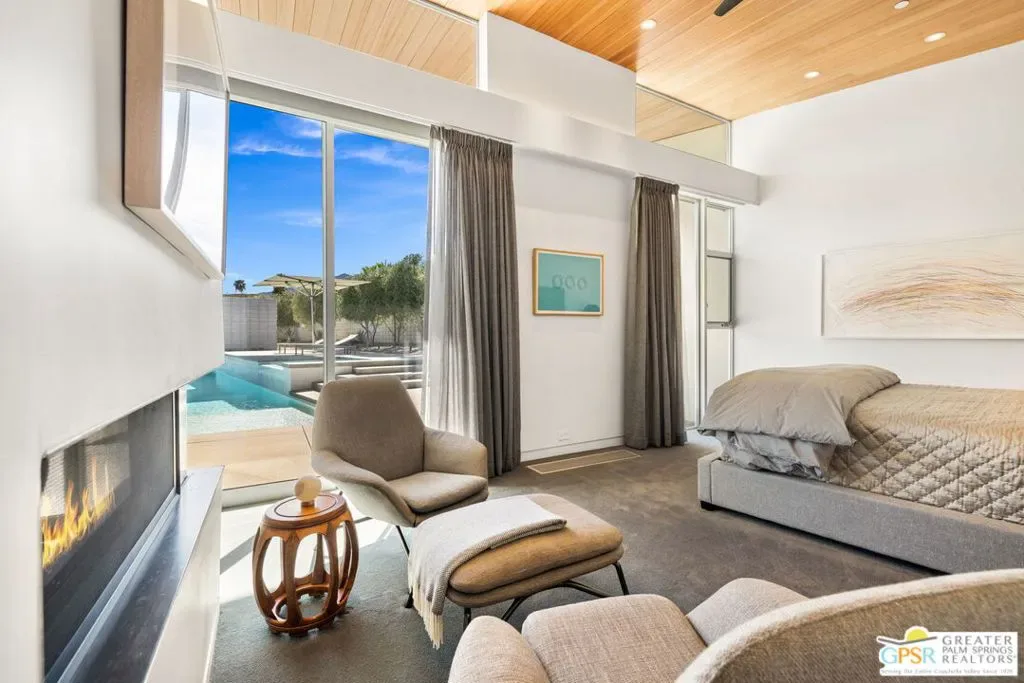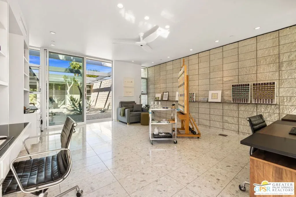 A bold expression of modern desert architecture, this striking estate designed by award-winning architect Lance O’Donnell stands as a masterwork of design, light, and landscape framed by sweeping 360-degree mountain views in every direction. Completed in 2017, the residence is a study in precision and intention, where materials, orientation, and environment converge to create a home that is as intelligent as it is beautiful. From the moment of arrival, the architecture makes a statement. A facade of split-face concrete block and Corten steel introduces a palette that is both grounded and sculptural, setting the tone for interiors that unfold with clarity and purpose. Terrazzo floors run seamlessly throughout, while expansive walls of glass dissolve the boundary between indoors and out, capturing the changing light of the desert from sunrise to sunset. The home is thoughtfully composed as a private compound, offering a 2-bedroom, 2.5-bath main residence alongside a detached 1 bedroom, 1 bath guest house – ideal for hosting while maintaining a sense of retreat. The floor plan is carefully calibrated to the path of the sun, maximizing natural light in winter and minimizing heat in summer, a subtle yet powerful expression of architectural intelligence. At the heart of the home, the kitchen is both refined and functional, featuring Sub-Zero and Wolf appliances, induction cooking, and a generous walk-in pantry – all opening to living and dining spaces that flow effortlessly to the courtyard beyond. Outdoor living becomes an immersive experience. A private interior courtyard anchors the home, centered around a saltwater pool and spa, fire feature, and multiple gathering areas framed by mature landscaping and uninterrupted mountain views. This is a setting designed not just for entertaining, but for living in rhythm with the desert. Equally impressive is the home’s performance. Dual solar arrays, advanced water filtration, four-zone climate control, UV-protected glazing, motorized shading, and fully integrated smart systems deliver a level of efficiency and control that matches the home’s architectural pedigree. Gated and private, with dual driveways, a two-car garage, and additional covered parking, the property offers both presence and practicality. Architectural, intentional, and quietly extraordinary. This is not simply a home, but a modern desert statement.