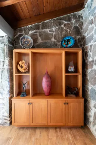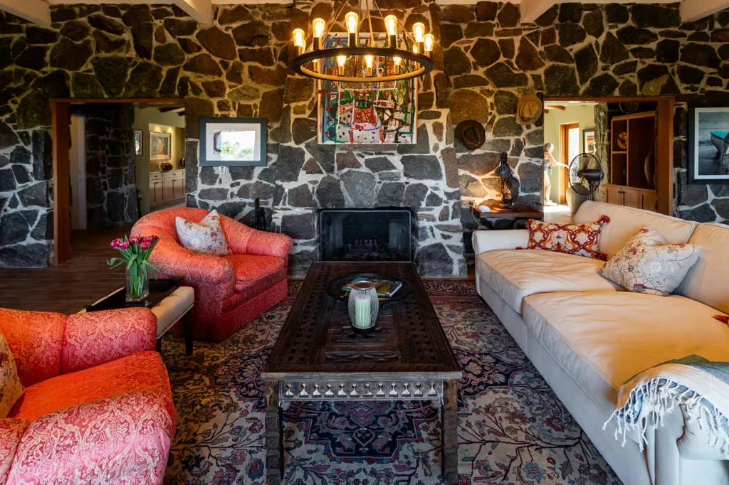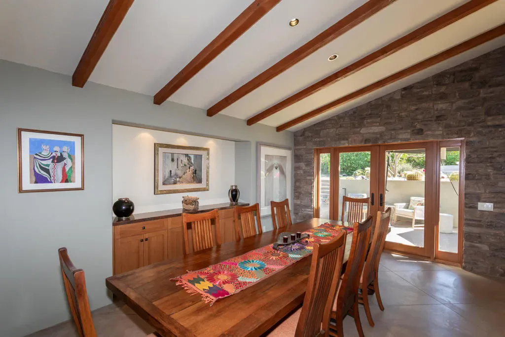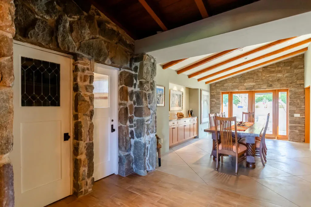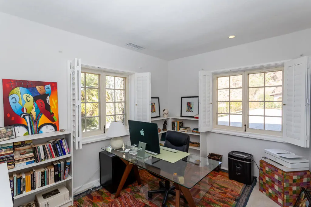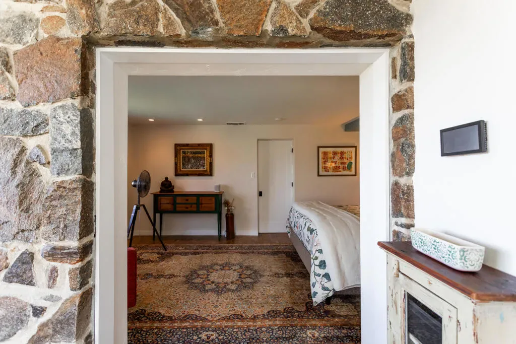 If you are looking to own a piece of history without sacrificing modern amenities look now further. This iconic desert retreat has a class one historical designation. Know as the Giannini residence, the original owners and founders of Bank of America made this their desert retreat nestled higher up in Araby Cove. Araby cove is one of the first and oldest subdivisions in South Palm Springs. The home was constructed with board formed , poured in place concrete and finely cut locally quarried stone over the concrete walls which is reminiscent of the craftsmanship from the 1880s-1930s era. The property also features a basement and bank type vault which could be a nice wine cellar. The basement stays at a cool temperature naturally through the year and has added AC in case you would like it even cooler. A large Albert Frey deck serves as a star and view gazing platform as well as a shade for the cars underneath. This could be a huge party space as well! Enter up a grand stair way to a stone porch! The porch is naturally cool being surrounded by rock and the orientation from the sun. The views from the front of the home are incredible and expansive. Enter the home thru old French doors and you are greeted with a huge original rock fireplace. The living room flows nicely into an office nook, then into a gourmet kitchen, butler pantry and coffee bar and breakfast nook. This all opens up to the lovely outdoor space surrounded by patios, a kidney shaped pool, spa and top of the line desert scape. There are outstanding views from each of the homes outside and inside viewing areas. Back inside the home we will find a large formal dining room to accompany your chefs kitchen. There is one guest bedroom and a den serviced by a jack and jill bath. The second bath on that side also able to serve the entertaining and dining areas. The other side of the home offers the primary suite with a large bath and sitting area. Also on that side is the second guest bedroom. This home has changed hands less than a handful of time in a 100 years. This is a a once in a lifetime opportunity to own a piece of history. The current owner has installed a very expensive and extensive HVAC system, added a whole house water softening system ,added new insulation, updated appliances, serviced the septic system , updated wiring and so much more. The home is ready for your upmost enjoyment and trouble free living!