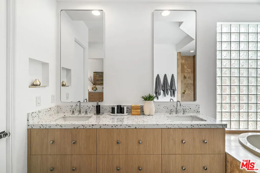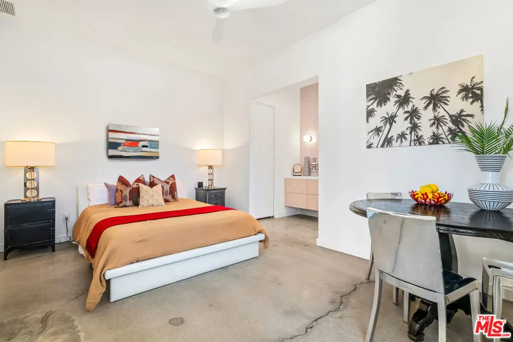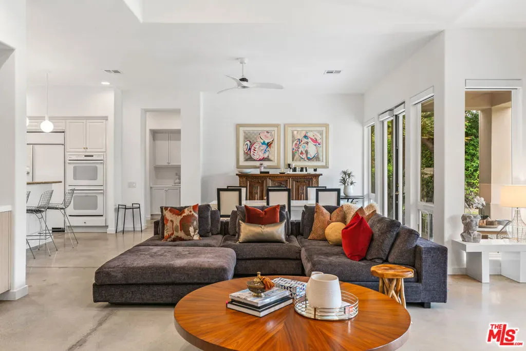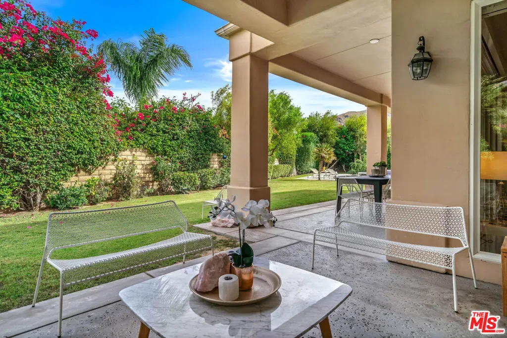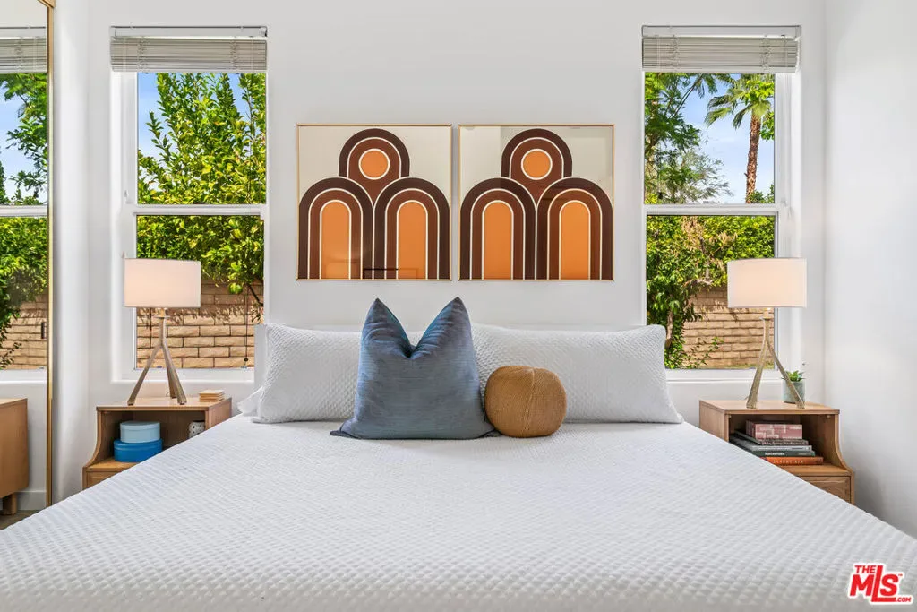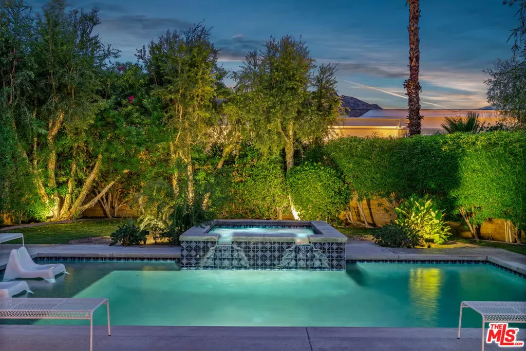Tucked away on a serene cul-de-sac in the prestigious Araby enclave of South Palm Springs, this exquisitely re-imagined contemporary Mediterranean estate embodies elevated desert living at its finest. Set on FEE SIMPLE LAND (you own the land) with no HOA, the residence offers approximately 3,000 square feet of sophisticated living space, thoughtfully designed to balance refined elegance with relaxed resort-style comfort. A grand sense of arrival is created by soaring ceilings, expansive sight lines, and an abundance of natural light that flows effortlessly through the open-concept floor plan. At the heart of the home, the chef’s kitchen is both functional and striking, featuring a 6-burner cook top, dual ovens, and a generous walk-in pantry perfectly suited for a curated coffee bar or additional prep space. The kitchen seamlessly connects to both a formal dining room and an inviting great room with a stylish bar area, creating an ideal setting for intimate gatherings or large-scale entertaining. The primary suite is a private sanctuary, offering a spa-inspired experience with a spacious walk-in closet, an oversized walk-in shower, and a separate jetted soaking tub designed for ultimate relaxation. Each bathroom has been thoughtfully updated with designer finishes and bespoke tile work, complementing the home’s polished concrete floors and cohesive contemporary aesthetic. Modern enhancements include dual-zoned air conditioning,, motorized window coverings, and a fully integrated security system delivering both comfort and peace of mind. Designed to capture the essence of Palm Springs living, the outdoor spaces are nothing short of exceptional. The expansive backyard unfolds as a private resort, complete with a sparkling pool and Baja shelf, spa, covered lounge patio, built-in BBQ, and lush citrus trees. Framed by incredible views (no power lines) of the San Jacinto Mountains, the setting offers breathtaking sunsets and an unparalleled indoor-outdoor lifestyle. The generous lot provides additional space for expansion or further customization. A detached private casita enhances the property’s versatility, ideal for hosting guests, accommodating extended family, or creating a refined home gym or art studio. A separate den offers a versatile additional living space, ideal as a media room, private office, or relaxed lounge. Spacious garage with high ceilings, ideal for maximizing vertical storage or creating additional overhead space. Currently eligible for a short-term vacation rental permit, this property presents a rare opportunity to own a luxury residence with exceptional income potential. Ideally located steps from scenic hiking trails, premier dining, boutique shopping, and the vibrant energy of downtown Palm Springs, this is a truly exceptional offering in one of the city’s most coveted neighborhoods.