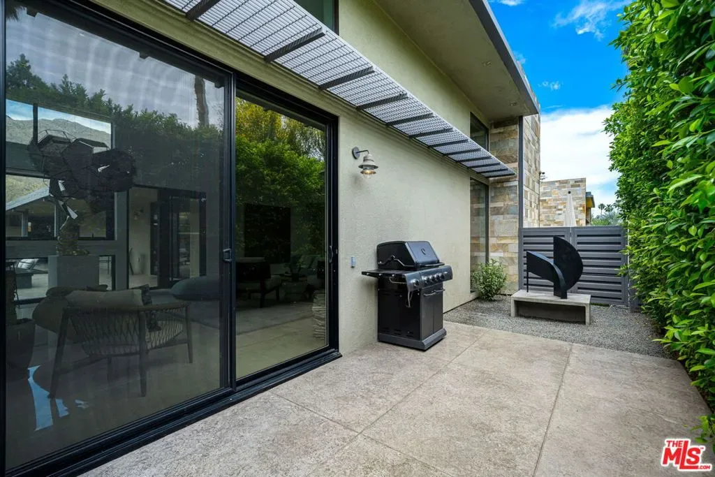 1530 Palm Colony Drive, Palm Springs – A Private Palm Springs Architectural Retreat Designed for Elevated Living. Perched within a private gated intimate enclave of just 19 residences built in 2005 in South Palm Springs, this exceptional fee-simple home is a study in design, intention, and quiet luxury set against the breathtaking backdrop of the San Jacinto Mountains. From the moment you arrive, there is a sense of entry into something rare, an environment defined by privacy, architectural clarity, and a refined connection to the surrounding landscape. Tucked within a peaceful, gated courtyard setting, the home offers a quiet retreat just moments from Palm Springs’ most coveted lifestyle destinations. Conceived as a living gallery, the residence has been elevated through an extensive, design-driven remodel by award-winning Dallas firm Bodron Fruit and featured in INTERIORS Magazine bringing a level of architectural intention and refinement rarely found in the desert. Every detail reflects that vision: Clerestory windows invite natural light to move gracefully throughout the interiors, while museum-quality recessed lighting, wall washers, and art spotlights create a dynamic canvas, designed to showcase a collection or simply elevate everyday living and atmosphere. The result is a home that feels both curated and deeply livable. The interiors are striking yet serene. Porcelain terrazzo floors provide a seamless, gallery-like foundation, while soaring ceilings and expansive walls of glass dissolve the boundary between indoors and out. A Carrara statuary marble fireplace and built in book shelve anchors the main living space with quiet sophistication, creating a setting that feels both grand and intentional. At the heart of the home, the volume-sque open-concept living, dining, and kitchen areas are designed for effortless entertaining. A custom indoor/outdoor bar connects through retractable glass panel, allowing gatherings to flow naturally to the private pool and spa set against panoramic mountain views that shift beautifully throughout the day. The kitchen is tailored for both design and performance, featuring custom cabinetry with retractable opaque glass panels and a suite of professional-grade appliances, including a Wolf range and oven, Sub-Zero refrigeration, and a whisper-quiet Bosch dishwasher each selected for style, longevity, precision, and elevated daily use. The primary suite offers a tranquil retreat generous in scale, with custom drapery, high ceilings, and a spa-inspired bath clad in Carrara marble. Fantini fixtures bring a level of Italian craftsmanship and precision, while a Kohler bidet enhances comfort and refinement. Guest spaces continue the narrative, including a steam shower and custom detailing throughout. Technology is seamlessly integrated, with a full Lutron system allowing effortless control of lighting, shades, and ambiance transforming the home from bright and airy by day to warm and cinematic by night. Outdoors, the experience is equally compelling. The private pool and spa are framed by mountain views, while thoughtfully designed exterior lighting enhances the architecture and landscape after sunset. A detached casita, complete with its own fireplace and wet bar, offers versatility as a guest retreat, creative studio, or private office. Built with modern systems and solar, this residence offers the best of Palm Springs living architectural integrity, contemporary infrastructure, and a level of design that would be exceptionally difficult to replicate today. Positioned just moments from local favorites like Koffi Palm Springs and the iconic Ace Hotel & Swim Club, the home offers access to the vibrant energy of the city while preserving a sense of retreat and exclusivity. This is more than a home, it’s a fully realized lifestyle. A place where design inspires, privacy restores, and every detail has been considered to elevate the way you live.