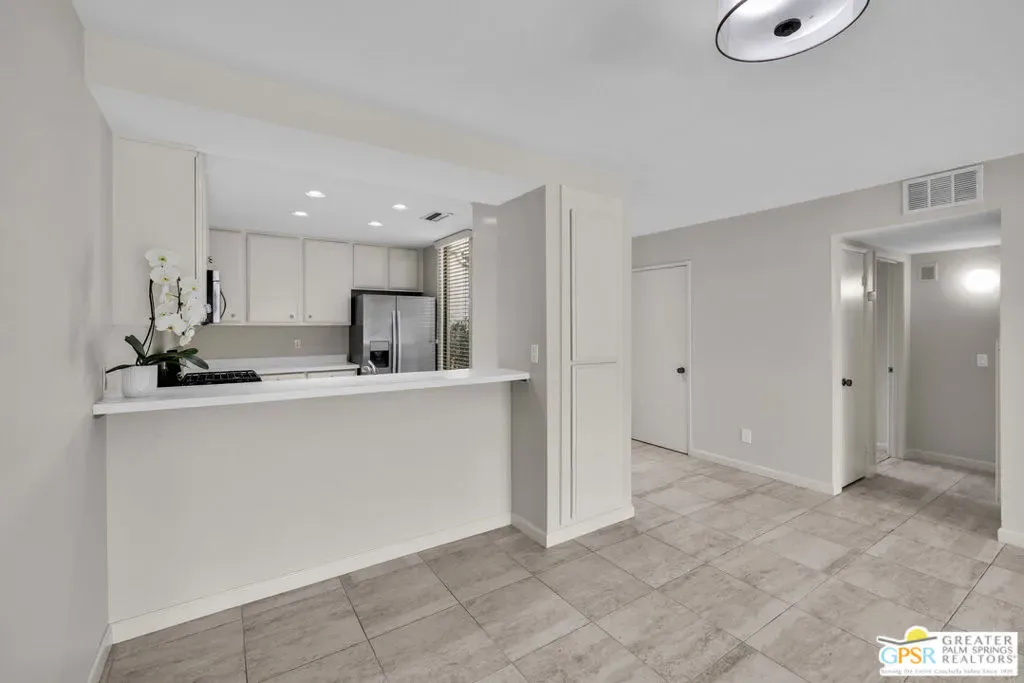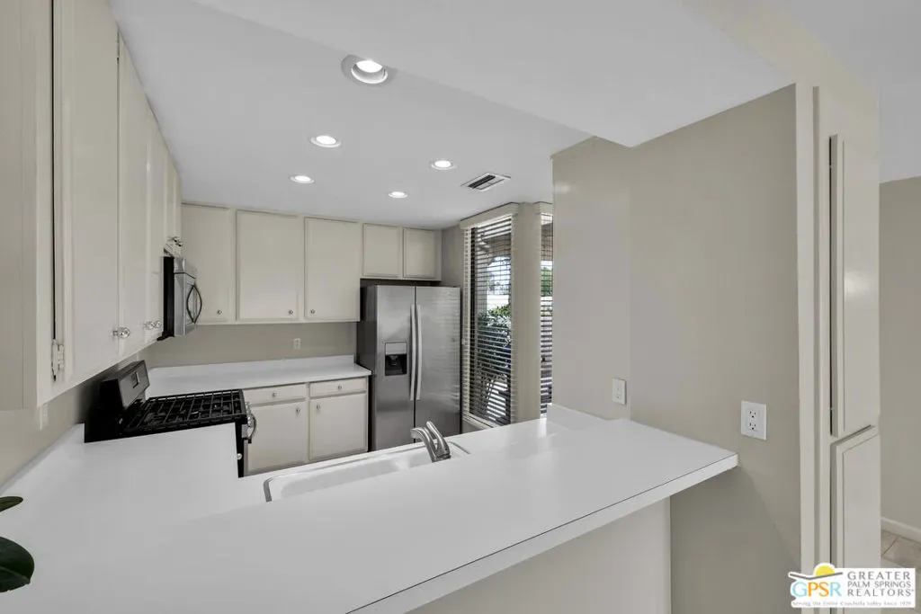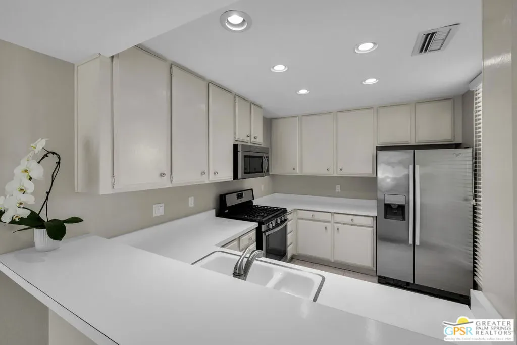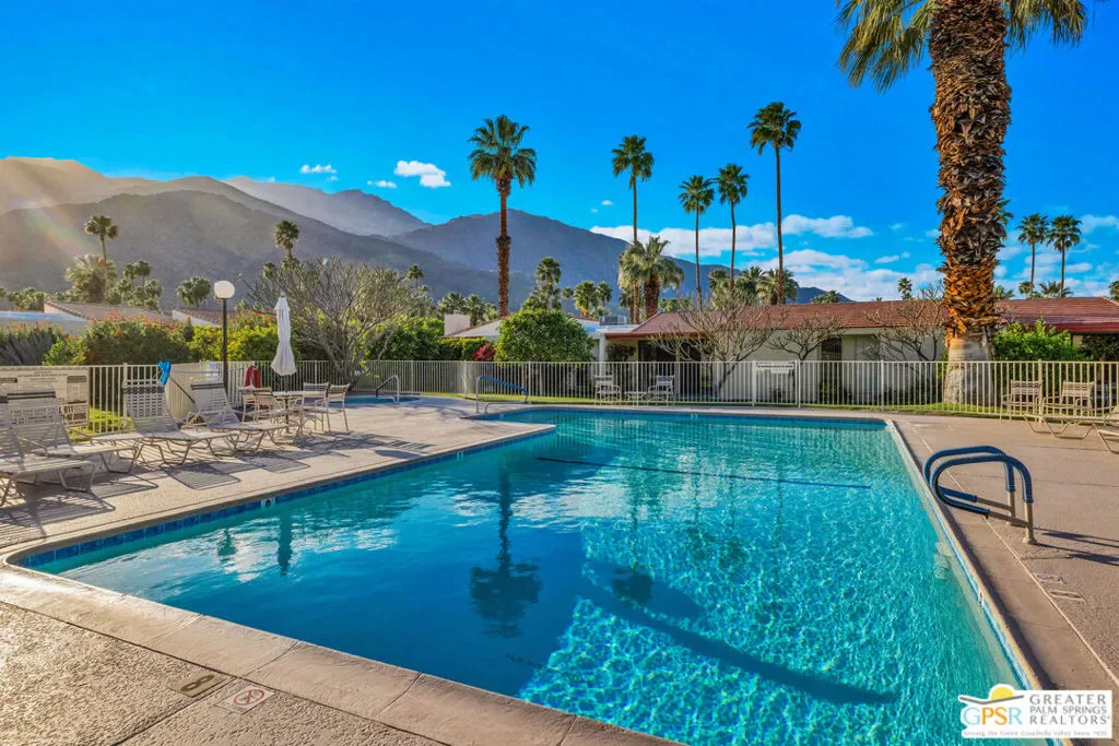 Located in the highly sought-after South Palm Springs neighborhood of Canyon Palms, Canyon South One is a low-density community of just 68 single-story homes, each with an attached one-car garage. This 2 BD / 2 BA condo offers 1,325 sq. ft. of living space and is not to be missed. Enter through a private front courtyard into the spacious open floor plan featuring tile flooring, vaulted ceilings, and gorgeous south-facing pool and mountain views. The generously sized primary bedroom feels like a private retreat with a dual-vanity ensuite bath, three closets, and patio access just steps from one of the community’s sparkling pools and spas. An attached utility room with newer washer and dryer leads directly to the one-car garage. Canyon South One is a pet-friendly community (association rules apply). Monthly HOA dues include three community pools and spas, water, trash, and exterior maintenance including roof, stucco, and paint. Residents enjoy beautifully manicured grounds with walking paths winding among an abundance of fruit trees – lemon, lime, grapefruit, orange, and tangelo – along with mountain views in every direction. All this, plus nearby hiking trails and popular local hotspots including The Ace Hotel, Koffi, Mr. Lyon’s, PS Underground, and Smoketree Village just a short distance from your front door. With Indian Canyons Golf Resort, Downtown Palm Springs, and Palm Springs International Airport just minutes away, this home is ideal as a full-time residence, seasonal retreat, or vacation getaway. Condos with this view rarely come on the market. Yes, you truly can have it all! Note: The HVAC system will require replacement and the home has been priced to reflect this. Property is located on private lease land (not tribal) with a lease expiration of 01/31/2072.