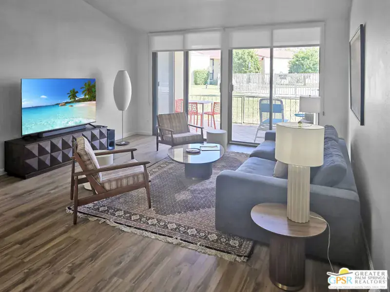 Seasonal rental–months available May-June 2026 at $2800, Sep 2026 at $2800, Oct/Nov 2026 @ $3500, Jan-Mar 2027 at $4500. This turnkey furnished 2bed/2bath 1325 sq ft condo is your PERFECT Palm Springs getaway in a beautifully maintained community. Open floor plan flows seamlessly from great room to pool side view patio (just steps from community pool/spa) that also offers wonderful mountain views. Both the great room and the primary bedroom have sliding lass doors leading to this patio. Condo is all on one level with a dedicated open parking spot steps from front door and front patio. Visitor parking spots steps from this condo also available. (there is a 1 car garage but won’t be available as owners have stored one of their cars there). There is also a laundry room equipped with full size Washer/Dryer units. All this with an unbeatable location in South Palm Springs, minutes from downtown. Easy access to shopping, dining, hiking trails, golf and valley entertainment. NO PETS ALLOWED. Tenant pays combined elec/gas usage over $250/mo. Rental comes with cable TV,internet.