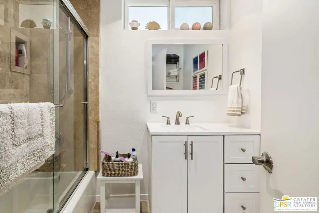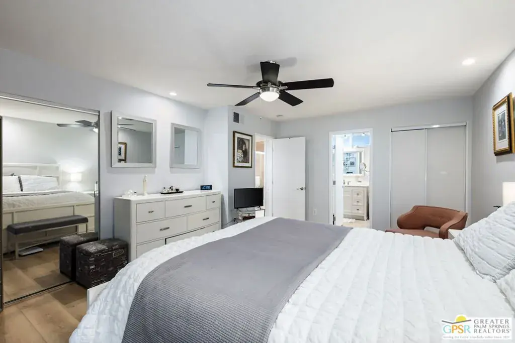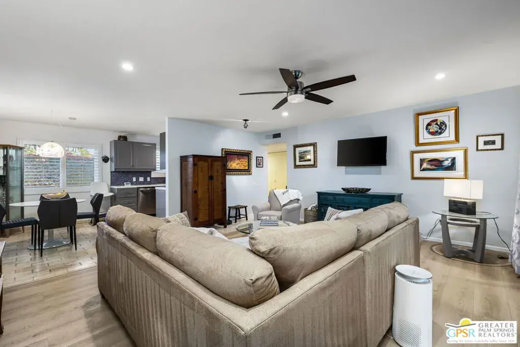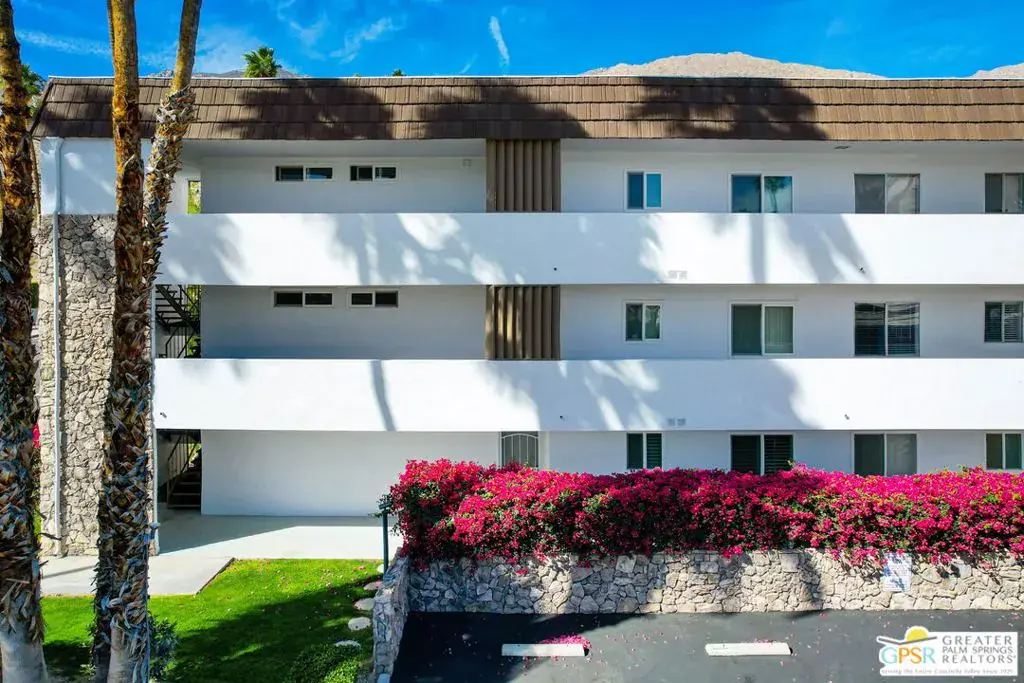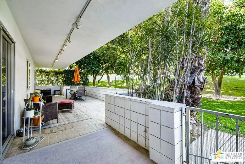 This one-of-a-kind Canyon View Condos unit offers exceptional convenience and style, starting with a ground-floor entry, easy guest parking, and your assigned covered carport just steps from the door. Thoughtfully upgraded and meticulously maintained, this spacious two-bedroom, two-bath home boasts the ONLY extended patio in the entire complex – a rare and coveted feature. Nestled within lush, fruit tree-filled grounds, Canyon View Condos is the sister community to the architecturally significant Canyon View Estates, designed by Wexler & Harrison and built by Roy Fey. Residents enjoy a beautifully maintained pool and spa, creating a serene retreat. A washer/dryer is conveniently located in the entry closet, with a community laundry in each of the four buildings! Additionally, each unit includes a spacious storage room in the covered carport – perfect for athletic gear, seasonal items, and more. Don’t miss this rare opportunity to own a truly special property in an iconic Palm Springs setting!