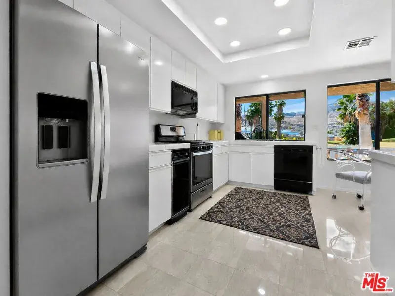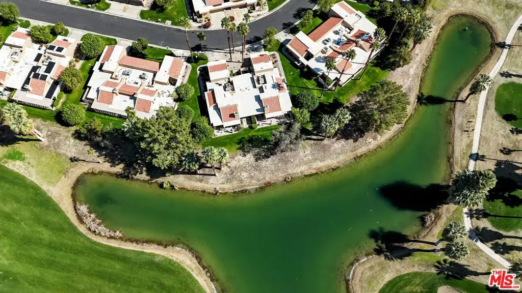 Set lakeside in one of the most desirable perimeter locations within Cathedral Canyon Country Club, this 3-bedroom, 2-bath residence offers 1,826 square feet of light-filled living with uninterrupted mountain, golf course, and water views. Positioned on the outer edge of the community, this is one of only a limited number of homes that does not look into neighboring units or over rooftops, allowing for rare privacy and wide-open sightlines to the surrounding mountains and landscape. The open living and dining areas are enhanced by skylights and expansive glass doors that frame the lush fairways, tranquil lake, and dramatic desert scenery beyond. The refreshed kitchen features crisp white cabinetry, stainless appliances, and a bright breakfast nook with picturesque water and fairway views. The primary suite is a serene retreat with a separated private patio access and a spacious ensuite bath with dual vanities, soaking tub, and separate shower. Two additional bedrooms offer flexible use for guests, office, or den. There is also a large 2-car garage with ample storage space. Recent upgrades include a newer A/C system, skylights, carpeting, and travertine floors that have been professionally stripped and polished to a beautiful high-gloss finish. The bedrooms feature new contemporary plank flooring in warm, natural wood tones. Step outside to an expansive covered patio offering distinct spaces for dining and relaxed lounging, framed by a charming low wall and gate that gently define the space, all overlooking sweeping lakeside and mountain views. Cathedral Canyon Country Club offers multiple pools and spas, golf, tennis, and beautifully maintained grounds, all in a prime location close to shopping, dining, and outdoor recreation. This charming residence, tucked along the lake in a serene setting with pine trees overhead and water birds gliding across the lake, captures the quiet luxury of desert living. Enjoy peaceful morning coffee by the water, sunlit afternoons beneath open skies, and evenings washed in mountain silhouettes. This is a home designed not just to be lived in, but to be experienced. It offers a private retreat where space, light, and landscape come together to create a lasting sense of calm and connection to the natural beauty of the desert.