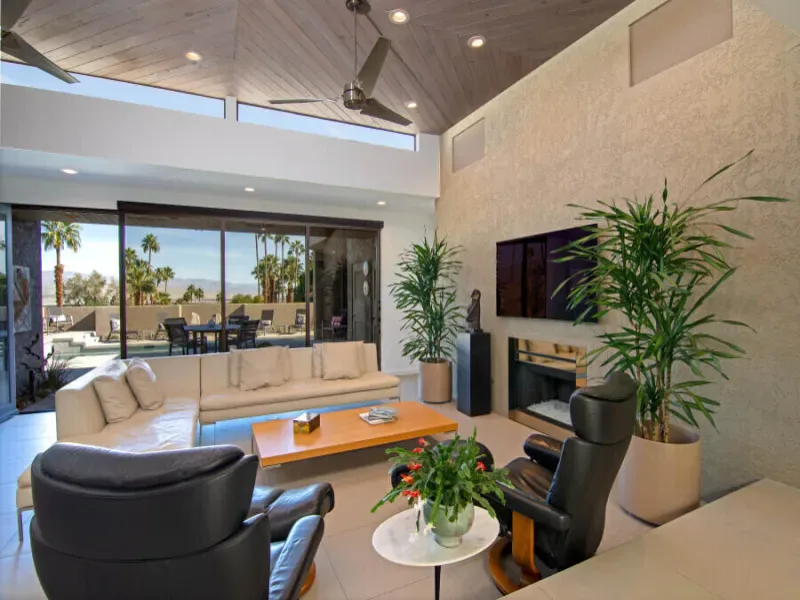 First time on the market 40 years! This modern residence in Chino Canyon’s coveted Little Tuscany enclave is a serene oasis of privacy, showcasing sweeping valley and mountain views. Beautifully maintained and thoughtfully updated, the home features high ceilings, recessed lighting, smartly remodeled bathrooms, and a chef’s kitchen designed for both daily living and effortless entertaining.Sleek porcelain tile floors flow seamlessly to expansive indoor-outdoor living and dining areas. Double doors open to a large covered patio and lushly landscaped west-facing yard, bask in the east-facing pool and spa and enjoy tranquil morning light and dramatic mountain backdrops. A generous Pebble Tec pool, spa, and gas fire pit create an inviting setting for relaxation and entertaining. Pool and spa feature newer equipment with both chlorine and optional saltwater filtration systems.The versatile floor plan offers two ensuite bedrooms, a third bedroom with adjacent bath, and a fourth office or bedroom with a built-in Murphy bed. The primary carpeted retreat is just steps from the pool and spa, enhancing the home’s effortless indoor-outdoor lifestyle.The gourmet kitchen is outfitted with black granite countertops, a new six-burner Wi-Fi-controlled JennAir range, Sub-Zero refrigerator, Miele dishwasher, and a bar with built-in ice maker. A secondary caterer’s kitchen located in the attached two-car garage further elevates the home’s entertainer appeal.Practical luxuries include 64 owned solar panels across two systems with a Tesla backup battery, water softener, two central A/C units, two evaporative coolers, a silicone-protected foam roof, intercom electric secured entry gate, and security cameras.Perfectly designed for relaxed Palm Springs living, this Chino Canyon gem blends modern comfort, timeless appeal, and exceptional views in one of the city’s most desirable neighborhoods.