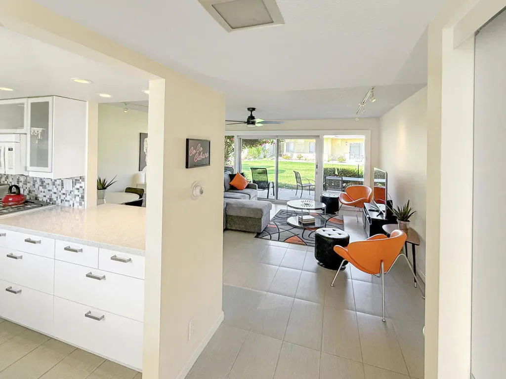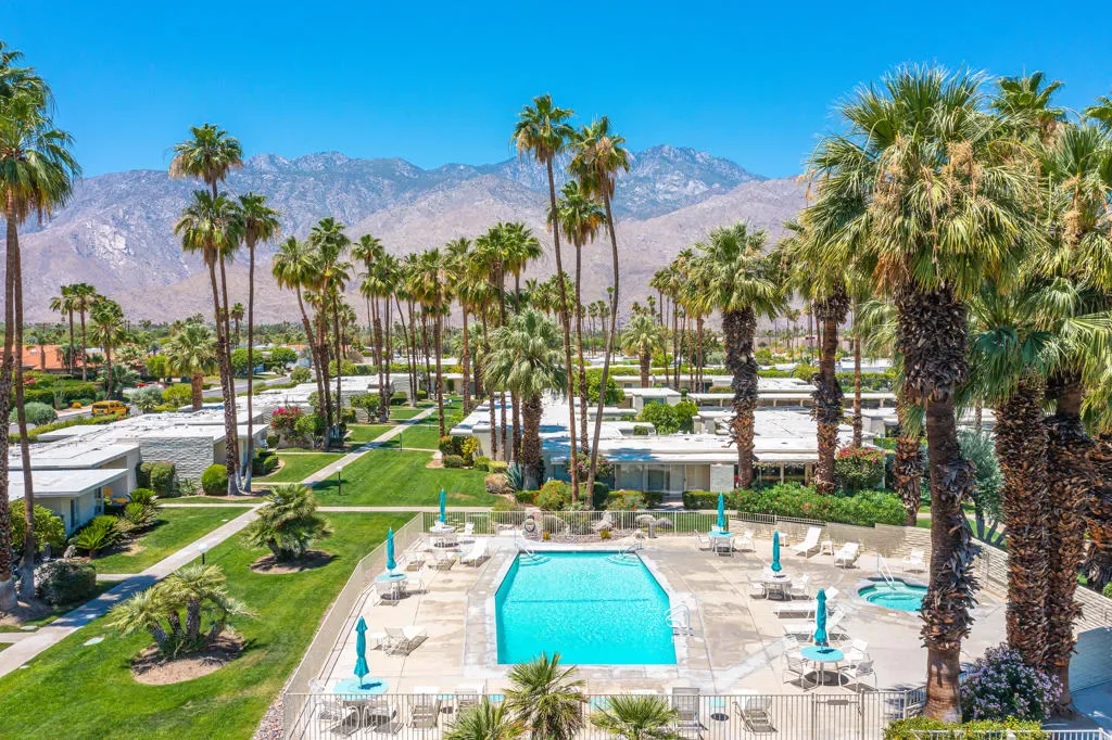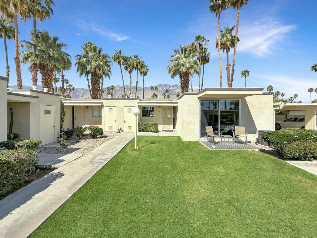 Turnkey and fully furnished, this 2-bedroom, 2-bath condo at Coco Cabana blends thoughtful renovation with standout location. Featured during the 2025 Modernism Week Tour, Unit 16 offers one of the community’s most desirable positions, boasting expansive mountain views from the back patio and living areas. Commercial-grade windows and sliders flood the space with natural light while offering exceptional sound and energy performance.The layout flows easily for daily living or entertaining, with defined living, dining, and kitchen spaces. Quartz countertops, custom cabinetry, and porcelain tile flooring create a cohesive, low-maintenance design throughout. Both bedrooms are generously sized, and the updated bathrooms feature clean, modern finishes.Designed in 1955 by Charles W. Doty and later converted into 31 residences, Coco Cabana is a boutique mid-century community on ~5 acres with a saltwater pool and spa, tennis and pickleball courts, and lush grounds with citrus, olive trees, and vibrant flowers. With fee-simple land, a dedicated carport, and a prime South Palm Springs location, Unit 16 offers exceptional architecture, lifestyle, and value.