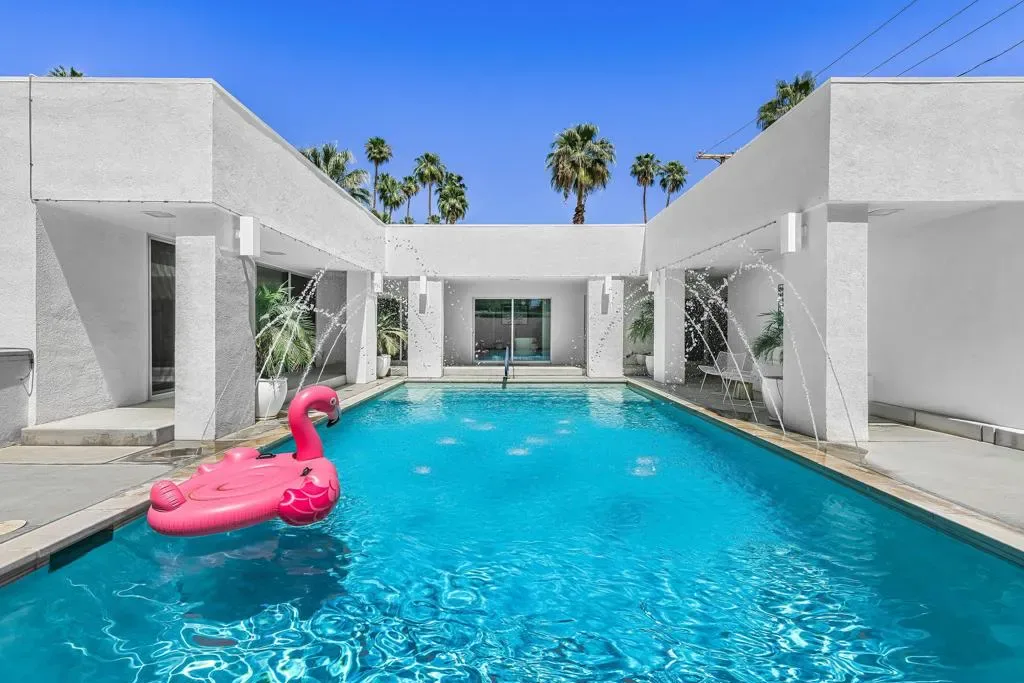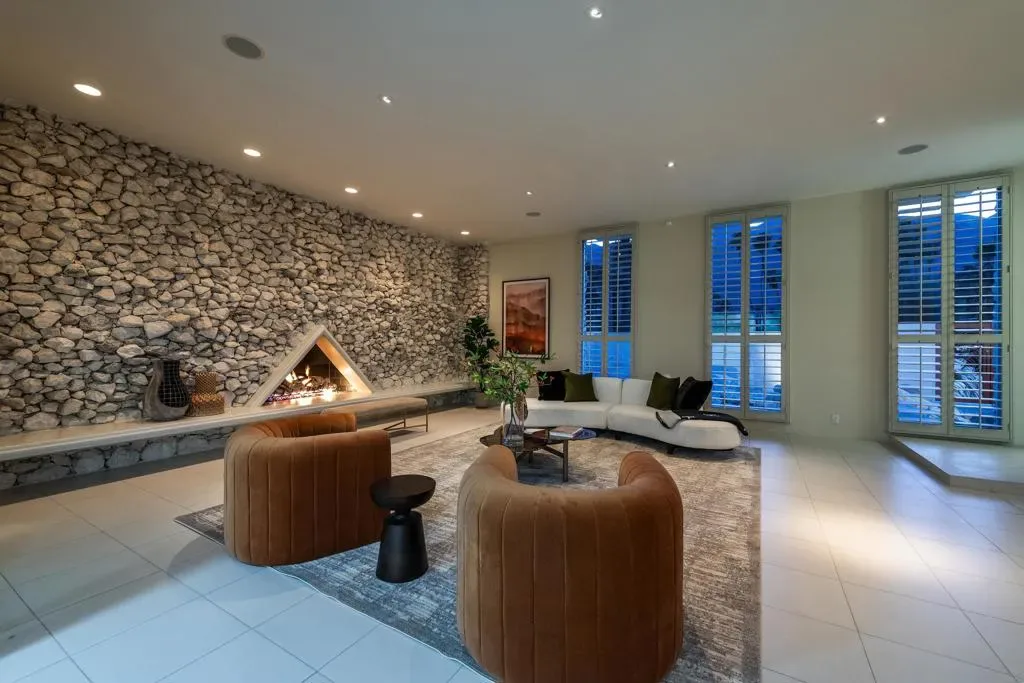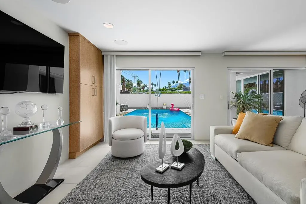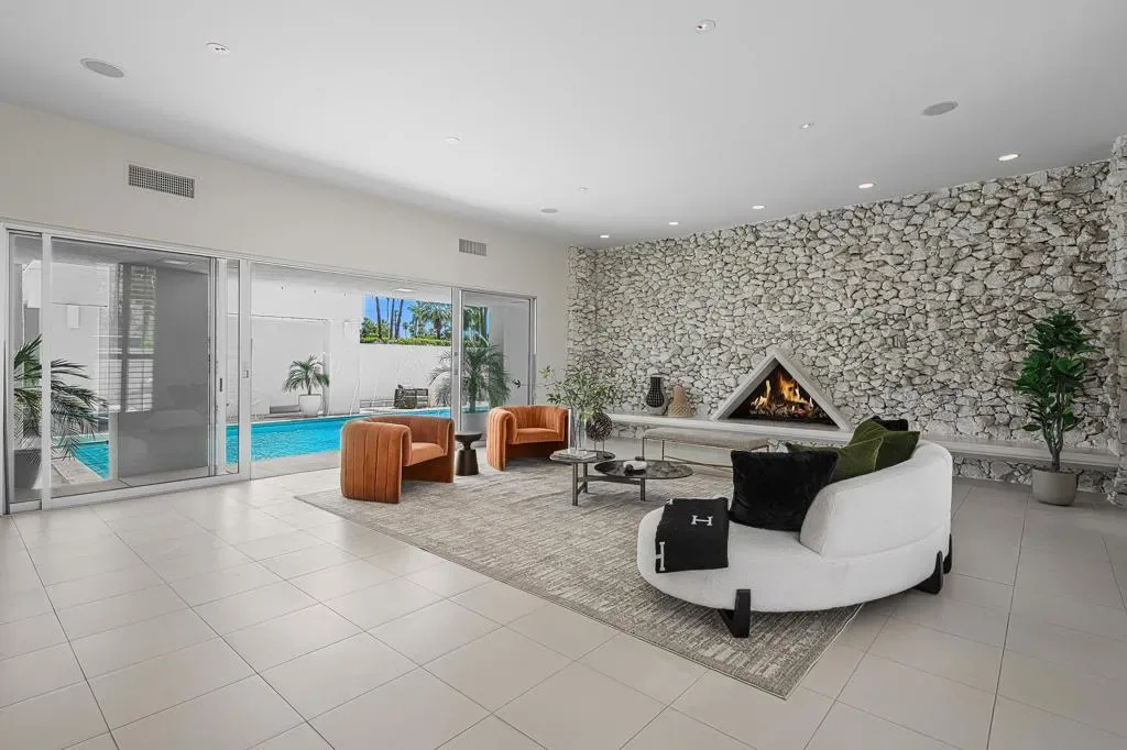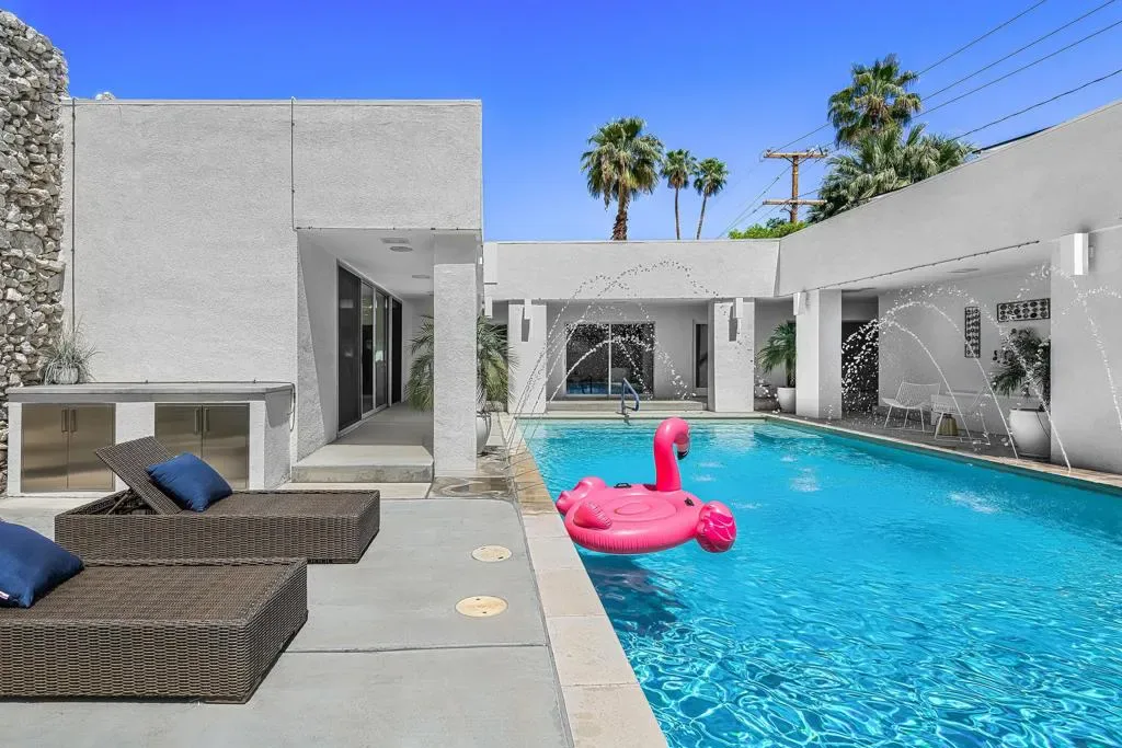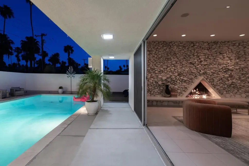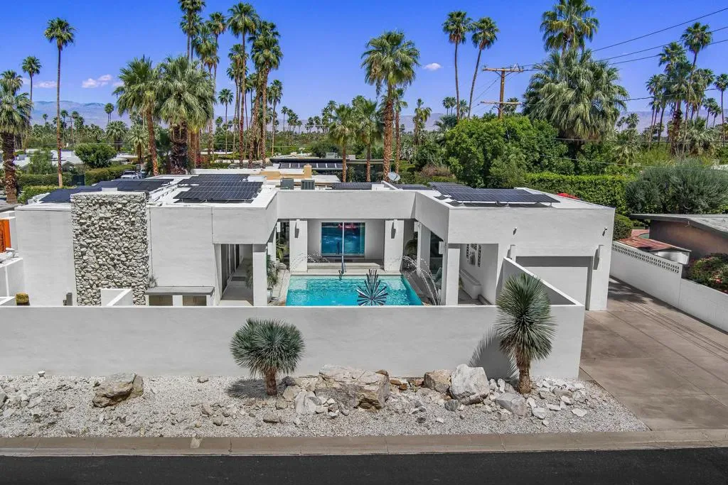 An exceptional presentation of contemporary design in Deepwell Estates, one of Palm Springs’ most coveted neighborhoods. This remarkable residence is defined by soaring ceilings, an open-concept layout, and dramatic floor-to-ceiling glass that frames a stunning south-facing pool with breathtaking mountain views.Formal living and dining spaces strike the perfect balance between sophistication and comfort, featuring a striking gas fireplace, abundant natural light, and seamless indoor-outdoor flow. An adjacent bar creates an elegant transition into the spacious modern kitchen, fully equipped with a complete suite of stainless steel appliances and an expansive island ideal for both entertaining and everyday living.The primary suite serves as a private sanctuary, offering direct outdoor access and a spa-inspired bath designed for relaxation. Additional guest suites provide comfort and privacy for visitors, while a versatile bonus room- perfect as an office, media lounge, or flex space-opens directly to the pool and surrounding grounds.Every detail of this extraordinary home reflects elevated design, thoughtful craftsmanship, and effortless elegance. Recent upgrades enhance both comfort and peace of mind, including leased solar, new roof, new pool heater, and a new tankless water heater.This is a rare opportunity to own a truly incredible property in one of Palm Springs’ most desirable enclaves.