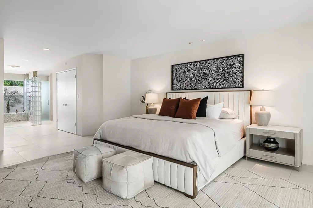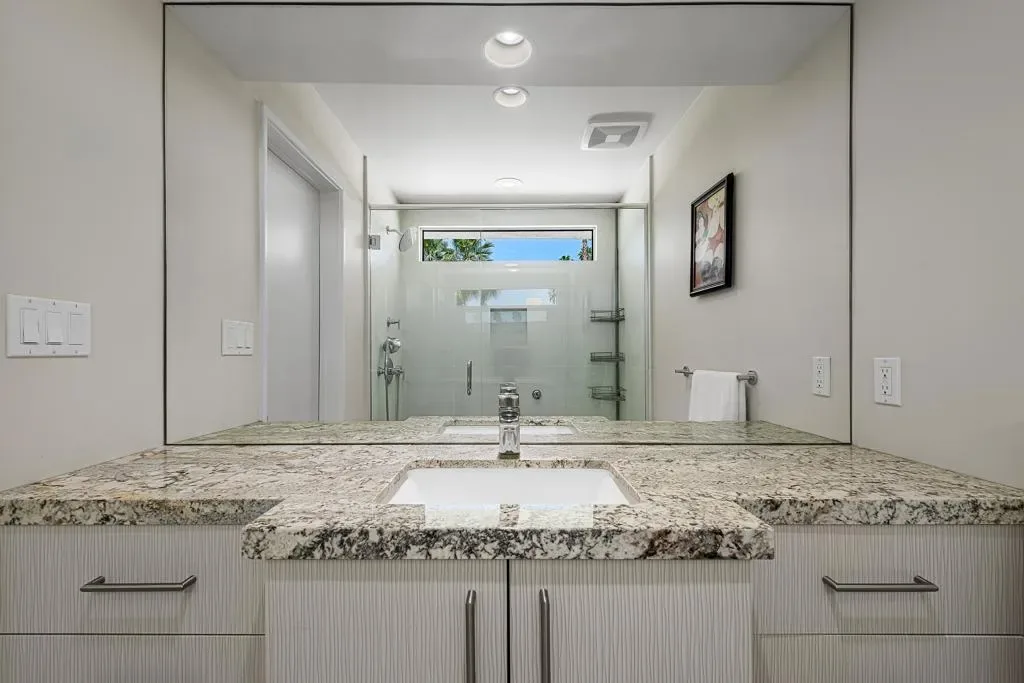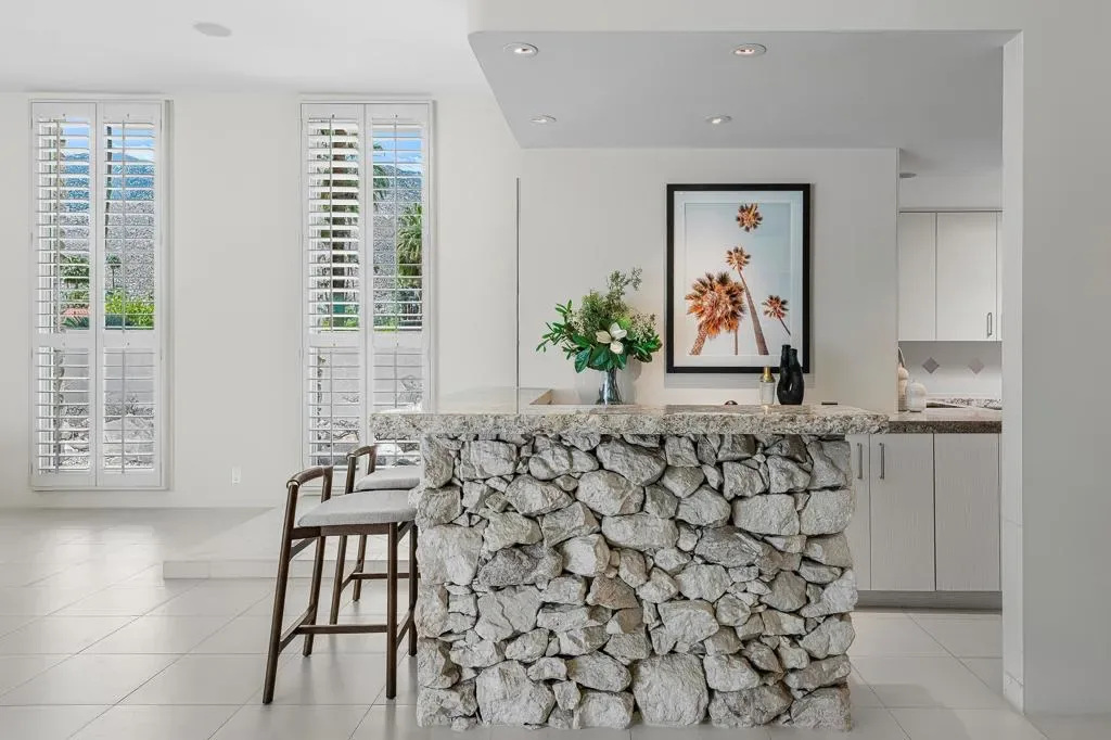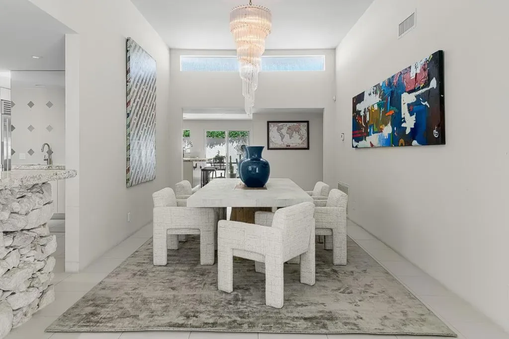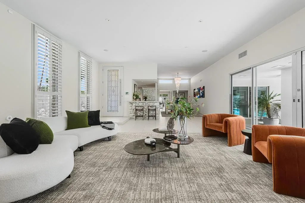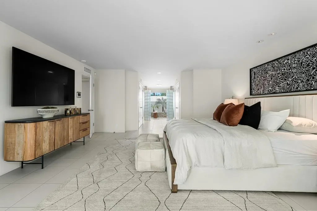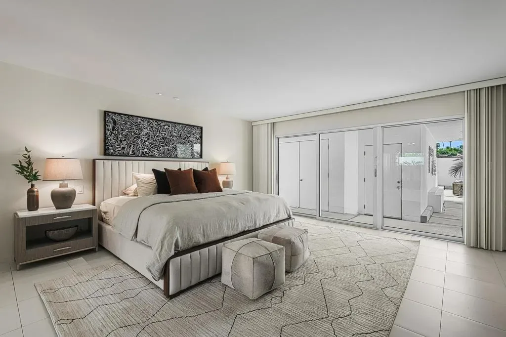 An exceptional presentation of contemporary design in Deepwell Estates, one of Palm Springs’ most coveted neighborhoods. This remarkable residence is defined by soaring ceilings, an open-concept layout, and dramatic floor-to-ceiling glass that frames a stunning south-facing pool with breathtaking mountain views.Formal living and dining spaces strike the perfect balance between sophistication and comfort, featuring a striking gas fireplace, abundant natural light, and seamless indoor-outdoor flow. An adjacent bar creates an elegant transition into the spacious modern kitchen, fully equipped with a complete suite of stainless steel appliances and an expansive island ideal for both entertaining and everyday living.The primary suite serves as a private sanctuary, offering direct outdoor access and a spa-inspired bath designed for relaxation. Additional guest suites provide comfort and privacy for visitors, while a versatile bonus room- perfect as an office, media lounge, or flex space-opens directly to the pool and surrounding grounds.Every detail of this extraordinary home reflects elevated design, thoughtful craftsmanship, and effortless elegance. Recent upgrades enhance both comfort and peace of mind, including leased solar, new roof, new pool heater, and a new tankless water heater.This is a rare opportunity to own a truly incredible property in one of Palm Springs’ most desirable enclaves.