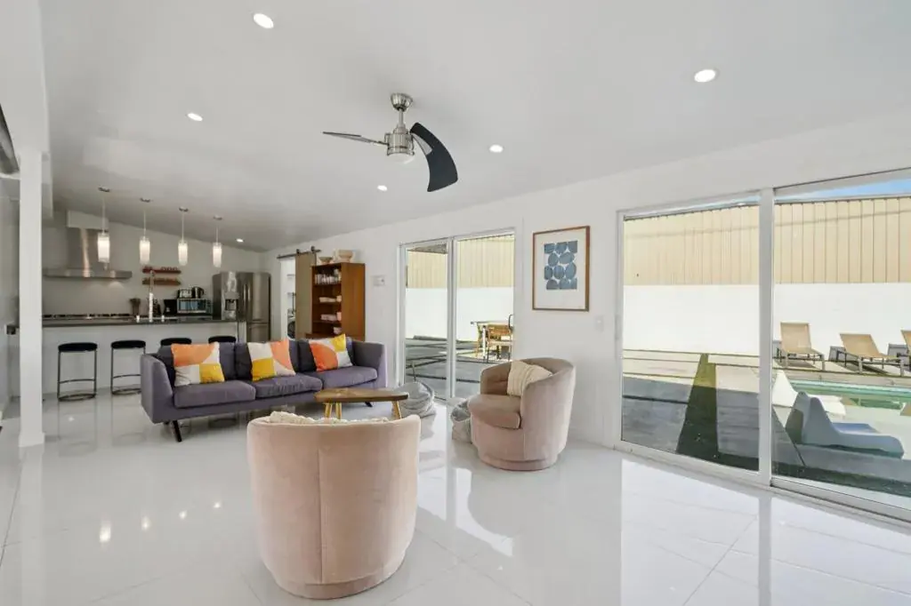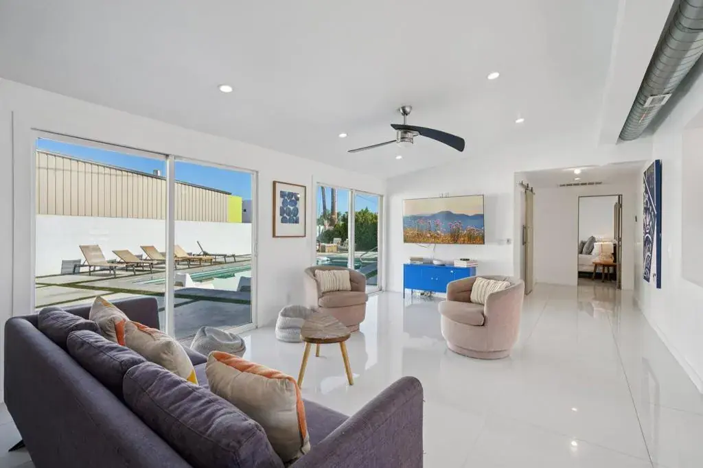 Fully remodeled and TURN-KEY, this vibrant mid-century home is move-in ready and waiting for you to start living the Palm Springs dream! Tucked away at the end of a quiet cul-de-sac and just minutes from the excitement of Downtown Palm Springs, this ultra-chic, fully updated 3 bedroom, 2 bath, 1,750 SF home is the ultimate desert retreat–and an incredible SHORT TERM RENTAL opportunity! Set on a massive west-facing lot with stunning San Jacinto Mountain views, this property is designed to impress inside and out. The backyard is a true oasis, complete with a sparkling heated saltwater pool and spa, built-in BBQ, ample poolside seating, and a private fire pit–perfect for unforgettable gatherings under the desert sky.Step inside to sleek, modern design blended with rich textures and nods to the home’s original mid-century roots, now refreshed with all-new amenities for today’s lifestyle. The chef’s kitchen is a showstopper, featuring high-end stainless steel appliances, a spacious eat-at island/bar, and an open flow into the great room–ideal for entertaining. Each bedroom is stylishly designed and filled with natural light, creating warm and inviting spaces throughout the home. The expansive primary suite is a true retreat, featuring direct access to the pool, a sleek wall-mounted fireplace for a cozy ambiance, and a show-stopping en-suite bath. The bathroom is finished with modern, high-end details, including a seamless walk-in shower with floor-to-ceiling tile, penny round tile floor, a wall-mounted toilet, and polished chrome fixtures–delivering both luxury and sophistication. With peak season rental rates around $450 per night, this property isn’t just a home, it’s a lucrative investment opportunity and a dream vacation destination all in one. Whether you’re looking for a high-performing short-term rental, a desert getaway, or a stylish year-round residence, this Palm Springs stunner checks every box!