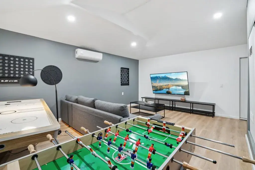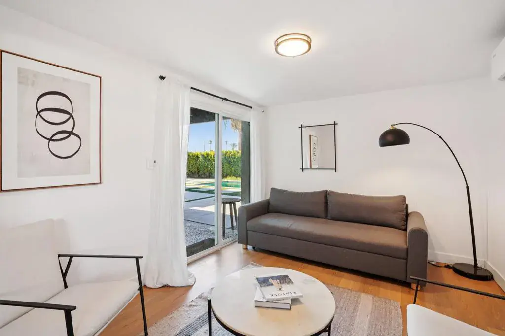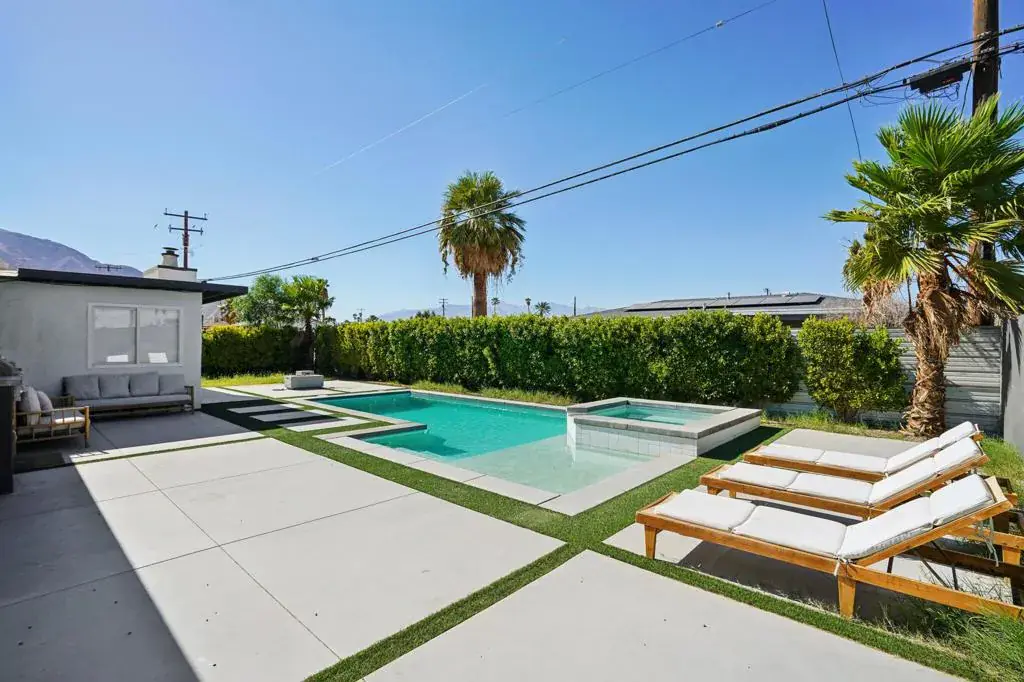 TURN-KEY and fully remodeled, this vibrant mid-century masterpiece is move-in ready and packed with style, views, and endless possibilities! The moment you step inside this 4 bedroom, 3 bathroom, nearly 1,900 SF home, modern design and sleek finishes welcome you at every corner. The open living room flows effortlessly into a chef’s dream kitchen, complete with Italian-imported cabinets, black stainless steel appliances, quartz countertops, counter to ceiling white penny round tile backsplash, floating shelves, and a floor-to-ceiling pantry- perfect for cooking, entertaining, and showing off in style! Step outside and prepare to be amazed–this backyard is the ultimate desert playground! A covered patio with a 16-foot bar, built-in grill, and mini fridge makes entertaining a breeze, while the brand-new landscaping and hardscape frames a sparkling pool with raised spa and modern tanning shelf. And just wait until you see the jaw-dropping San Jacinto Mountain views! There’s even a separate seating area with a gas fire pit, making this the ultimate hangout spot day or night. Back inside, the primary suite is cozy with a spacious seating area, show stopping fireplace and tons of natural light making this the perfect private retreat. The spa-inspired bathroom featuring a dual vanity, fully titled walk-in shower, and an oversized walk-in closet (a rare find in mid-century homes!). Plus, with direct access to the backyard, your morning coffee or evening unwind has never looked better. The 3 other guest bedrooms are just as nice and inviting for all of your family and friends. The game room is truly an added bonus to this home with 2 arcade consoles, foosball table, air hockey, and space to watch all of the big sporting events! And here’s the kicker–this property isn’t just gorgeous, it’s a money-maker too. With peak season rental rates around $450 per night, it’s the perfect high-performing short-term rental, vacation getaway, or forever home. This Palm Springs stunner has it ALL–style, views, and income potential. Don’t wait… your dream lifestyle starts here!