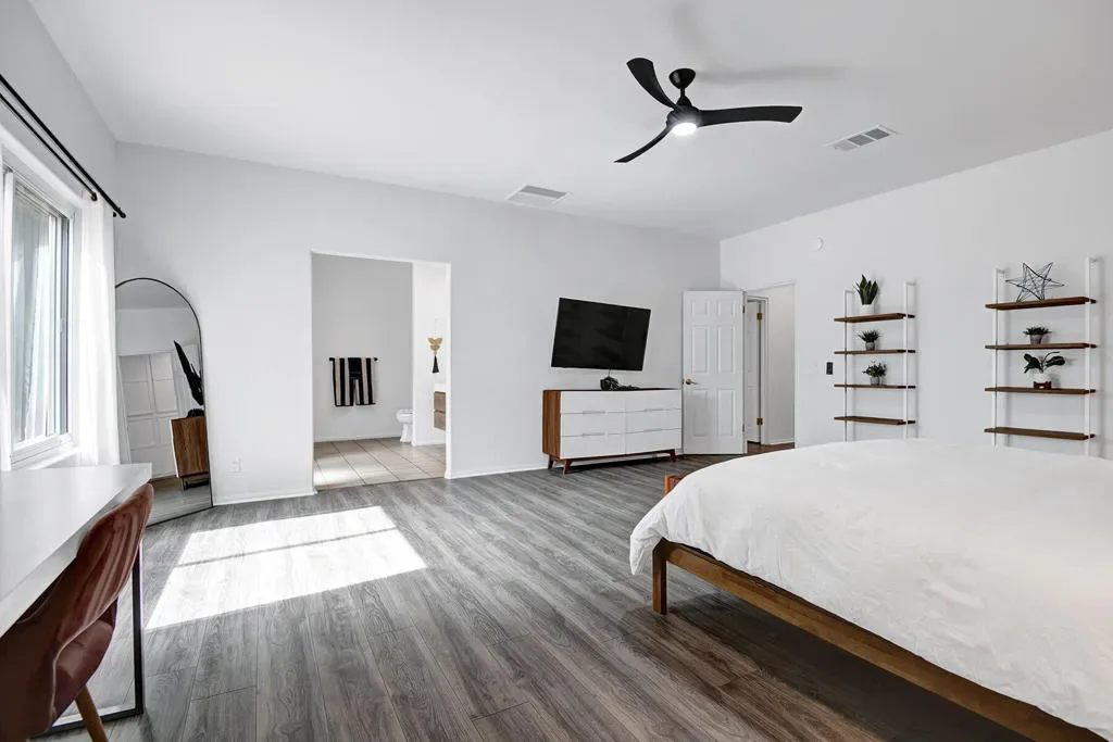 Welcome to this stunning 4-bedroom Santa Fe Estate! This spacious abode features a chef’s kitchen with top-of-the-line appliances, making it a culinary enthusiast’s dream. The open floor plan seamlessly connects the kitchen, dining area, and large living room, providing a perfect space for entertaining and creating lasting memories.All bedrooms are generously sized, ensuring everyone enjoys ample comfort and privacy. Step outside to discover a huge backyard, complete with a covered patio, perfect for relaxing and enjoying the beautiful surroundings.For car enthusiasts, this property boasts an enormous 6-car garage, providing plenty of space for your prized vehicles and any other hobbies or storage needs.