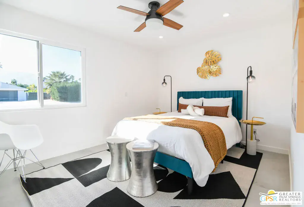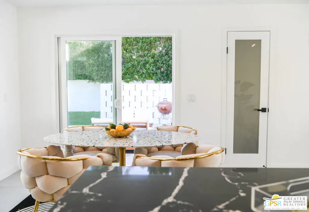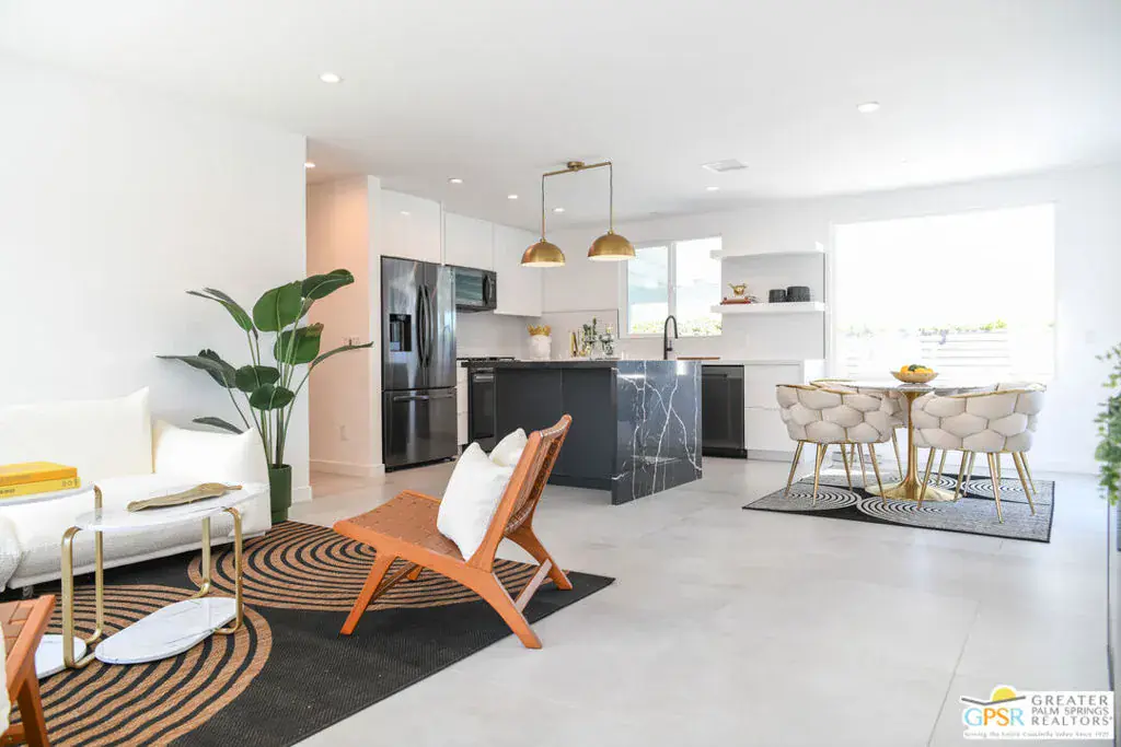 Reimagined and redesigned for the ultimate Palm Springs lifestyle, this beautifully remodeled home delivers style, comfort, and effortless indoor-outdoor living. From the moment you enter through the front courtyard, you’re greeted with sweeping San Gorgonio mountain views, an ideal setting for morning coffee or sunset cocktails. Inside, the open-concept great room showcases an expanded kitchen that seamlessly flows into the living and dining areas, creating a perfect environment for entertaining or relaxing. The kitchen features a spacious island, modern soft-close cabinetry, quartz countertops, stainless appliances, upgraded fixtures, and sink outfitted with all the modern conveniences. The backyard is a true resort oasis. A sparkling pool with tanning shelf, submerged umbrella stand, and a cascading spa invites all-day lounging. Enjoy evenings around the in-ground fire pit surrounded by a lush lawn, desert landscaping, and privacy-enhancing block walls with a sleek staggered black corrugated metal fence. The oversized lot offers rare flexibility; RV parking with gate access, and ample room to add a custom cabana, outdoor kitchen pavilion, or even an ADU (buyer to verify), making this a property with both luxury and potential. With dramatic west-facing mountain views in front and serene pool/spa views in back, this home captures the very essence of Palm Springs living. Full list of upgrades available upon request. Furnishings may be purchased outside of escrow.