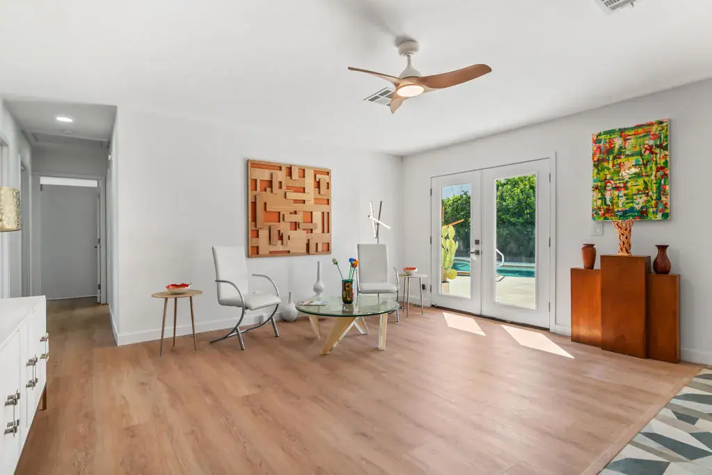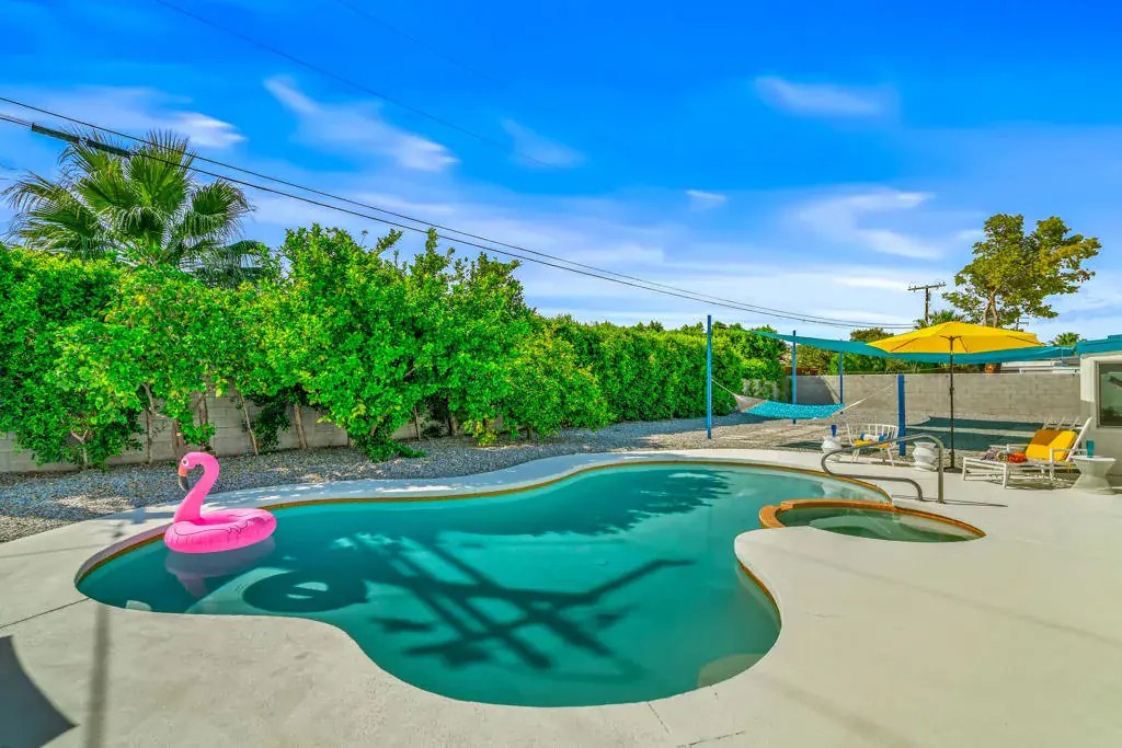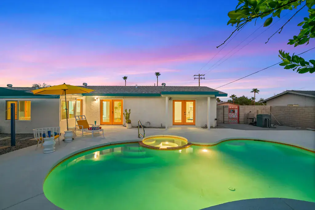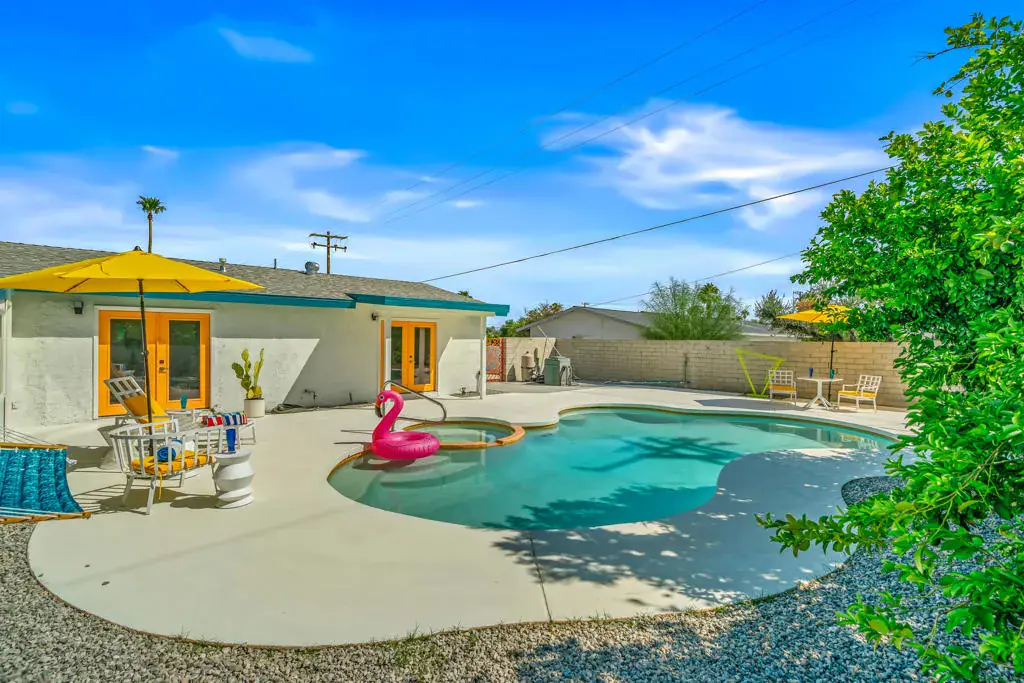 Beautifully updated 3-bedroom, 2-bath home on an oversized lot in desirable Desert Park Estates. Features include a spacious primary suite with double doors, new open kitchen with bamboo cabinetry and tile flooring, and a dining/bonus room with mini-split for added comfort.Enjoy a remodeled pool, covered built-in BBQ, mature ficus trees for privacy, block wall enclosure, and low-maintenance desert landscaping. Laminate flooring throughout and tastefully updated bathrooms complete this move-in-ready lease opportunity.