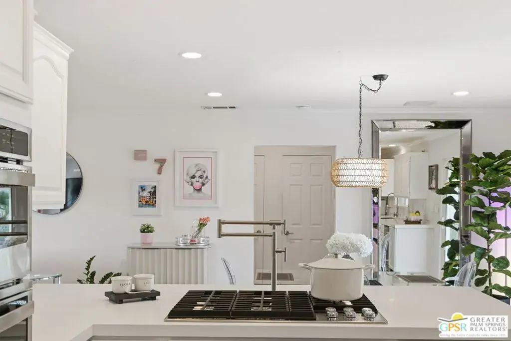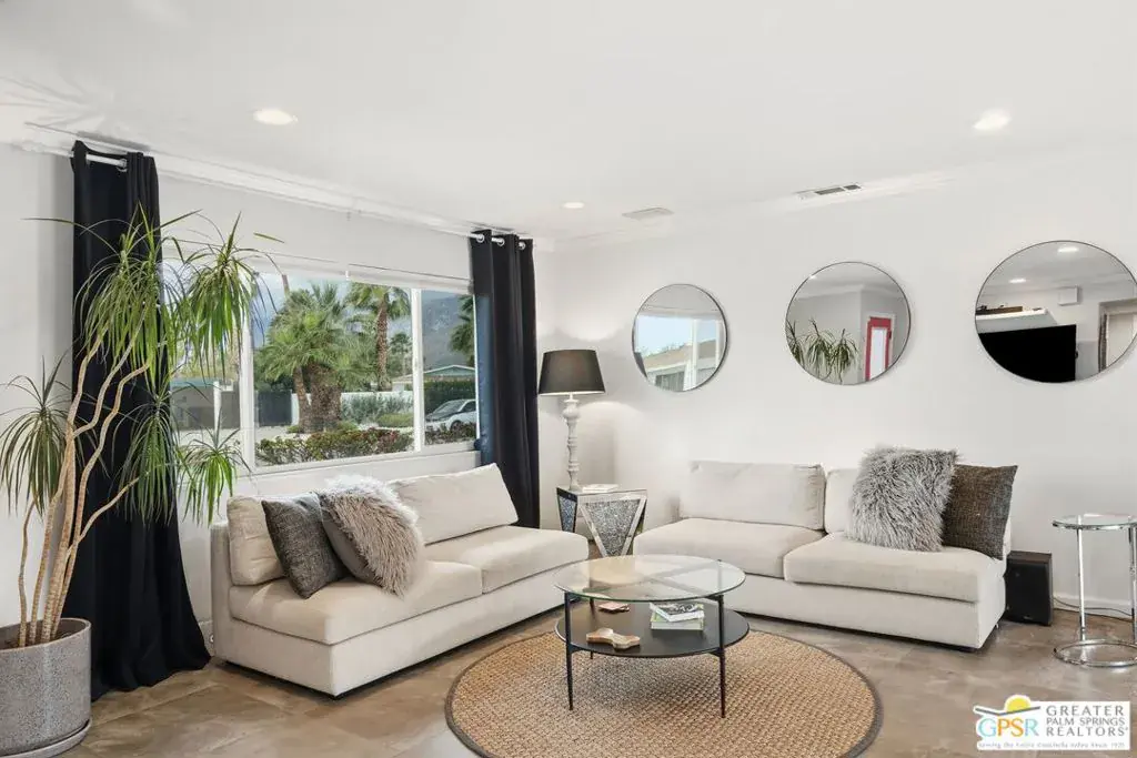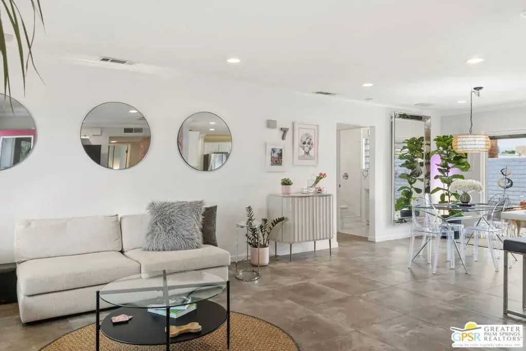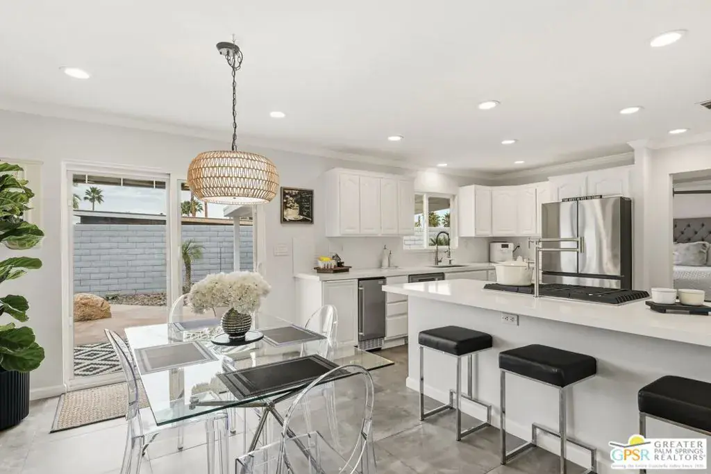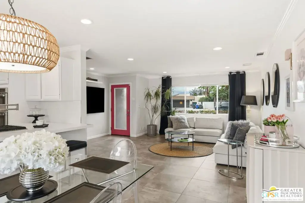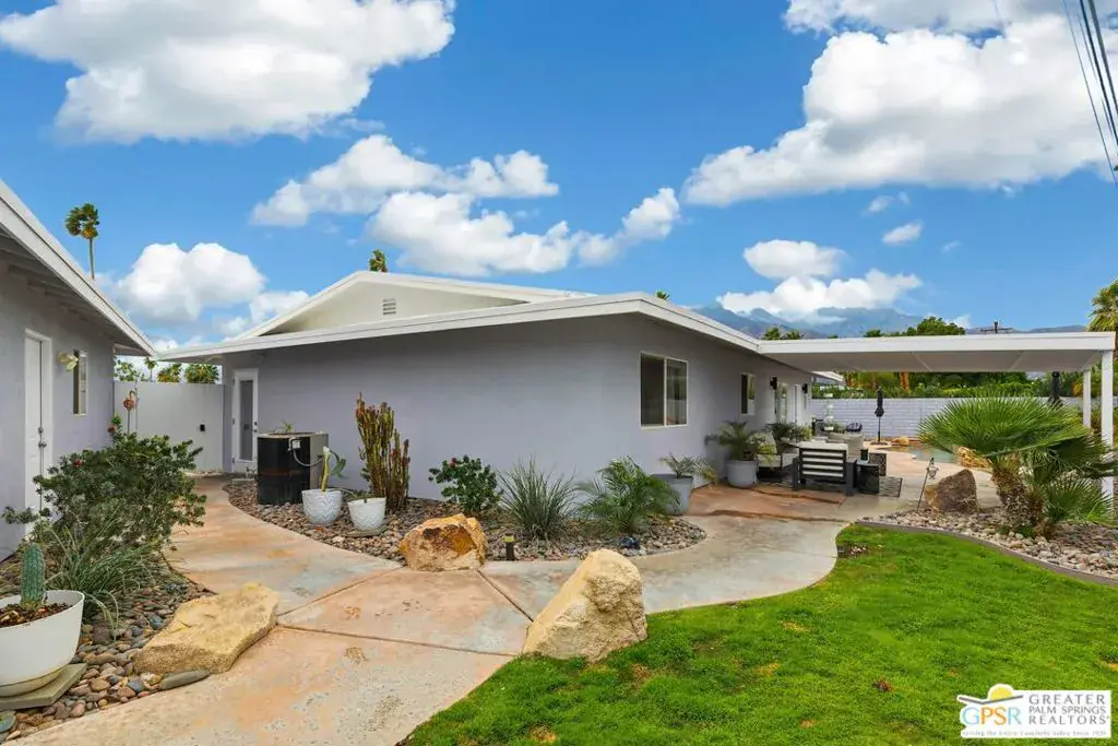 Live the Palm Springs lifestyle in this beautifully updated mid-century ranch home located in the heart of iconic El Rancho Vista Estates. This 3-bedroom, 4-bathroom home with detached casita and owned solar on land you own blends classic ranch-style architecture, modern comfort, and a fun, easy indoor-outdoor vibe all framed by wonderful mountain views. Inside, the light-filled living spaces showcase the relaxed appeal of mid-century ranch design, with clean lines, comfortable proportions, and an effortless flow that’s perfect for both laid-back living and lively gatherings. The spacious living and dining areas connect seamlessly to the backyard, where the mountain backdrop adds to the home’s unmistakable Palm Springs charm. The renovated kitchen is both stylish and functional, featuring new quartz countertops, a new backsplash, and new stainless steel appliances including a pot filler and built-in icemaker, along with ample cabinetry and generous prep space for cooking, entertaining, or casual everyday living. The home offers two primary suites, providing excellent flexibility for hosting guests or multi-generational living. The larger primary suite serves as a true retreat with abundant space, great natural light, a private en-suite bathroom, and a massive walk-in closet. An third guest bedroom adds further versatility for visitors, workspace, or hobbies, while the detached casita is ideal for guests, a home office, or creative studio. Outdoors, the private backyard is designed for enjoying the desert lifestyle, featuring a brand-new pergola, a large pool and spa with waterfall, and plenty of room for lounging, dining, entertaining, or letting pets roam and play. Surrounded by wonderful mountain views, it’s a space made for both quiet mornings and festive Palm Springs evenings. With owned solar, new exterior paint, a water filtration system, numerous upgrades throughout, classic mid-century ranch character, and a location in one of Palm Springs’ most recognizable and sought-after neighborhoods, this home delivers style, personality, and the true spirit of desert living.