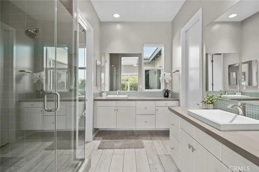 The primary suite offers a serene escape with a spa-inspired bathroom, dual vanities, and a walk-in shower. A versatile office/den provides the perfect space for working from home, a guest room, or creative studio.