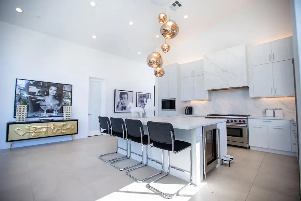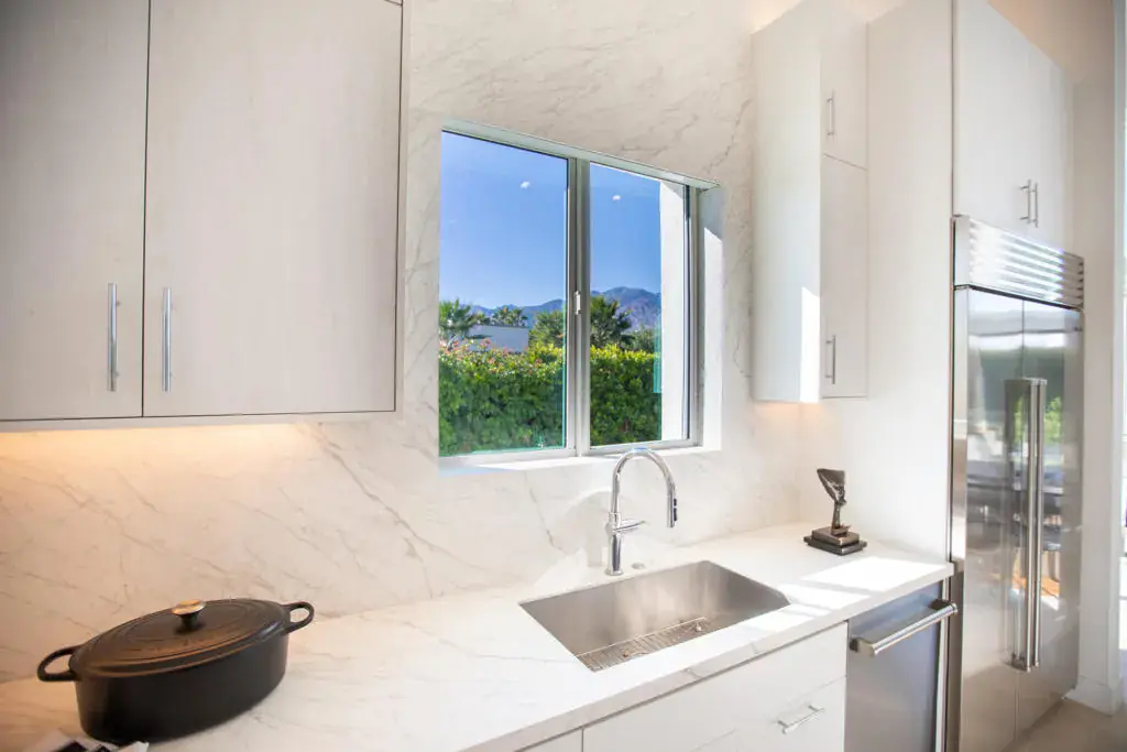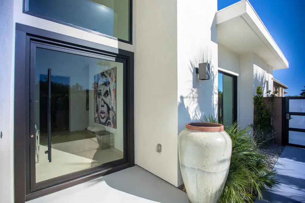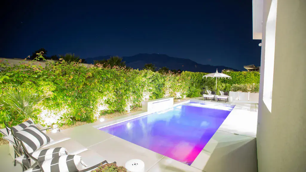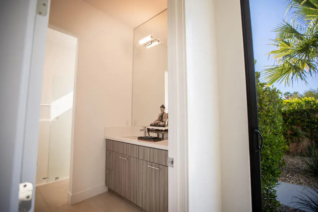 Behind the guarded gates in Escena Golf Club, @ Villa Esplanade, Desire meets Design. Reimagined gourmet kitchen, custom double cabinetry, porcelain slab counters, Sub Zero refrigeration & wine cooler plus Wolf appliances, plus walk in pantry & a molten gold lava chandelier by T.Dixon of London hovers over like a signature piece of art. Its an architectural modern masterpiece! With a rare motor court, side loaded garage & EV readiness opens to a entrance that promises something unforgettable. Private courtyard w/Ring security, New glass pivot door, welcomes you. Freshly painted, upgraded custom landscaping, drip irrigation, dramatic lighting & solar panels, this home is effortlessly polished inside & out. San Jacinto Mtn Views stretch endlessly across the sky! Salt water pool & spa glow w/ color changing LED illumination/app controlled & fire features flicker nearby creating atmosphere for bare feet, low voices & another glass of wine. New porcelain fireplace surround, motorized shades, designer fans, custom paint, mirrored niches, and sound system inside & out sets the rhythm from morning to midnight. Primary suite is a private escape, w/spa like bath, walk in closet, soft new lighting & Samsung Frame TV. An adjacent laundry room w/new cabinetry, sink & Samsung Washer & Dryer adds quiet convenience. Secondary & versatile 3rd bed/office feature new tiling flooring & new sleek glass slider opening to outdoors. Outside, built-in BBQ, fire pit & fire features invite evenings that end late. Tankless water heater, home filtration system, championship Escena Golf Course, chic clubhouse, delicious dining & bar overlooking rolling greens & dramatic mountain views, this is the lifestyle! We didn’t forget about your furry friend either the community has a large dog park for all your pups needs. First class isn’t a preference here- it’s the standard.