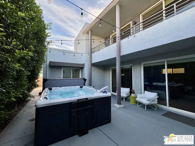 Welcome to Escena! A Nicklaus designed 18 hole golf course community. The Clubhouse includes a golf shop, lounge and Grill which has a dog friendly patio. The CV link winds around the community for jogging ,biking and hiking. The home is located close to the clubhouse. Generous in size, this beautiful 2965 sq ft home has 2 bedrooms and 3 baths. High ceilings, an open floorplan and glass doors open to the courtyard from the dining room ,kitchen, living room and main floor primary bedroom. There is plenty of natural light throughout the home. The spa(fits 10 people)is located in the private courtyard, options for spool water are hot or cold, water jets, different settings for lights and fountain features. The courtyard has a beautiful greenery wall and plenty of room to entertain. The Open & Airy home has a nice flow throughout. The Kitchen is well appointed with quartz countertops. It is open to the Living room which makes entertaining easy. The Bar is behind the kitchen. There is a vibrant powder room that is easily accessible for guests. The main floor primary bedroom has an en suite that includes a shower, WC, bathtub and two walk-in closets. The second level includes a bedroom, bathroom, family room, laundry room and storage room. In the family room there is an alcove that would be perfect for an office. There are 2 sliding glass door that open up to the balcony. Beautiful Mountain views from the balcony. In the back of the house there is a small backyard that is a blank slate. Ready for your personal touch.