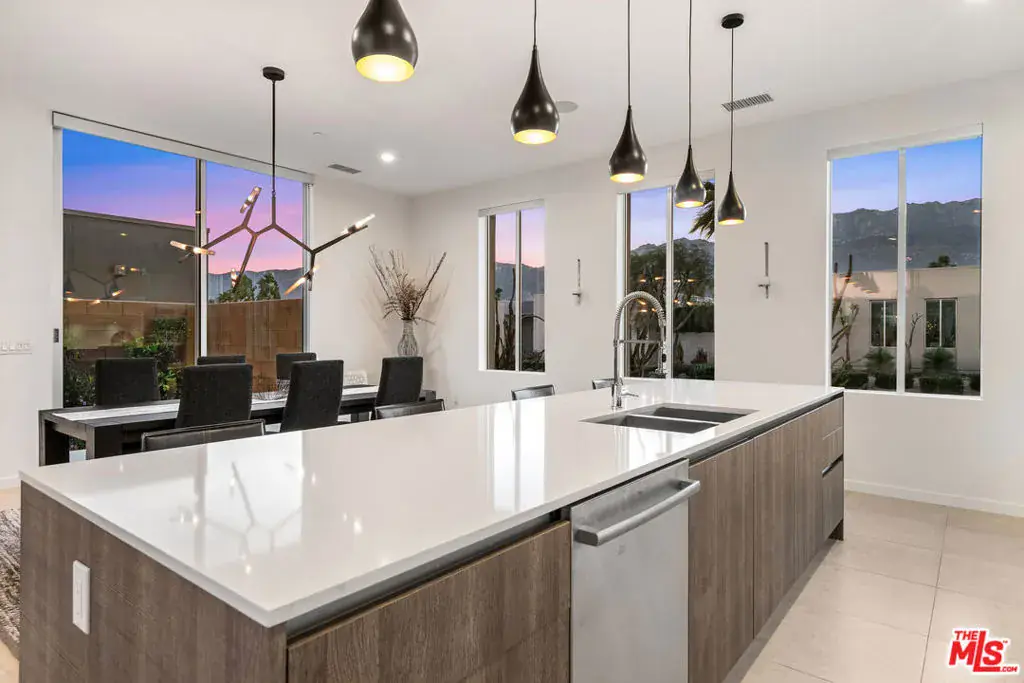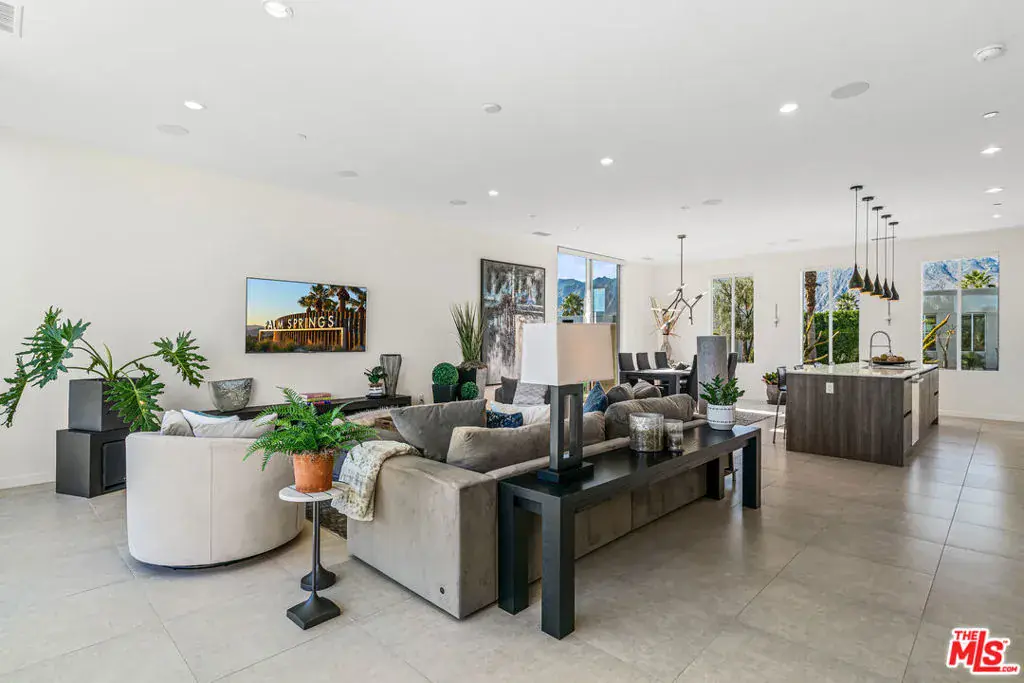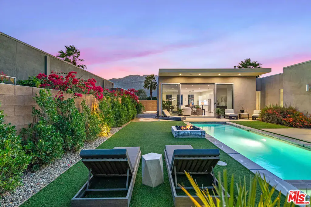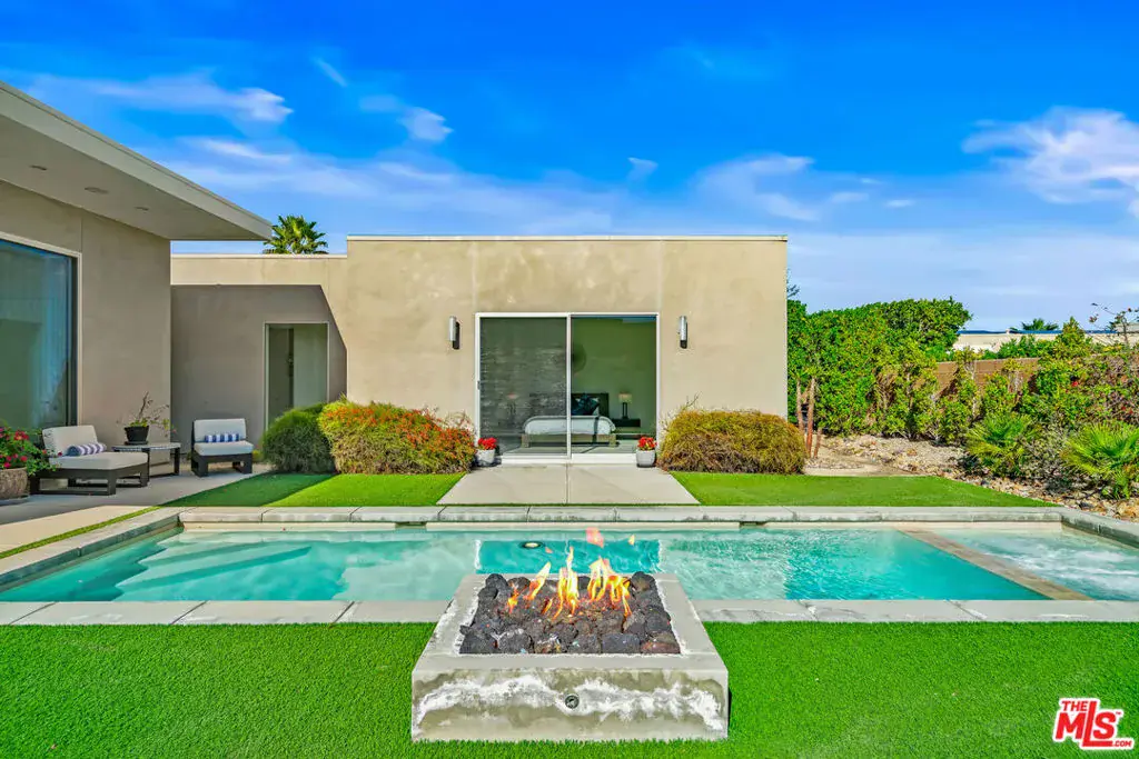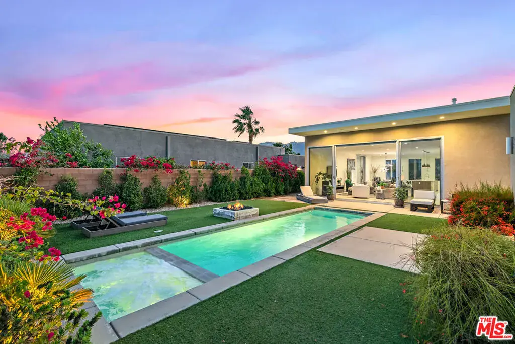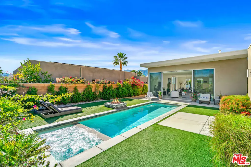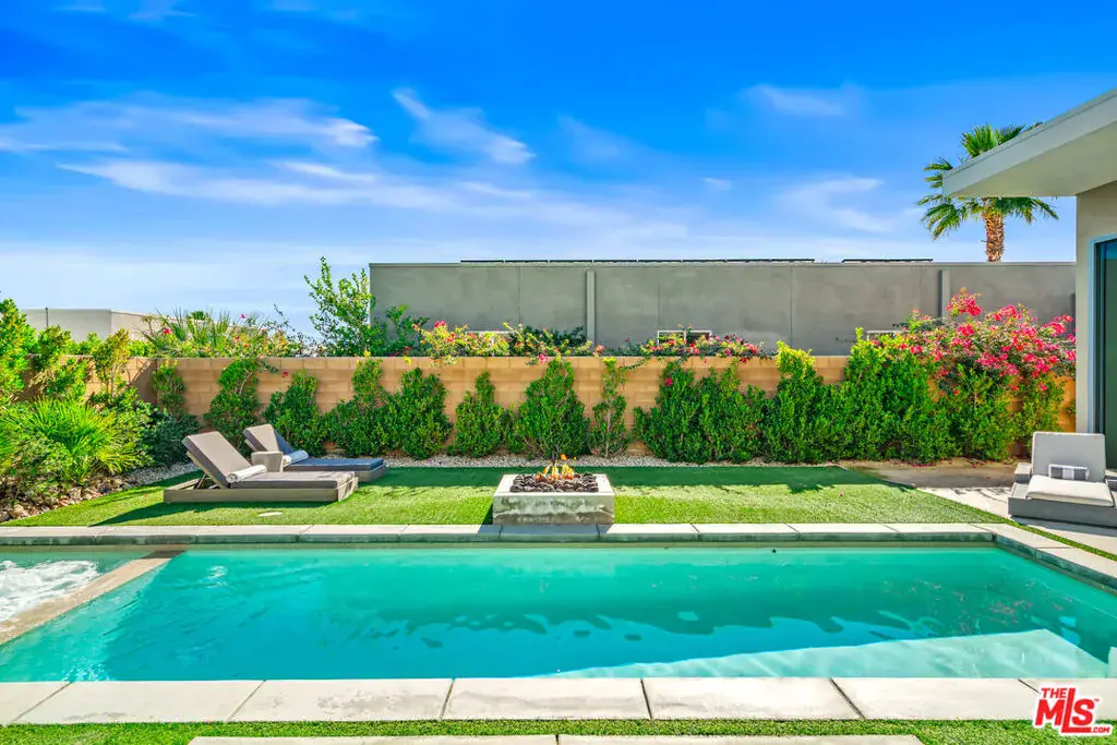 Experience elevated desert living at Escena in this luxury residence designed by renowned architect Anthony Poon and built by Alta Verde. The sought-after Garden floor plan is designed for seamless indoor/outdoor living, featuring a wall of floor-to-ceiling Fleetwood sliding doors that open from the living room to a private entertainer’s backyard with pool, spa, fire-pit and breathtaking San Jacinto Mountain views. The expansive great room offers 10-foot ceilings, elegant tile flooring, and abundant natural light. The gourmet kitchen is a showpiece with an oversized island, designer pendant lighting, custom countertops and backsplash, Bosch appliances, and sleek Italian cabinetry perfect for both entertaining and everyday living. The sun-filled primary suite is a peaceful retreat with a spacious walk-in closet and spa-like bathroom featuring a floating dual-sink vanity, soaking tub, and walk-in shower. Two well-appointed guest bedrooms share a generous Jack-and-Jill bathroom, ideal for guests or family. Additional highlights include owned solar, Control4 Home system, dual-zone HVAC, home security system, and a two-car garage equipped with an upgraded electric vehicle charger. Escena is a beautifully landscaped guard-gated community offering access to a clubhouse, championship golf course, dog parks, and low HOA dues. Select furnishings available. (See photos, floor-plan & 3D Matterport)
