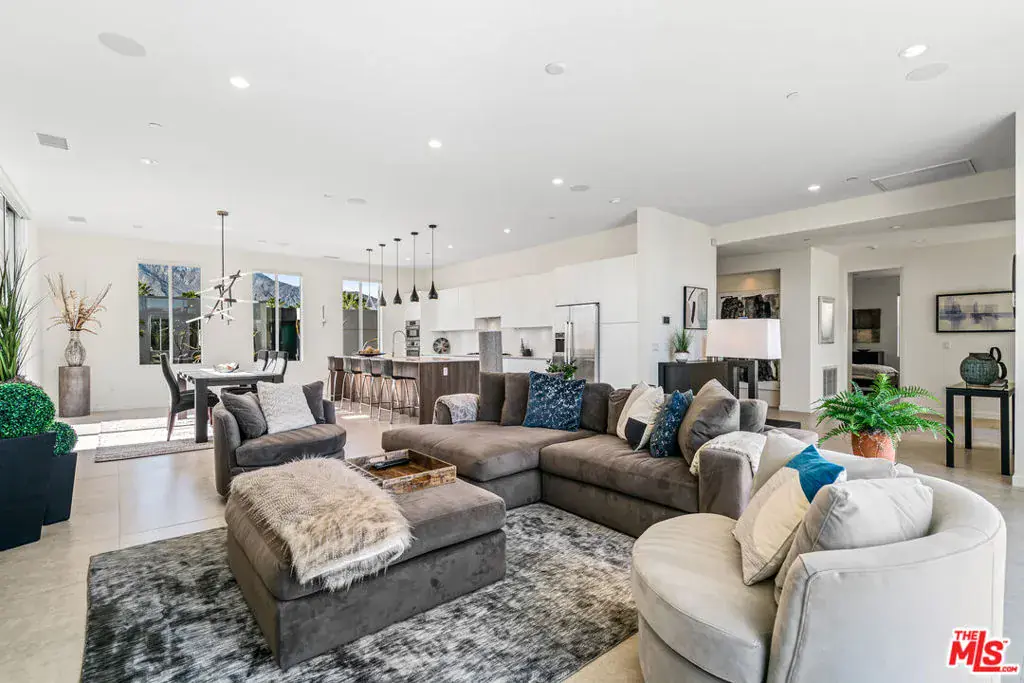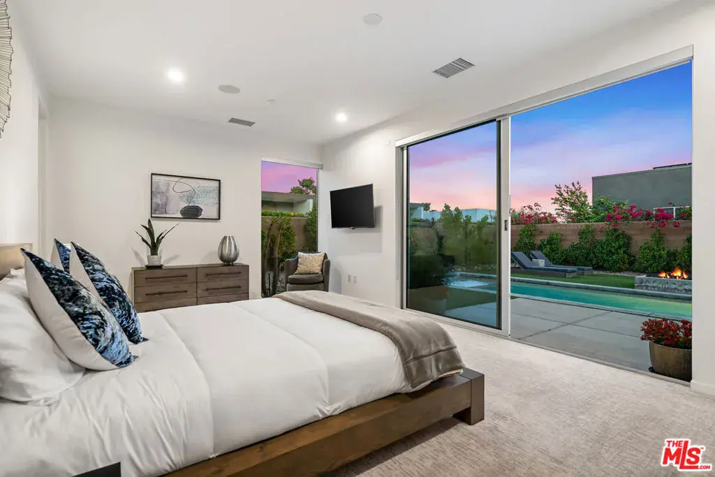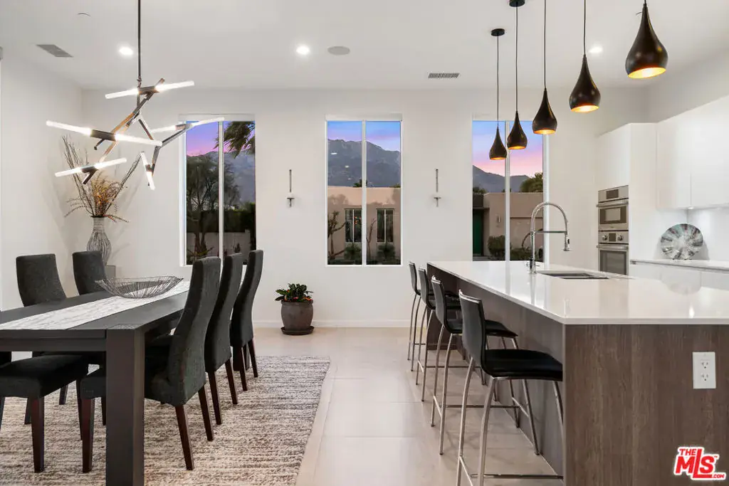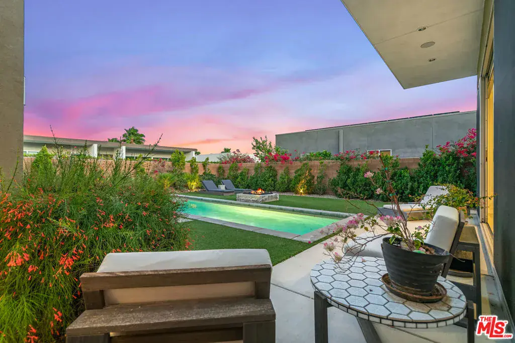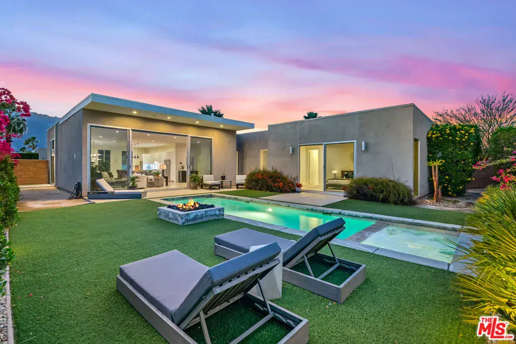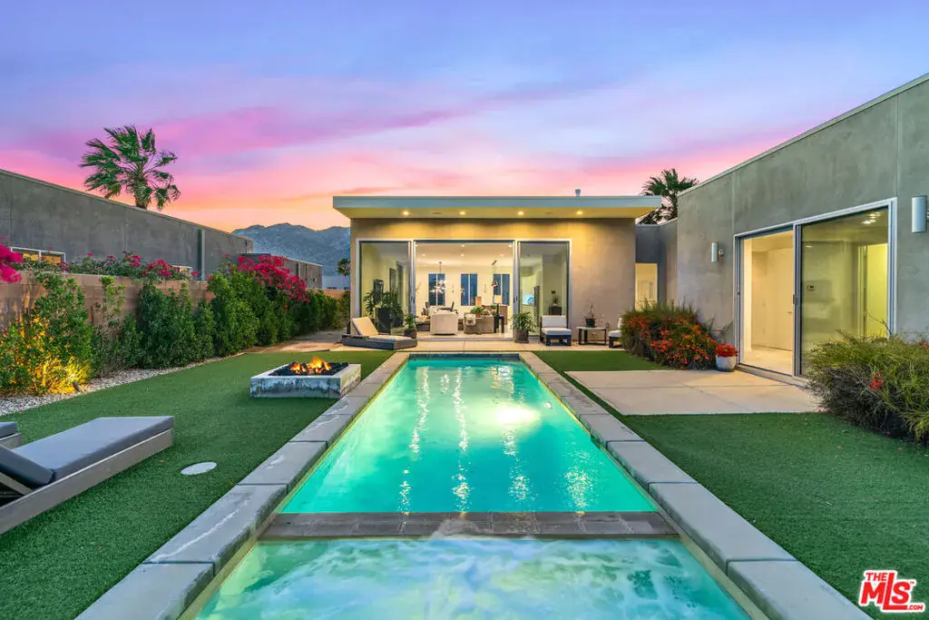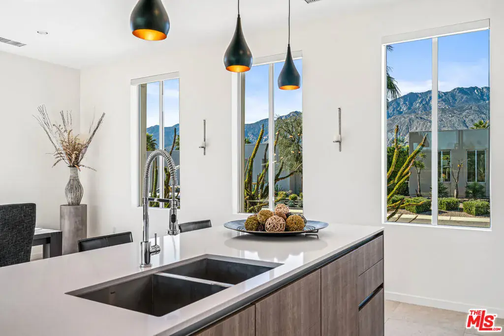 Experience elevated desert living at Escena in this luxury residence designed by renowned architect Anthony Poon and built by Alta Verde. The sought-after Garden floor plan is designed for seamless indoor/outdoor living, featuring a wall of floor-to-ceiling Fleetwood sliding doors that open from the living room to a private entertainer’s backyard with pool, spa, fire-pit and breathtaking San Jacinto Mountain views. The expansive great room offers 10-foot ceilings, elegant tile flooring, and abundant natural light. The gourmet kitchen is a showpiece with an oversized island, designer pendant lighting, custom countertops and backsplash, Bosch appliances, and sleek Italian cabinetry perfect for both entertaining and everyday living. The sun-filled primary suite is a peaceful retreat with a spacious walk-in closet and spa-like bathroom featuring a floating dual-sink vanity, soaking tub, and walk-in shower. Two well-appointed guest bedrooms share a generous Jack-and-Jill bathroom, ideal for guests or family. Additional highlights include owned solar, Control4 Home system, dual-zone HVAC, home security system, and a two-car garage equipped with an upgraded electric vehicle charger. Escena is a beautifully landscaped guard-gated community offering access to a clubhouse, championship golf course, dog parks, and low HOA dues. Select furnishings available. (See photos, floor-plan & 3D Matterport)