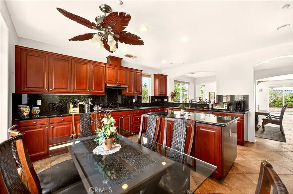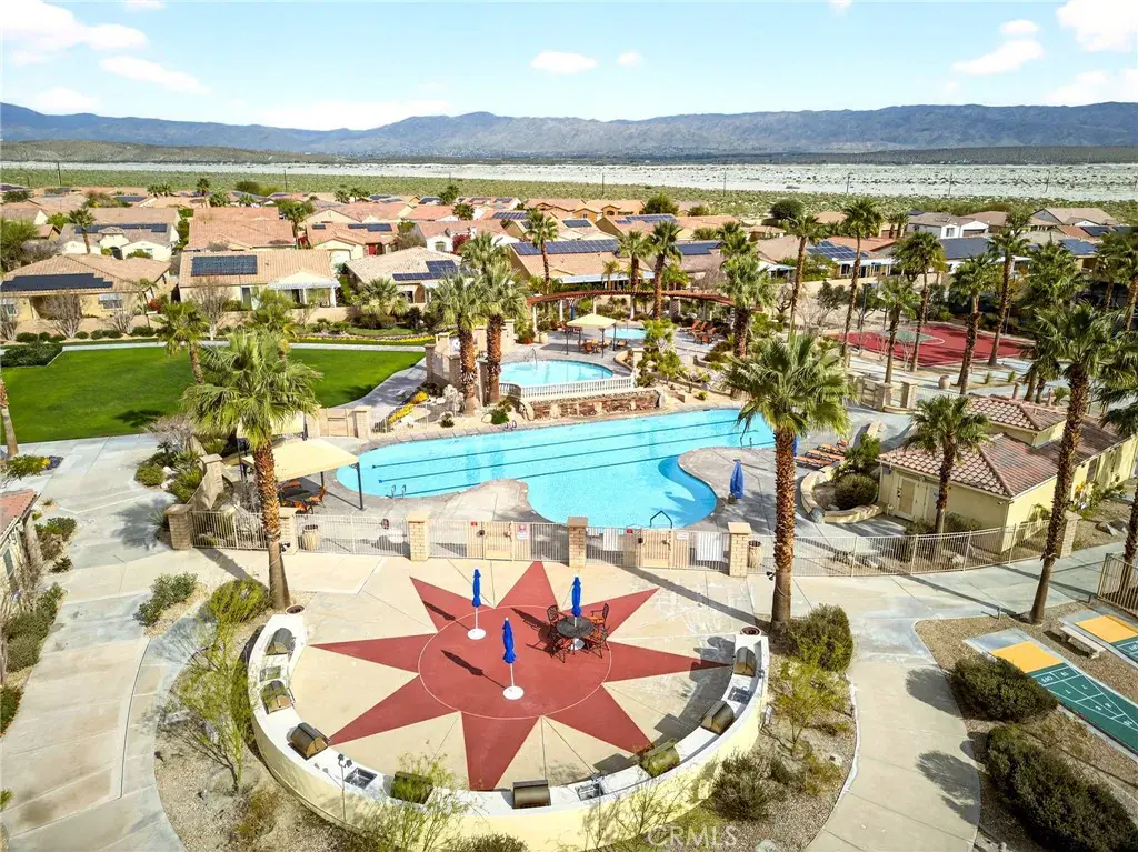 Welcome to the prestigious Four Seasons gated 55+ community in beautiful Palm Springs. This stunning 2,288 sq. ft. single-story home offers 3 bedrooms and 2 bathrooms with an open, airy floor plan and is ideally situated on a quiet cul-de-sac. The home features extensive 18” ceramic tile flooring and 9’ ceilings, creating a bright and spacious feel throughout. The gourmet kitchen showcases granite countertops, abundant cabinetry, a large center island, and a sunny breakfast area with beautiful mountain views. The formal dining room and expansive living room are perfect for entertaining and family gatherings. The spacious primary suite includes a huge walk-in closet and a luxurious en-suite bathroom with dual vanities, a relaxing jetted tub, and a step-in shower. An indoor laundry room with a utility sink provides direct access to the 2-car garage. Step outside to your private backyard retreat featuring low-maintenance desert landscaping, a concrete patio with an Alumawood patio cover, mature shrubbery, and fruit trees; recently redesigned with natural desert elements for both beauty and ease of care. Additional highlights include vinyl window blinds throughout and five ceiling fans. Residents of Four Seasons enjoy resort-style amenities at “The Lodge,” including a clubhouse ballroom, fitness and aerobics studios, game room, library, swimming pools, spas, tennis and pickleball courts, BBQ pavilion, scenic walking trails, and a full calendar of social events. HOA includes Frontier fiber internet. Located just minutes from downtown Palm Springs, fine dining, designer shopping, casinos, entertainment, and medical facilities—experience the ultimate Palm Springs lifestyle where luxury and convenience come together.