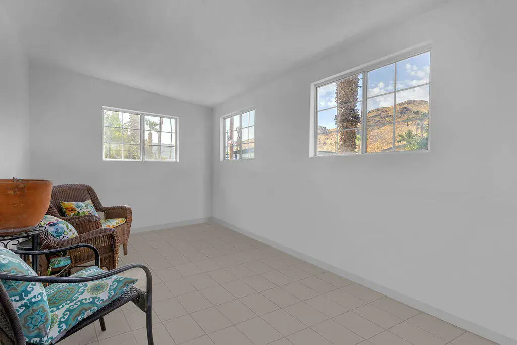 Seller says sell it! Major Price Reductions- means a great deal for you! Near Araby hiking trail! This spacious double-wide home–with thoughtful additions creating a true triple-wide feel–offers charm, character, and incredible potential. The floor plan includes a formal entryway, large sunroom, den, and an extra bedroom, providing 3 bedrooms plus a versatile office space to accommodate a variety of lifestyles.Inside, you’ll find beautiful parquet floors, custom bookcases, and a classic galley-style kitchen that adds warmth and personality. The dedicated laundry room is generously sized and offers enough space to add an additional bathroom if desired. The expansive sunroom is ideal for relaxing, entertaining, or taking in the peaceful surroundings.Located in Horizon Village Park (no age restrictions), this home sits just beneath the iconic Bob Hope estate in the scenic Palm Springs mountains, offering a serene backdrop while remaining close to shopping, dining, and everyday conveniences.While the property is ready for some updates, the price reflects this and presents a fantastic opportunity for buyers looking to customize their dream home. Additional features include a storage shed and a 1-car garage for added functionality. Park is in the process of metering out each residents gas and electricity set to be done by April 2026.