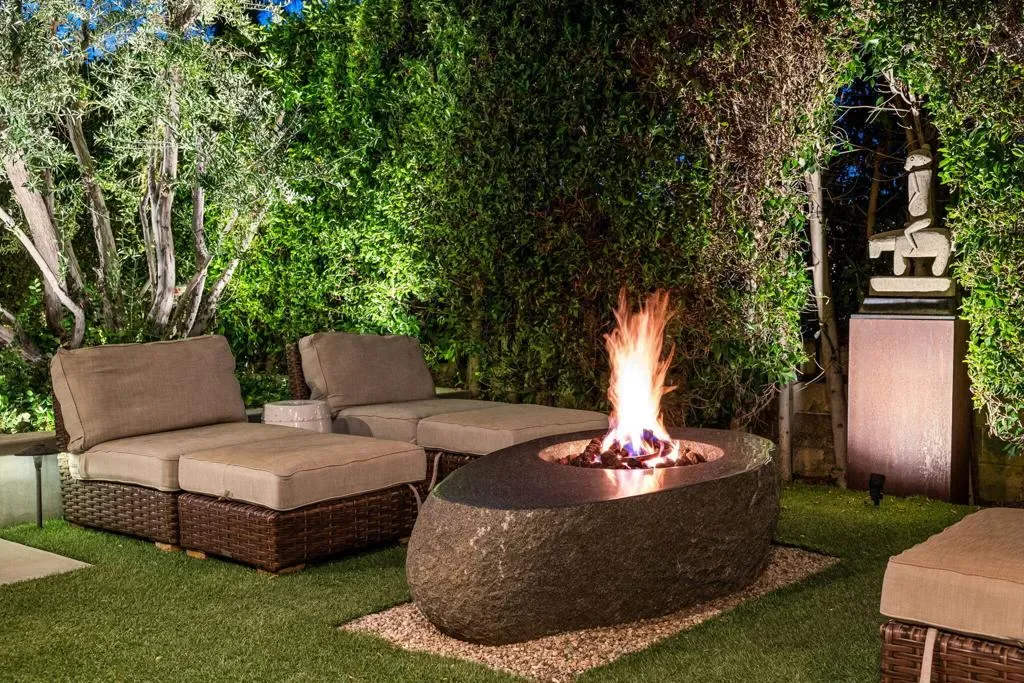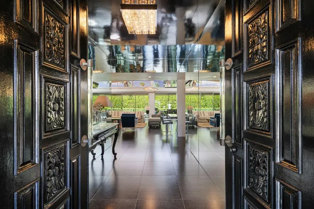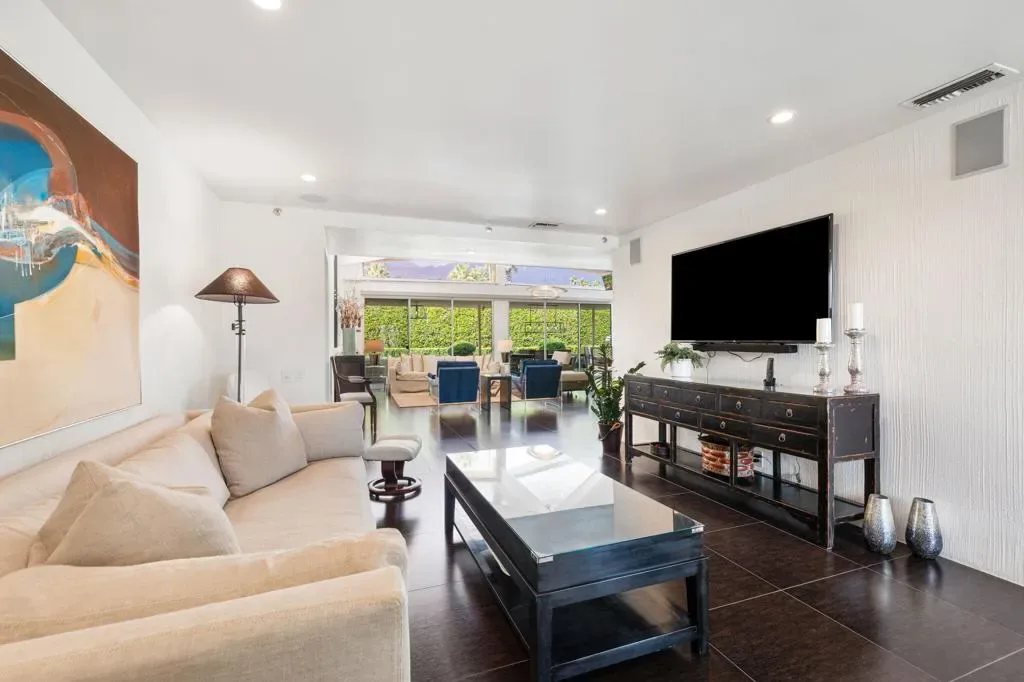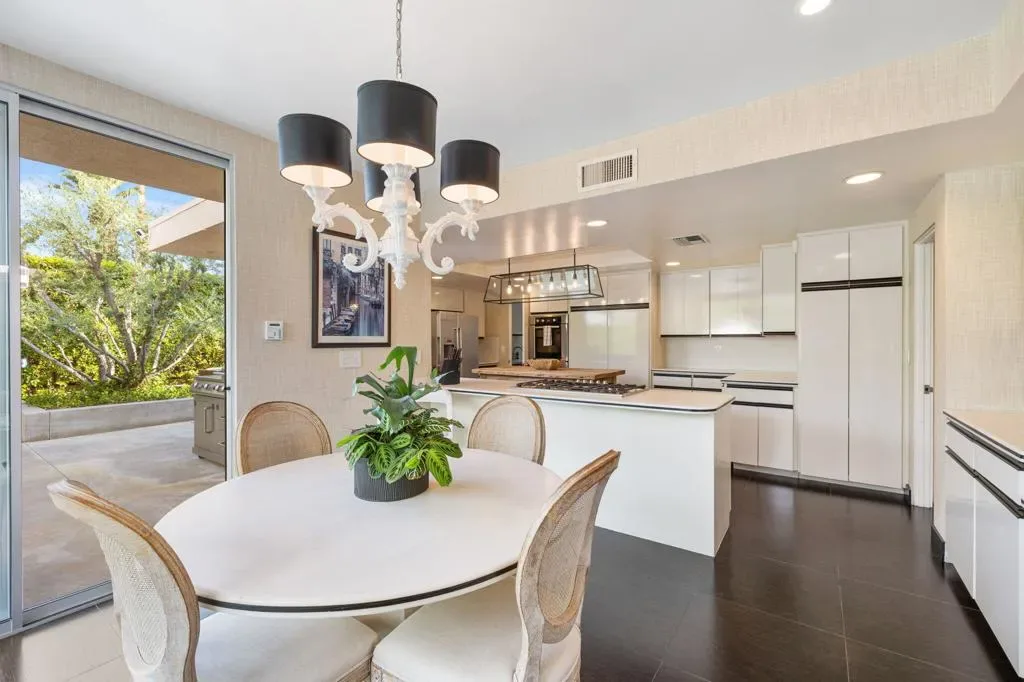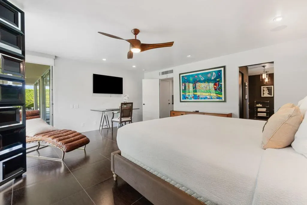 PRICED to sell! CLASSIC 70’s Palm Springs home selling with FURNISHINGS INCLUDED! FEE LAND and NO HOA in the Canyon Palms section of Indian Canyon. This stunning showplace is on a corner lot and no wires. Private pebble pool & spa, patios and retreat areas. Massive granite fire features and manicured sculpture gardens with olive trees and custom lighting to delight you and your guests. Ideal for outdoor dining. Offering generous square footage (over 2,700) with 2 LARGE bedrooms, PLUS a den or media room (bedroom option) and 3 baths. Outdoor shower, just for fun! Design and enhancements by the former International Creative Director for Ralph Lauren and concept creator of Williams Sonoma Home. Carefully curated, this home is stately and chic throughout, the quality is obvious. Beautiful selections of porcelain tiles, granite and stone. Don’t miss one of the most impressive and dramatic residential bars in all of Palm Springs! Bosch stainless appliances, updated windows and doors, leak defense and water treatment systems. TOTAL foam roof refresh completed in 2026! This exceptional home is elegant and sophisticated. No work to be done, just relax, entertain and enjoy! Mere minutes to downtown, airport, Indian Canyon golf, and Smoke Tree.