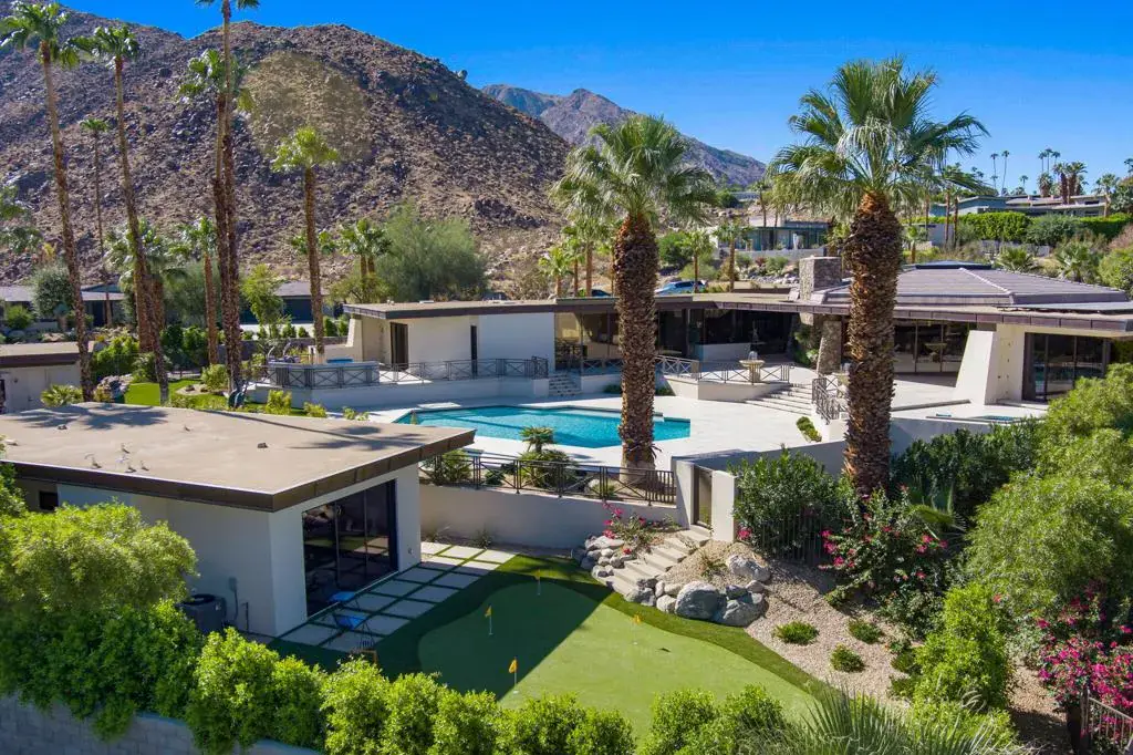 Serenely nestled within the private gated Rose Hill enclave of Las Palmas Heights sits an iconic residence, steeped in history, and displaying the epitome of timeless architectural glamour. Situated at one of the most scenic points in Palm Springs, this Buff & Hensman designed masterpiece was originally built for Jerry Zarowitz, of Caesar’s Palace, and has been thoughtfully upgraded for today’s technological and aesthetic tastes. Celebrities such as Frank Sinatra and friends have enjoyed the breathtaking views and complete privacy afforded within gated confines of the over 1.31ac Estate. Fast forward through 5 years of major restoration & addition with the Designer’s uncompromising efforts to restore & authenticate a 1972 home to today’s expectations while maintaining the property’s bold architectural significance. The research & execution of the transformation is truly remarkable & will be appreciated by an aficionado of a classic property. The exquisite nature of each space is evident from the fully reimagined Primary suite; 3 guest suites; media room/office; formal dining w/custom floating 3-sided wine cellar; gourmet kitchen; sunken living room; fully equipped wet bar; new 1 bedroom guesthouse w/full kitchenette; putting green; 3 car garage w/catering kitchen. Offered ‘Turnkey Furnished’ (look at ‘Documents’ for Notable Pieces and More). Solar Lease.