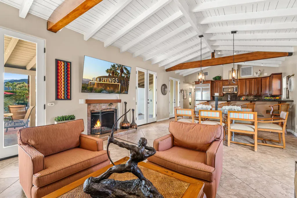 Step through the private gated entrance of this legendary Spanish Estate in Little Tuscany and discover why the stars chose this hidden gem in Palm Springs’ most exclusive area. Completely enveloped by towering hedges and dramatic walls, this Old Las Palmas adjacent masterpiece offers what many crave … seclusion … but close proximity to all Palm Springs offers. The shimmering pool greets you upon arrival, reflecting the majestic San Jacinto Mountains that stand guard over this private paradise. The estate’s strategic south and west orientation captures nature’s daily masterpieces–golden sunrises that gently warm the pool waters and spectacular sunsets that paint the sky in hues of amber and rose. Mountain vistas frame every moment. Explore the exquisite interior, where five fireplaces create an ambiance of warmth and charm, complemented by authentic beamed ceilings and travertine floors. This estate boasts five spacious bedrooms, all with private ensuite baths. The tour continues to the independent guest casita, a sanctuary offering a private retreat complete with kitchenette. Outdoor living is equally luxurious with multiple patios designed for relaxation and gatherings as well as an outdoor shower and adjoining pool bath. A two-car garage with EV charger makes for ease while the cozy fire pit invites evening storytelling under the starry desert sky. Here, the timeless elegance of Spanish architecture blends seamlessly with modern comforts, offering an unparalleled living experience. Imagine hosting intimate gatherings or simply unwinding in the expansive outdoor living spaces. Every corner of this estate exudes charm and sophistication. Your private desert sanctuary awaits with this opulent haven being offered fully furnished, allowing you to immediately indulge in the quintessential Palm Springs lifestyle.