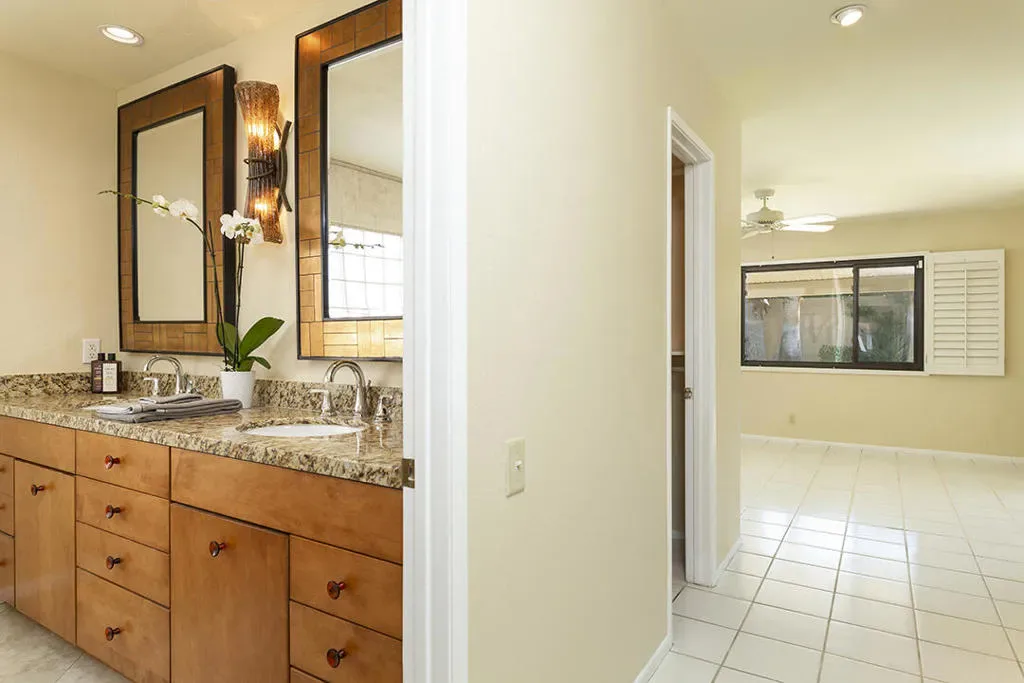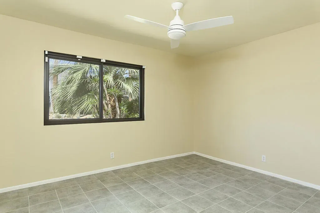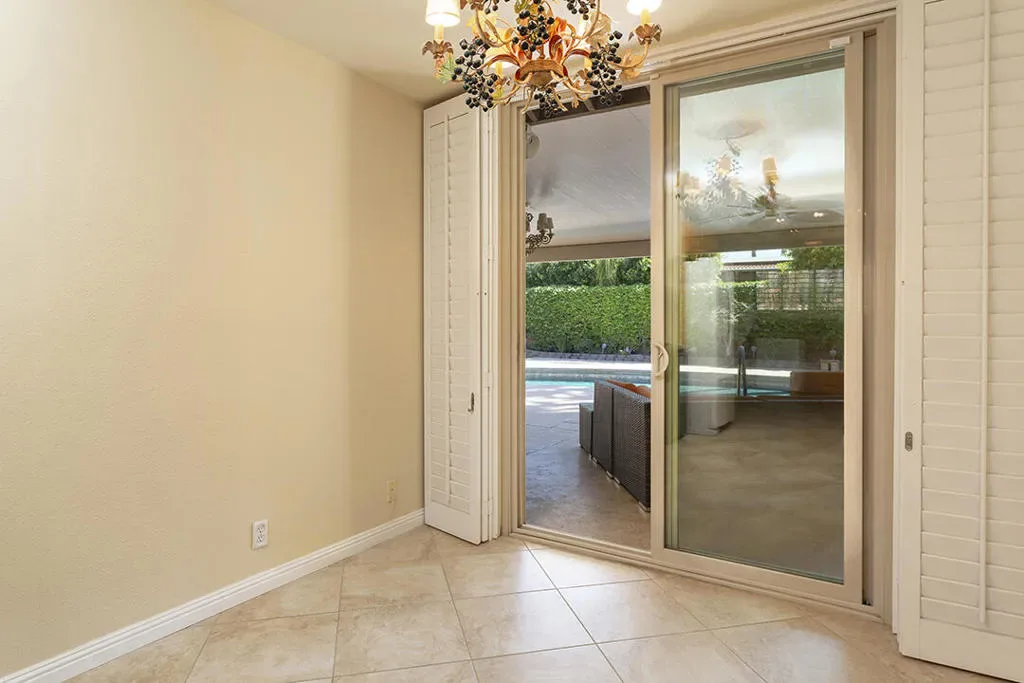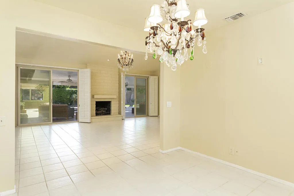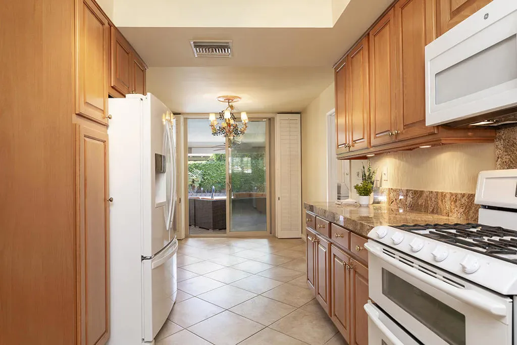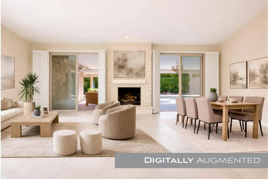Located in Los Compadres Estates in Palm Springs, this beautifully maintained California Ranch offers the perfect blend of comfort, style, and location. Set on Fee Land in one of Palm Springs’ classic ”non-windy” neighborhoods, the home enjoys mountain views, no visible power lines, and membership in an exclusive 50-home HOA with access to a private community park featuring pickleball and tennis courts.This spacious single-story residence features 3 bedrooms, 3 bathrooms, and a versatile media room/den. The vaulted great room is highlighted by impressive 13-foot ceilings, a classic brick fireplace, and sliding doors that open to the expansive covered patio and sparkling pool, creating an effortless indoor-outdoor flow. Both the front and rear yards are professionally landscaped with mature trees, artificial turf, manicured rock gardens, and thoughtfully curated desert plantings that enhance the home’s Palm Springs appeal.Inside, the updated classic galley kitchen features a west-facing window and offers the opportunity to create a more open-concept layout if desired. Just off the main living area, the den enjoys wonderful natural light and beautiful views. The spacious primary suite opens directly to the covered rear patio and lush backyard, and has a walk-in closet and an updated en-suite bath.At the front of the home, the second bedroom enjoys excellent natural light, lovely views, and convenient access to a guest bath. The third bedroom is privately situated on the opposite side of the home near the kitchen and laundry area, making it ideal for guests or a home office. Additional features include a leased solar system, an updated roof, and the home’s overall immaculate condition. HOA | $1,080/year | HOA is for the maintenance of the 2-acre private park for the 50 homes in the community. There is one tennis court and four pickle ball courts.Solar | Leased | Installed 2012 | 10.92 Kw DC | $294/mo | System purchase $25,518.32 valid until 04-30-2026 | Expires 2032Additional Items and Amenities Roof updated in 2012 when solar was added Updated doors and windows throughout One main HVAC with an additional Split system for primary suite. Also an evaporative cooling system.