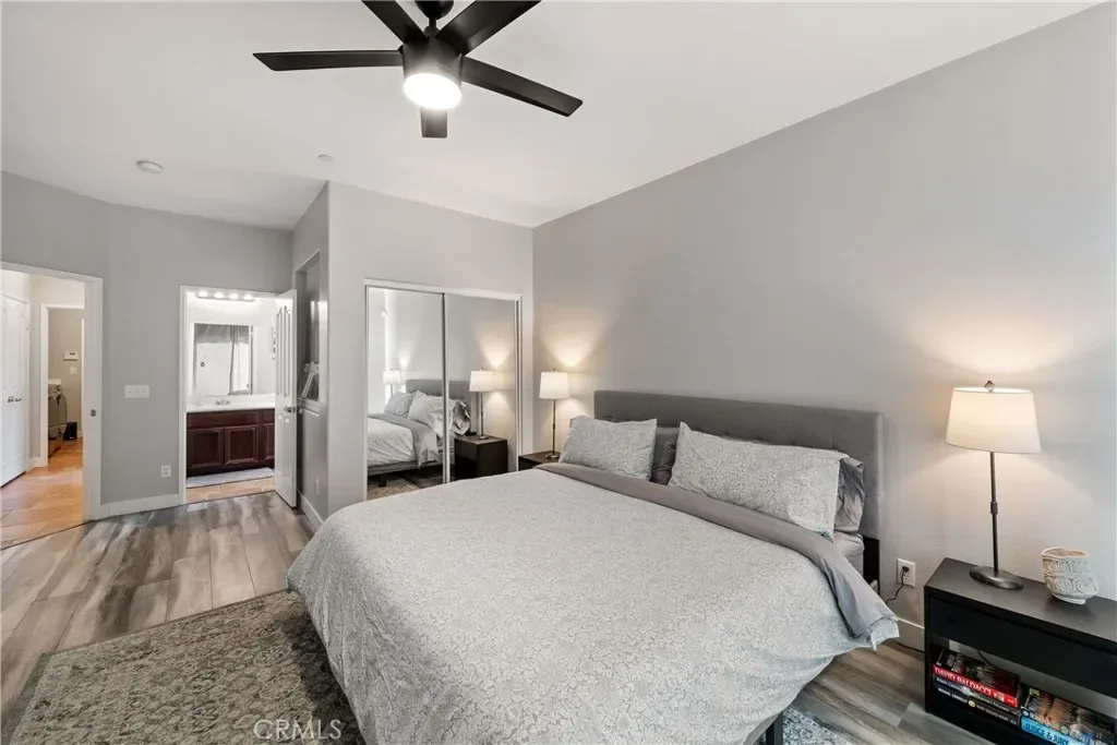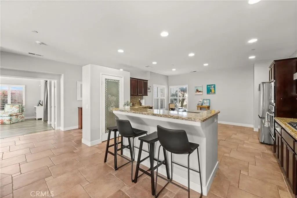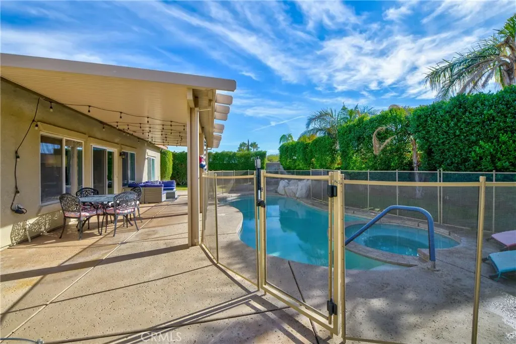 Nestled in a serene, gated neighborhood just minutes from the vibrant heart of downtown Palm Springs, Mountain Gate’s Bella Model offers 3 bedrooms and 2 baths with an attached Casita for a perfect blend of comfort, style, and convenience. The home boasts a spacious open floor plan, and the attached casita/4th bedroom/3rd bath, has its own entrance, perfect for guests or private office space. Entering the home, you immediately feel the calm, inviting energy as the view of the backyard welcomes you. An entertainers delight, with the flow of the living areas opening onto the rear patio, allowing guests to enjoy both indoor and outdoor conversations. The gas fireplace in the living area is perfect for cozy relaxation on those cooler evenings. In 2021, the home was freshly painted, new 4” baseboards added, beautiful new luxury laminate flooring throughout the living areas and bedrooms installed, offering a sleek and low-maintenance aesthetic. Two of the bedrooms and the living area offer new sliding doors installed in 2022 as well as a new tank-less water heater. The eat-in kitchen is equipped with stainless steel appliances, ample cabinetry, and a breakfast bar for casual dining. The spacious primary bedroom suite is a true retreat, complete with an en suite bathroom featuring dual vanities, a soaking tub, walk-in shower, and generous walk-in closet. Additional features of the home include a 3-car garage, an RV parking pad for your convenience, and residents enjoy access to 3 community pools, tennis courts, a basketball court, an outdoor grilling area, and a playground, making it an ideal place for both family and friends relaxation and recreation.