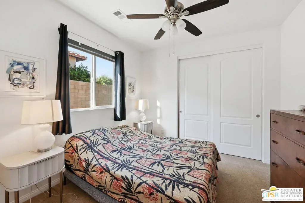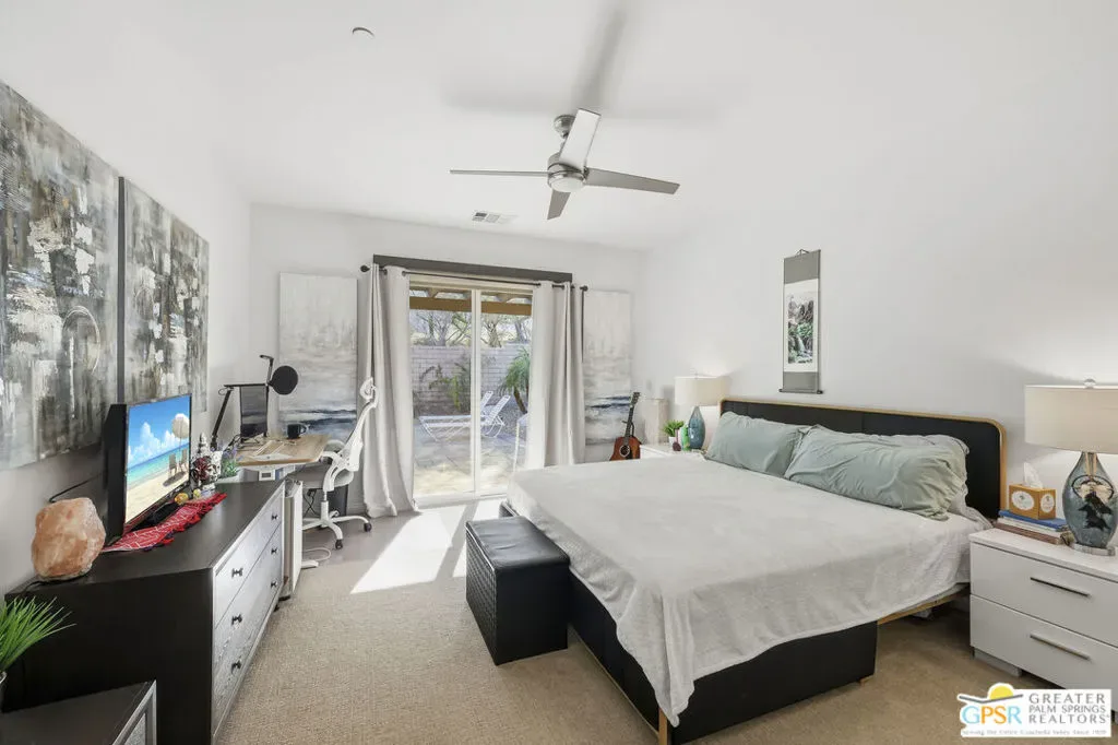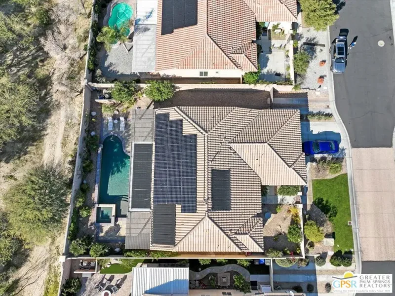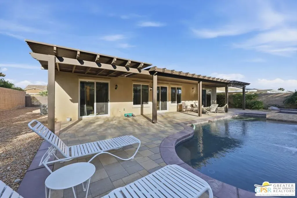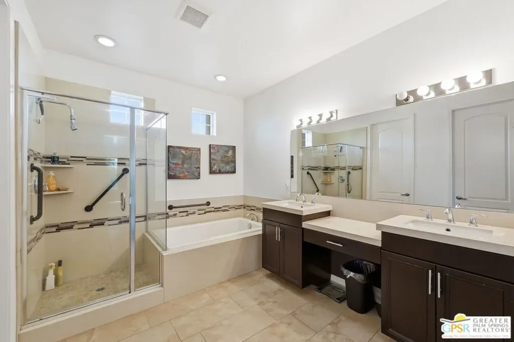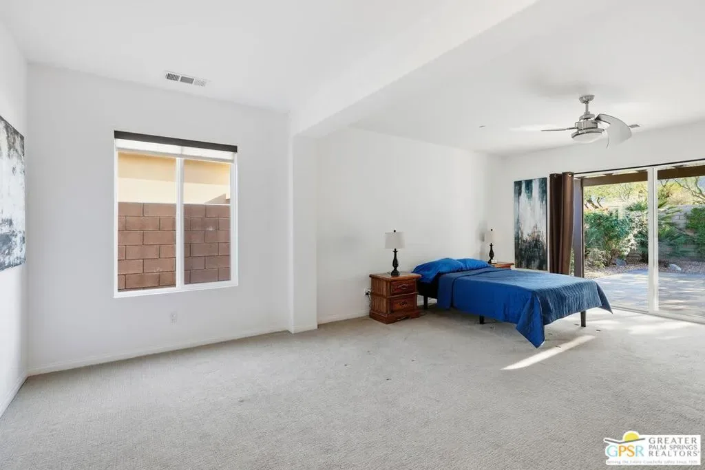 Welcome to 1233 Oro Ridge, a 4-bedroom, 4-bathroom residence in the sought-after, gated Mountain Gate community of Palm Springs. Surrounded by striking mountain views, this home offers the ideal balance of desert tranquility and easy access to city amenities. Built in 2014, this property was one of the original model homes for the final phase of the community and includes all builder upgrades. The bright, open-concept layout is filled with natural light and designed for both comfortable everyday living and effortless entertaining. The thoughtfully designed floor plan provides excellent separation of space, featuring three generously sized bedrooms plus a private casita accessible through the front courtyard perfect, for guests, multigenerational living, or a home office. With four bathrooms, flexibility and convenience are built into every corner of the home. At the heart of the home is a spacious chef’s kitchen featuring dual islands, quartz countertops, and ample storage ideal for gatherings large and small. Additional highlights include leased solar, plus separate solar heating for the LARGE pool and spa, enhancing both efficiency and comfort. Mountain Gate residents enjoy resort-style amenities including community pools and spas, tennis courts, and basketball courts. Ideally located just minutes from downtown Palm Springs, shopping, dining, golf, scenic hiking trails, and close proximity to the CV Link, this home is perfectly suited as a full-time residence, seasonal escape, or investment opportunity.1233 Oro Ridge delivers space, style, and location capturing the very best of Palm Springs living.
