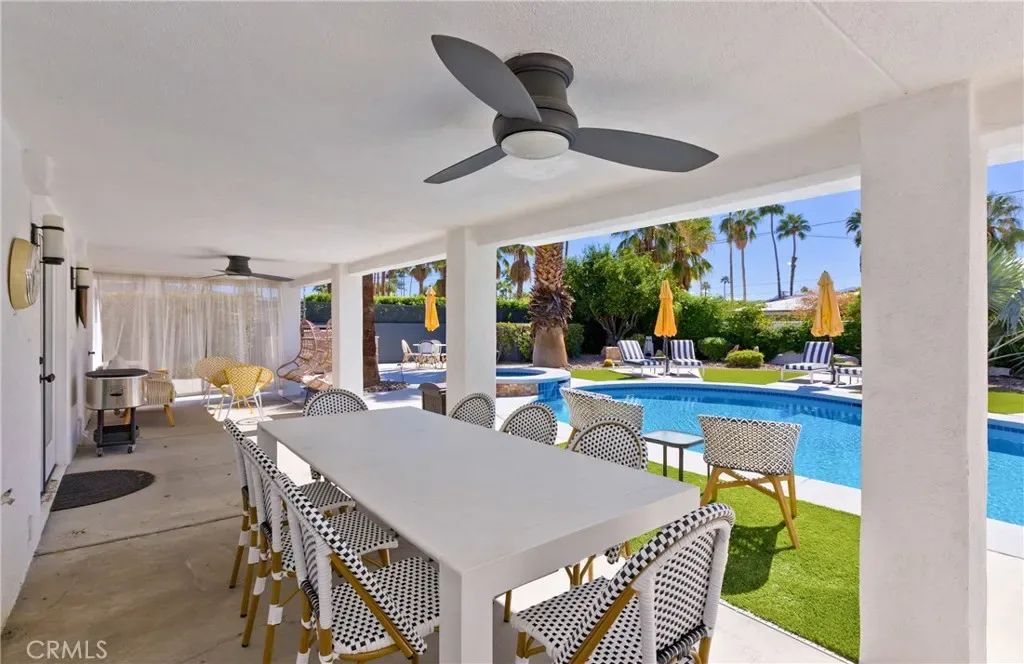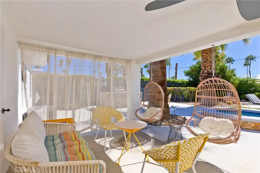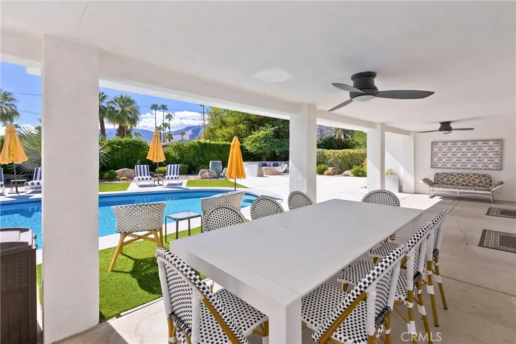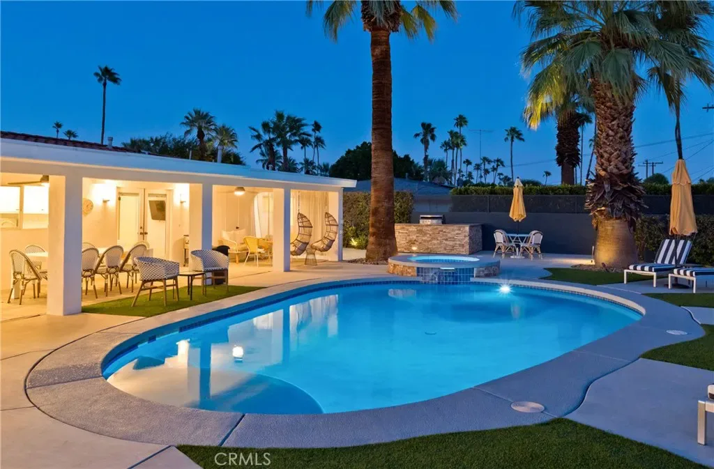 Monthly and/or Short Term Rental. Welcome to The Movie Colony Escape, a rare 4-bedroom, 4-bathroom Mid-Century Modern home in one of Palm Springs’ most iconic neighborhoods — The Movie Colony is where Hollywood legends such as Frank Sinatra, Elizabeth Taylor, Marilyn Monroe, Cary Grant, Dinah Shore, Dean Martin once escaped the studio lights and found their paradise beneath the desert sun. This gem offers resort-style outdoor living and timeless Hollywood charm. Your sunny sanctuary all year long. This rare Mid-Century Modern residence spans over 2,100 square feet of living space on a nearly 11,000 square foot lot. Light, bright, and private, designed for effortless desert living, the home features clean mid-century lines, open spaces, and glass doors that invite the outdoors in. Each bedroom has its own bath, providing comfort and privacy for families or groups traveling together. Outside, a resort-style backyard awaits — complete with a sparkling pool, cozy fire-pit, lounge chairs, and outdoor dining area framed by swaying palm trees and panoramic mountain views. Ideal for snowbirds, seasonal travelers, short-term vacation stays. Only 5 minutes from Downtown Palm Springs shopping, world renowned dining, nightlife. Close to Palm Springs Art Museum & Uptown Design District, Convention Center. Minutes from world-class golf, spas, and hiking trails. 10 minutes from Palm Springs International Airport.