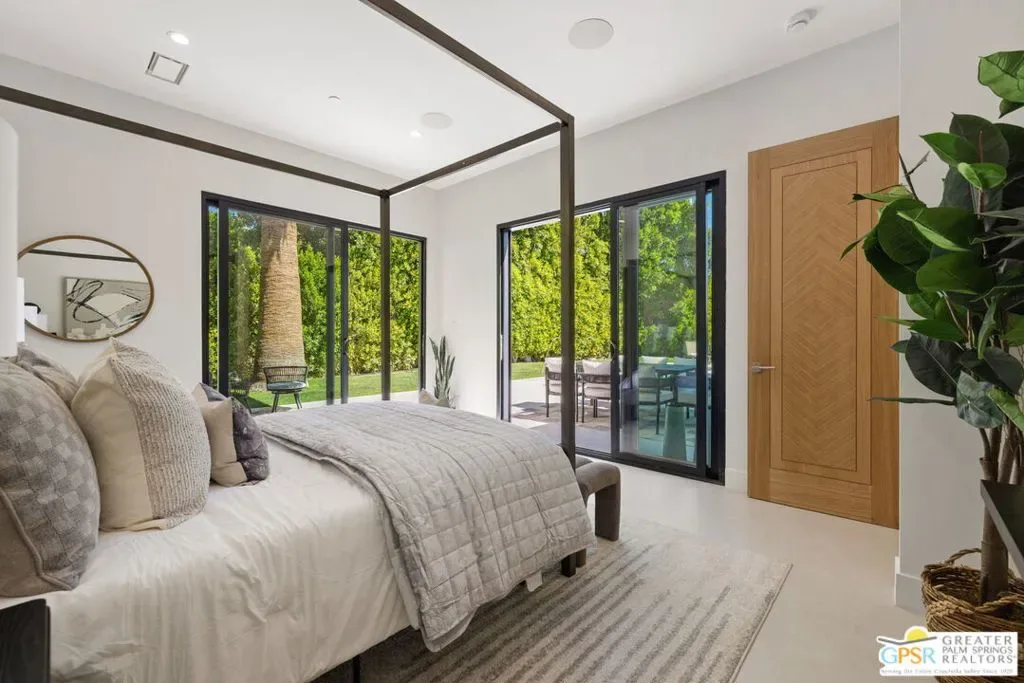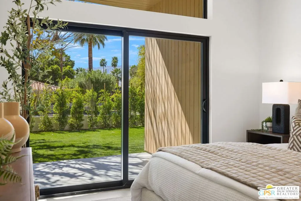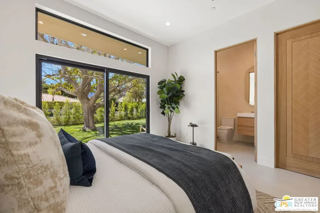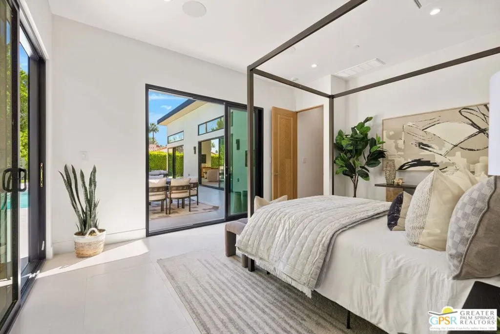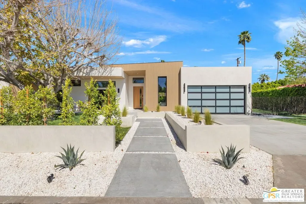 Freshly finished, this architecturally striking ultra-modern residence brings a bold contemporary presence to Palm Springs’ desirable Movie Colony East neighborhood. Designed with clean lines, soaring ceilings, and walls of glass that frame the dramatic west-facing views of Mt. San Jacinto, the home offers approximately 2,500 square feet of refined indoor/outdoor living with four bedrooms and three-and-a-half baths. Set on fee land with no HOA, the property blends privacy with a prime location just minutes from the restaurants, galleries, and energy of downtown Palm Springs. Inside, porcelain tile flooring, sleek cabinetry, and refined modern finishes reinforce the home’s minimalist design aesthetic. The open-concept living and dining areas flow seamlessly toward the outdoors, where multiple conversation spaces surround the newly built pool and spa, creating a true resort-style environment. At the heart of the home, the chef’s kitchen centers around an oversized island and features KitchenAid appliances, smart lighting, and modern cabinetry designed for both everyday living and entertaining. The thoughtful layout provides excellent bedroom separation for privacy. The Primary Suite opens directly to the pool terrace through dual sliding doors and features a walk-in closet and spa-inspired bath with soaking tub and walk-in shower. Junior Ensuite Two enjoys views and its own private bath, while Bedrooms Three and Four capture mountain views and share convenient access to a beautifully appointed bath. A powder room serves guests. Modern comforts continue throughout with upgrades including a Sonos sound system, Grohe plumbing fixtures, Lutron lighting controls, and wireless-enabled pool equipment. A rare opportunity to enjoy brand-new modern architecture in one of Palm Springs’ most sought-after neighborhoods where design, privacy, and mountain views converge.