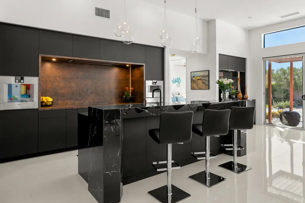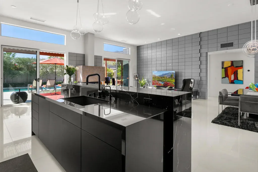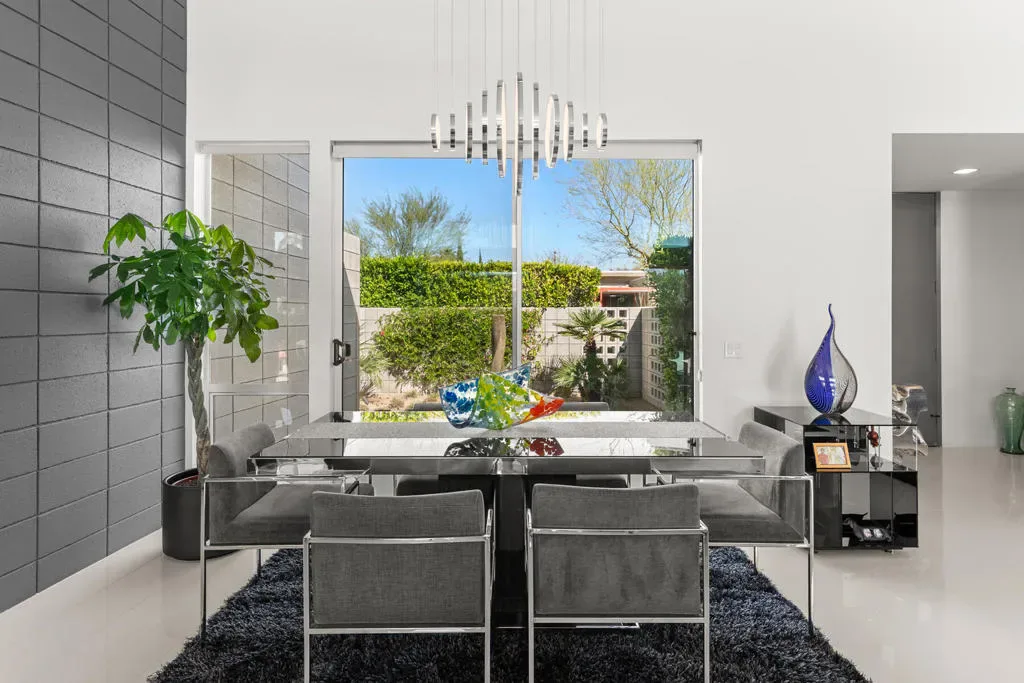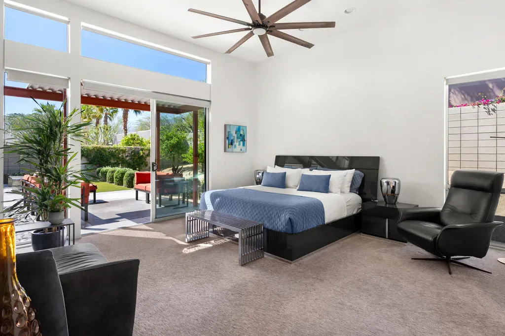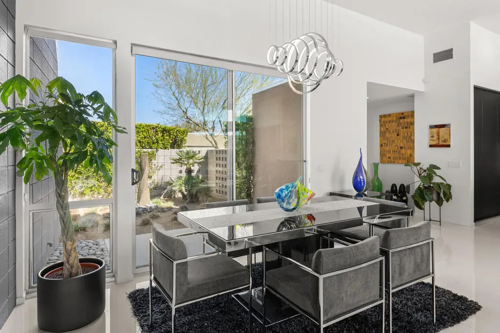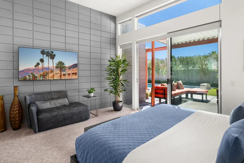 Welcome to 1069 Azure Court, a beautifully reimagined modern residence in Palm Springs’ highly sought after Murano neighborhood, a boutique enclave known for its architectural integrity, pride of ownership on fee land with no HOA. Recently transformed with nearly $375,000 in sleek, sexy yet thoughtful upgrades, this home reflects an exceptional level of craftsmanship and design rarely found at this price point.The heart of the home is a completely rebuilt chef’s kitchen, taken down to the studs and professionally designed with custom European cabinetry, imported Spanish sintered stone countertops, and a full suite of top-of-the-line Gaggenau appliances, creating a space that is as functional as it is stunning. The primary suite has been fully reimagined as a spa-like retreat, featuring a luxurious new bathroom with dual vanities, large, curbless steam shower, freestanding soaking tub, and a beautifully designed custom walk-in closet with integrated lighting and premium built-ins. Every detail was carefully considered to deliver both elegance and everyday comfort.Outdoors, the property continues to impress with a complete landscaping overhaul, creating a private resort-style setting designed for effortless desert living. Generous outdoor areas, a sparkling salt water pool and spa, and stunning mountain views make the home ideal for entertaining or simply enjoying the Palm Springs lifestyle. Set on an expansive 12,600 ft. lot, the property offers significantly more land and outdoor space than many homes in this price range, a rare advantage within the Murano community.With approximately 2,186 ft. , 3 bedrooms, and 3 baths, soaring ceilings, clerestory windows, and seamless indoor-outdoor flow, the home lives larger than its footprint and captures the essence of modern desert living. A rare opportunity to own a fully upgraded architectural home with exceptional space, design, and value in one of Palm Springs’ most desirable modern communities.Turnkey furnished option available outside escrow (approx. $100K value offered for $35K).
