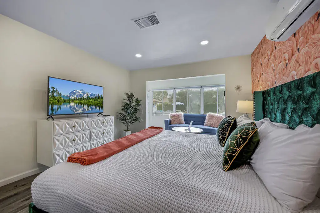 This modern 5-bedroom, 3-bathroom retreat in the heart of Palm Springs is the epitome of luxury and relaxation. With a beautiful pool and spa, a game room, a firepit, and all the modern amenities you could desire, this property promises an unforgettable vacation experience.This stunning retreat boasts five well-appointed bedrooms, offering sleeping arrangements for up to 10 guests. Each bedroom is tastefully decorated and equipped with comfortable bedding for your utmost comfort.Step outside to your private oasis, featuring a sparkling pool and rejuvenating spa. Bask in the warm Palm Springs sun on comfortable loungers, or take a refreshing dip to cool off. When evening falls, gather around the firepit for cozy conversations under the starry desert sky. Nestled in the heart of Palm Springs, you’ll have easy access to the city’s vibrant culture, dining, and shopping scenes. Explore the nearby hiking trails or spend your days wandering through the local boutiques and art galleries. Despite its central location, this property offers a peaceful and private atmosphere. Lush landscaping and a well-designed layout ensure you can relax in complete serenity. Please inquire about availability and rates for your desired dates.