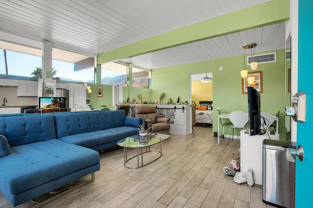 Own a piece of Palm Springs history with this mid-century modern condo at the Ocotillo Lodge, an iconic community designed by William Krisel and Dan Palmer and developed by the Alexander Company in 1956. This top-floor residence offers unobstructed mountain views through clerestory windows and has been fully renovated with updated plumbing, electrical, HVAC, kitchen, bath, and flooring, making it move-in ready with room for your personal style. One of the few condo communities in Palm Springs that welcomes short-term rentals, subject to city regulations, and located on fee land, this property offers the option for income potential.Situated in the sought-after Twin Palms neighborhood in South Palm Springs, the location is truly convenient with easy access to local dining, shopping, and nearby hotels in a desirable low-wind area. Residents enjoy resort-style amenities including the iconic champagne cork-shaped pool, two hot tubs, a fitness center, and a clubhouse. The HOA conveniently covers all utilities, including electricity. As part of a Class 1 Historic District, the property may also be eligible for Mills Act tax savings. Whether you’re seeking a vacation home, an income-producing property, or both, this beautifully updated mid-century retreat is a standout opportunity.