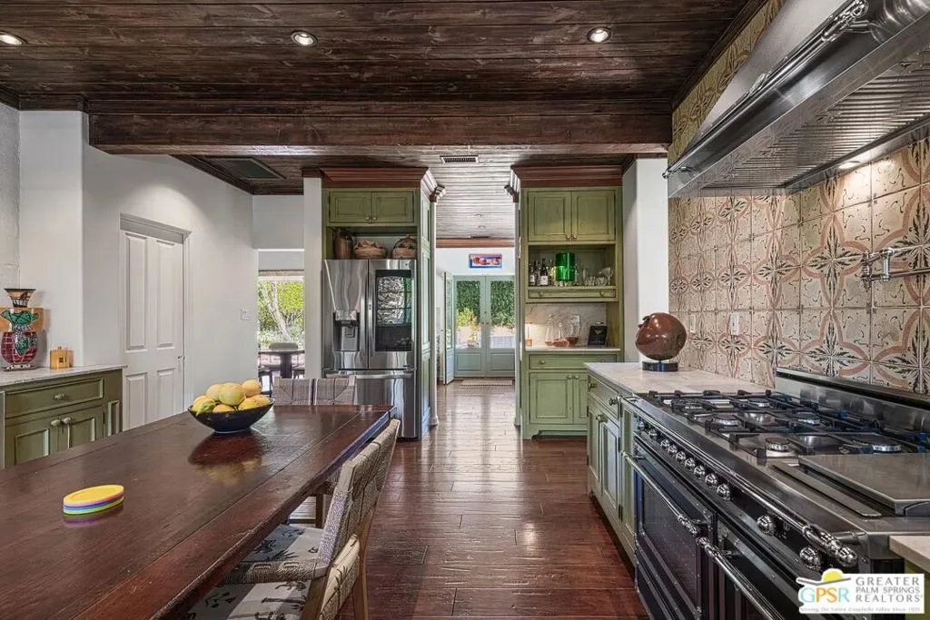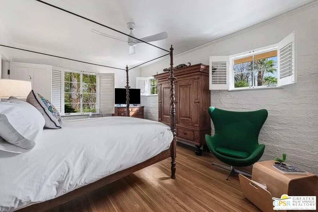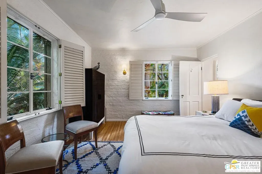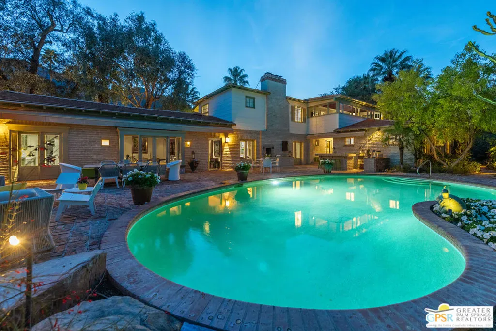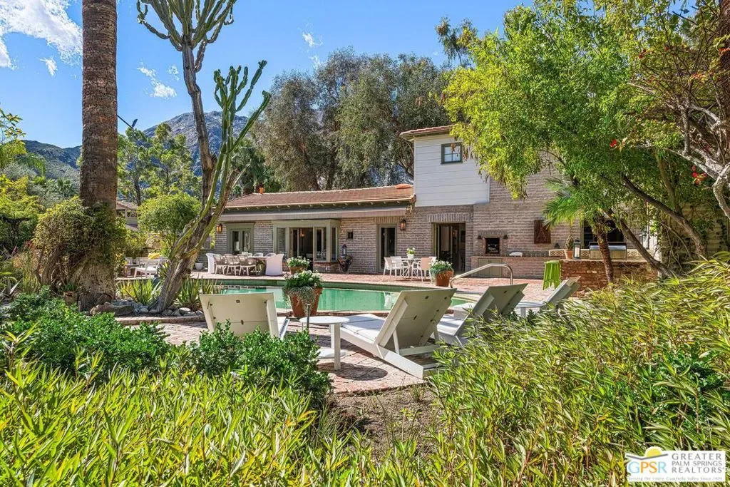 Architecture, History, Character, Seclusion and Design all blend together to create a legacy opportunity at 1184 Camino Mirasol, or El Sueno “The Dream”. El Sueno carries a lineage that spans the city’s “Between the Wars” period and its postwar glamour years. The home is notably associated with Melba Bennett and Donna Reed, among others. Rustic elements, particularly the pervasive use of brick in the interior and exterior, paired with natural wood finishes and carefully selected tile accents, help create the home’s charm. Discover your pocket of relaxation: sitting in the mature, park-like garden shade with a poolside view, taking in stunning mountain views from the balcony, or simply putting your feet up in one of the cozy rooms. This home is a true piece of art, somehow classic without feeling dated, thanks to affectionate attention to detail from every owner. Take your place as the curator of this masterfully preserved architectural icon.