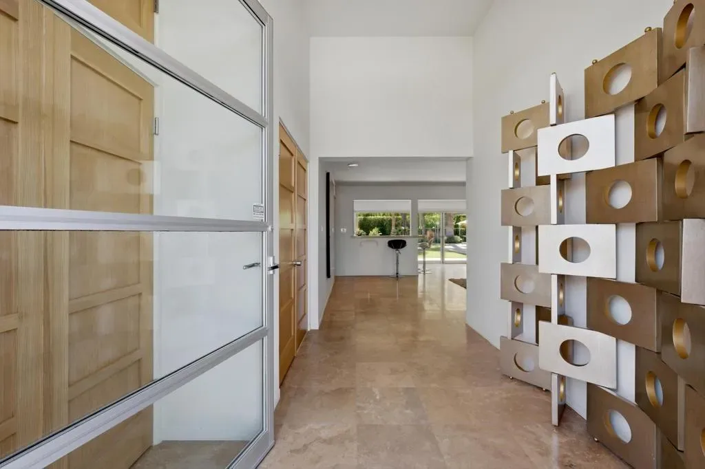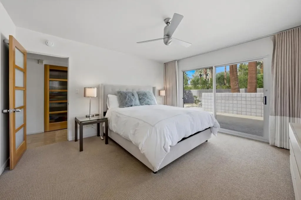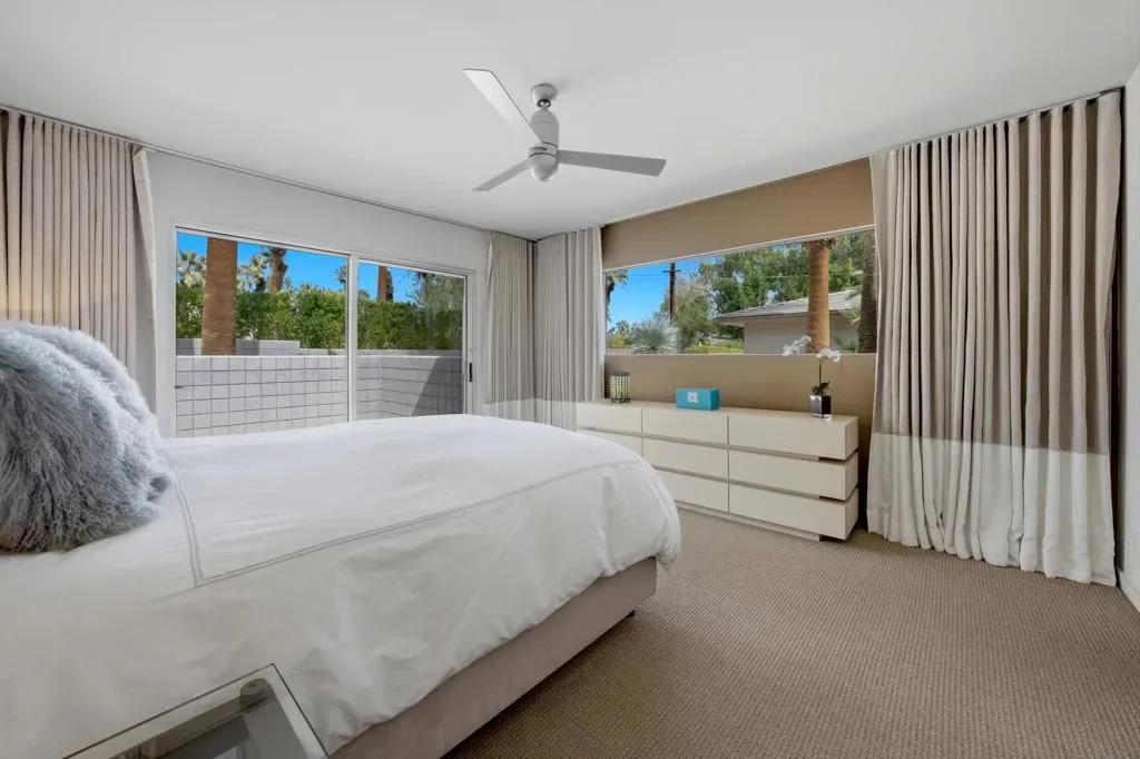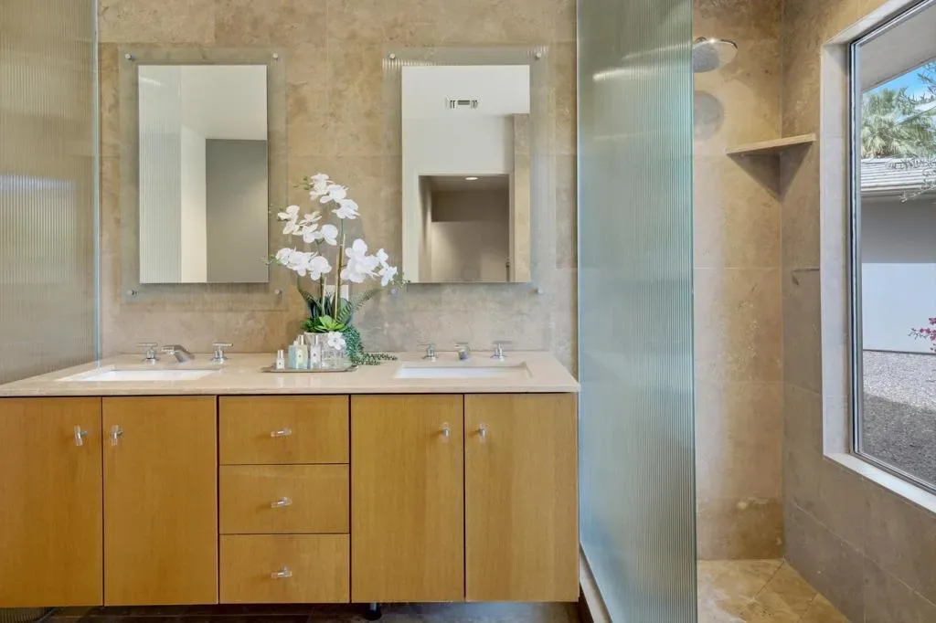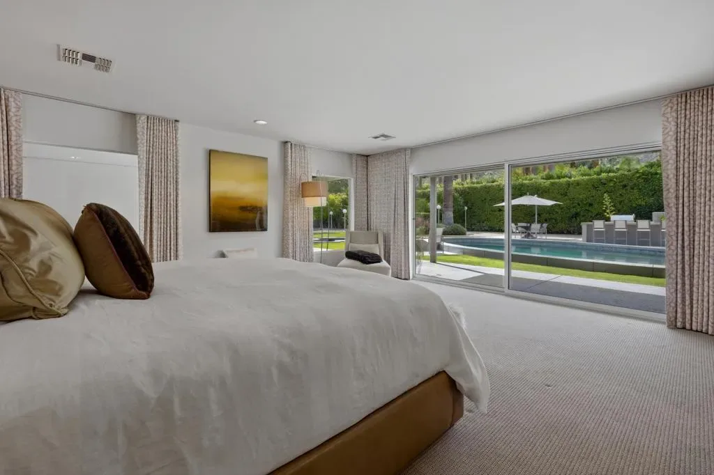 Located in the prestigious Old Las Palmas neighborhood in the heart of Palm Springs, this remarkable desert estate blends classic Palm Springs glamour with modern luxury. Once owned by legendary actress and comedian Lily Tomlin, the ”Lily Pad” carries a touch of Hollywood history within one of the city’s most iconic celebrity enclaves. Originally built in 1952 and thoughtfully reimagined for modern living, the estate spans approximately 4,671 square feet on more than half an acre of lush, gated grounds. Inside, sunlit interiors unfold through expansive living and entertaining spaces offering an atmosphere that is both sophisticated and relaxed – quintessential Palm Springs glamour with a contemporary edge. This home features 4 bedrooms, 7 bathrooms and thoughtfully designed living spaces with rich travertine tile flooring that create an inviting yet sophisticated atmosphere throughout. The heart of the home has a beautifully appointed chef’s kitchen with custom cabinetry and stainless-steel features that include countertops, backsplash and huge refrigerator/freezer. High-end appliances include 2 Meile dishwashers and Viking double oven & gas cooktop. There is a seamless flow between the great room & family room, both designed for effortless entertaining, showcasing two of the home’s five fireplaces, a stylish wet bar, and Fleetwood sliding doors opening to the spectacular resort-style backyard. The home’s four bedrooms include a luxurious ensuite primary offering a serene private escape, complete with a cozy fireplace, elegant custom drapery, and direct access to the backyard. Two other ensuite guest bedrooms, thoughtfully separated from the primary bedroom, offer guests their own private living space. Adding to the compound’s appeal, the estate was expanded with the construction of a nearly 1,000-square-foot guest house, complete with its own living area with fireplace, spacious bedroom suite and dramatic views of the surrounding desert mountains. Lily Pad’s outdoor space reveals the estate’s true magic. The resort-style grounds are centered around a custom pool and spa, with shaded lounge areas, a beautiful natural stone fireplace, outdoor kitchen, pool bathroom, and iconic desert mountain views. Towering palms and manicured landscaping evoke the golden age of Hollywood retreats. This exceptional property offers a rare opportunity to own a piece of Palm Springs’ storied past while enjoying the comfort and elegance of a fully reimagined desert estate.