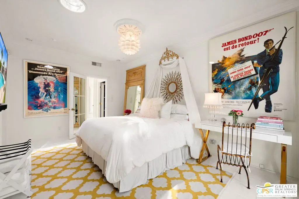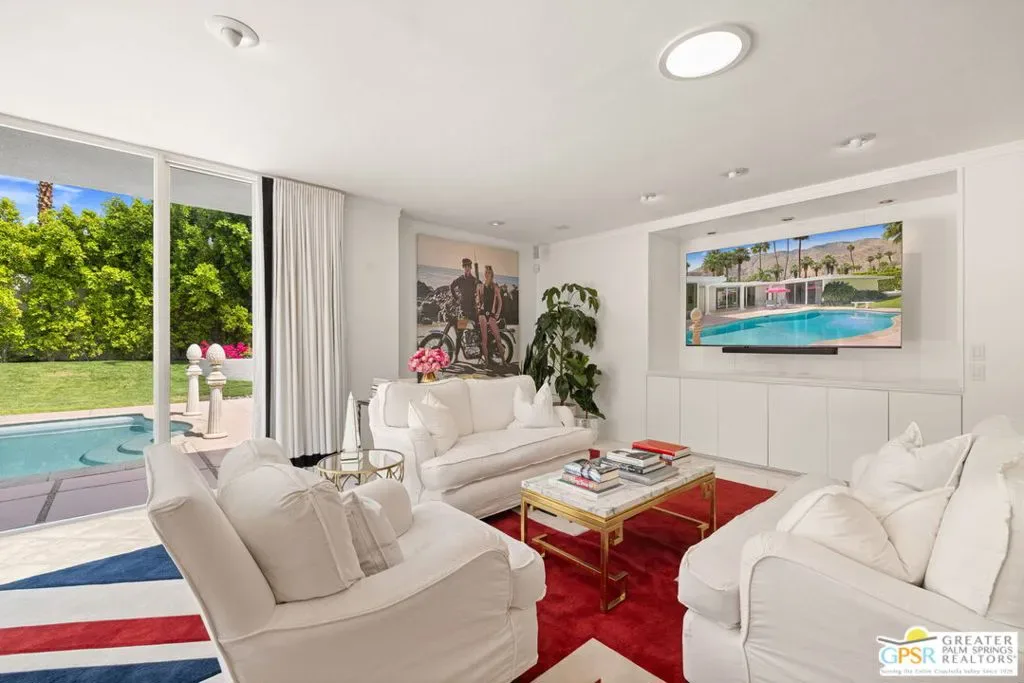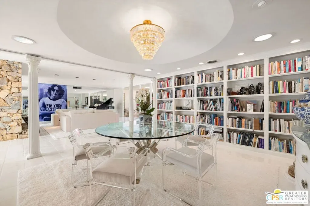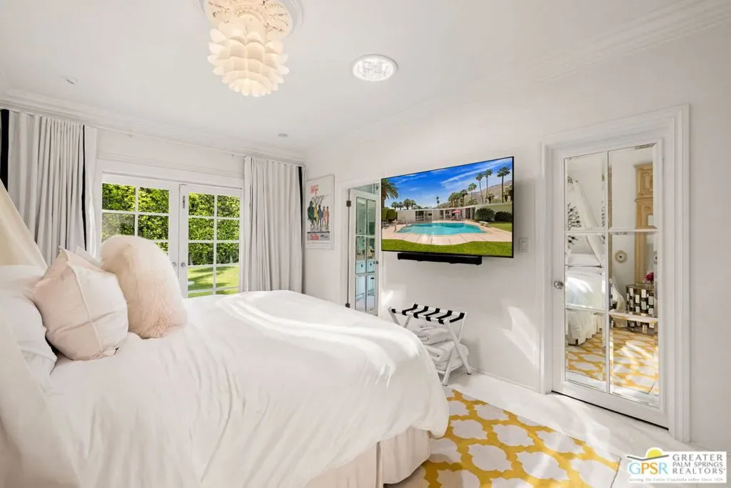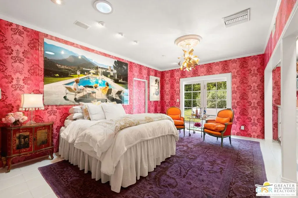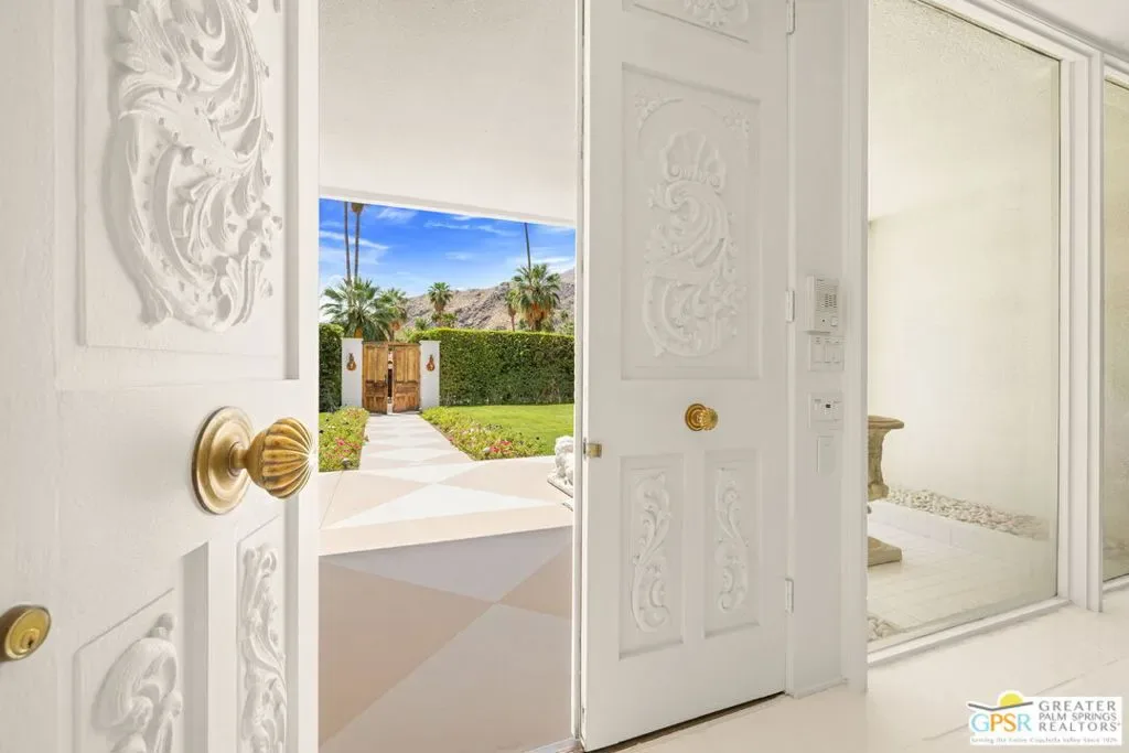 Set within the iconic Old Las Palmas neighborhood – long favored by Hollywood’s elite and prized for its close proximity to downtown Palm Springs’ restaurants, retailers, and entertainment – this ultra-private Hollywood Regency residence captures the essence of classic desert living on an estate-sized lot with magnificent mountain views. Originally designed by Robert Marx, son of Gummo Marx of the legendary Marx Brothers, this residence carries a subtle Hollywood lineage that reflects the glamour and creative spirit of its era. A formal entry framed by floor-to-ceiling glass introduces interiors filled with light and connection to the outdoors. The expansive living room, anchored by a gas fireplace, opens to the backyard through sliding glass doors flanked by floor to ceiling windows while an adjacent formal dining room and adjacent bar create a natural flow for gatherings. A separate family room offers additional living space, also oriented toward the lush, private grounds. The kitchen is thoughtfully positioned for both function and flow, offering a casual sitting area, generous storage, and a dedicated space with built-in wine refrigeration – ideal for both everyday living and entertaining support. The bedroom layout offers flexibility and separation. The Primary Suite opens to the backyard and features a spa-like bath and walk-in closet. Bedrooms Two and Three enjoy west-facing exposure with direct outdoor access and a shared bath, while Bedroom Four (currently styled as an entertainment suite) can easily adapt to a variety of uses and the plumbing is already in place to add an ensuite bath. Outside, mature landscaping surrounds the home, creating a private resort-like setting. The south-facing front yard captures stunning mountain views, while the backyard offers space to relax, entertain, and enjoy the quiet beauty of the desert. A rare opportunity to reimagine a classic Hollywood Regency residence in one of Palm Springs’ most prestigious and desired neighborhoods.