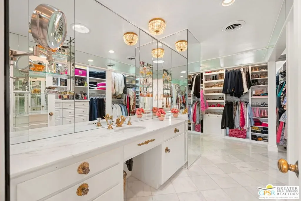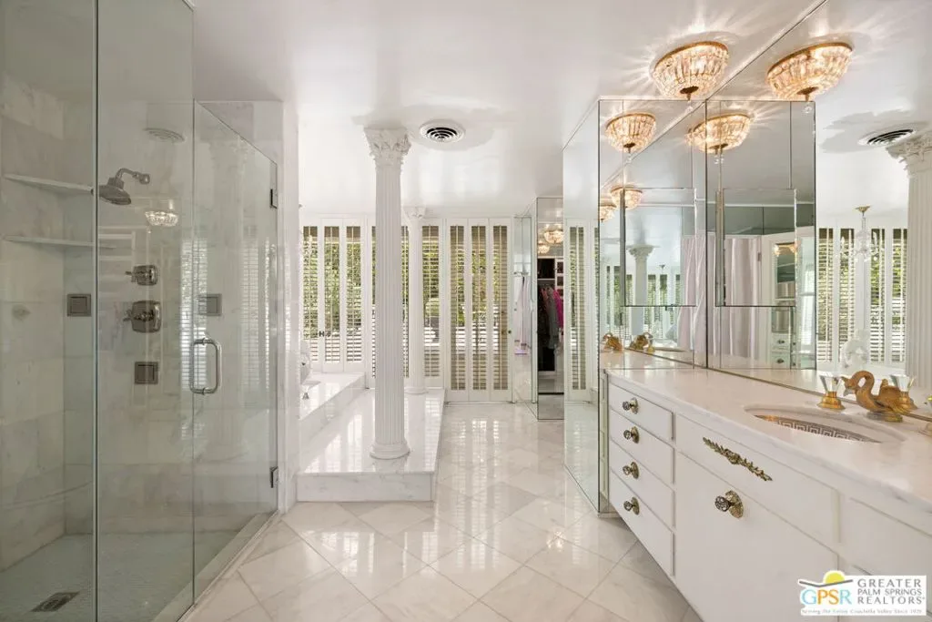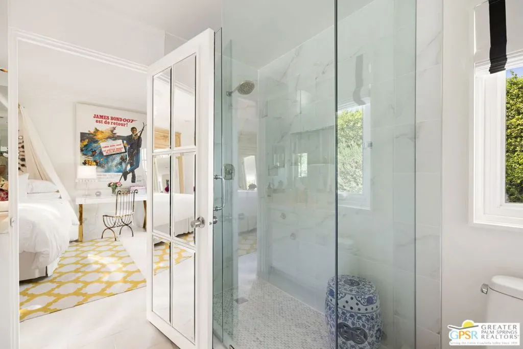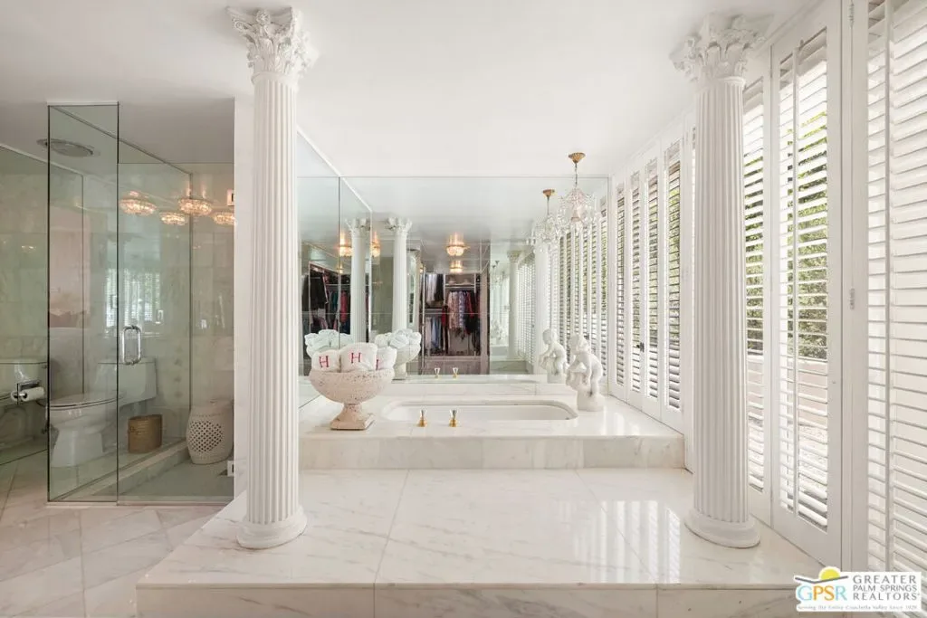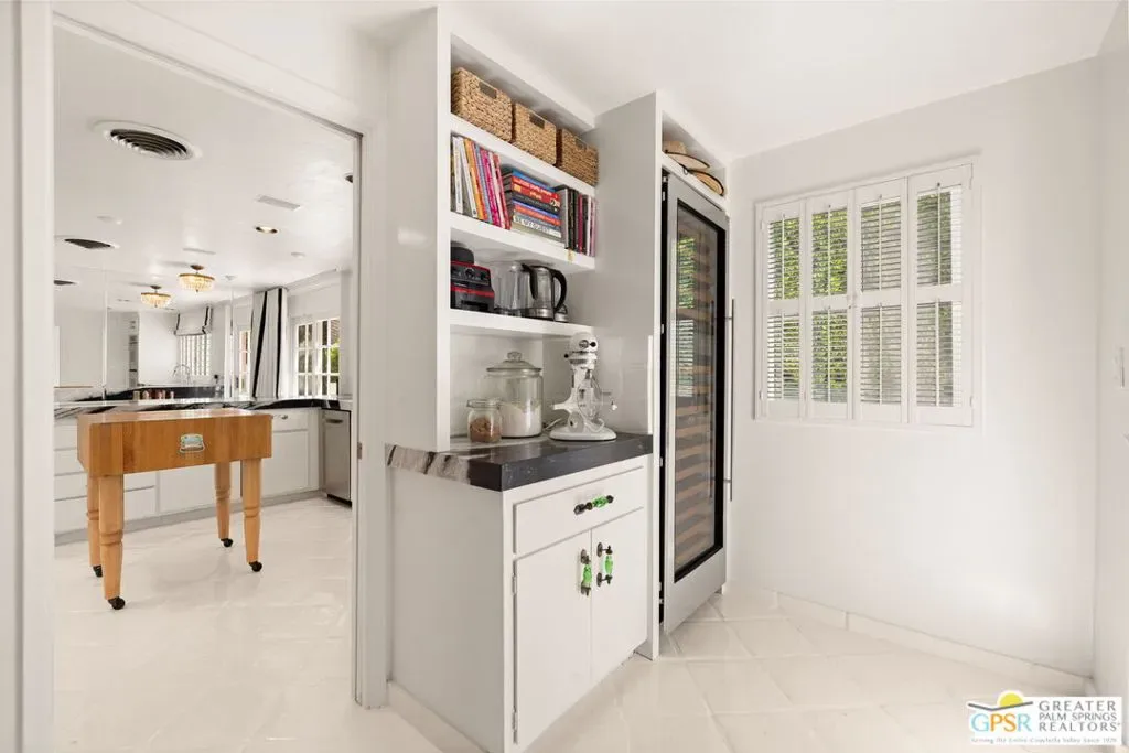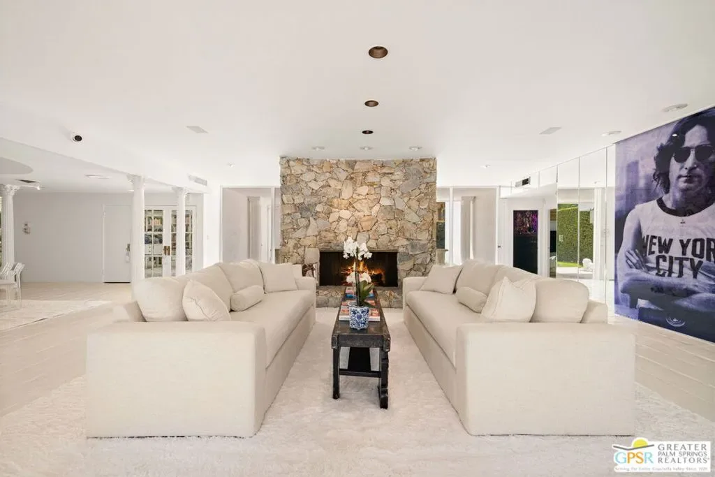 Set within the iconic Old Las Palmas neighborhood – long favored by Hollywood’s elite and prized for its close proximity to downtown Palm Springs’ restaurants, retailers, and entertainment – this ultra-private Hollywood Regency residence captures the essence of classic desert living on an estate-sized lot with magnificent mountain views. Originally designed by Robert Marx, son of Gummo Marx of the legendary Marx Brothers, this residence carries a subtle Hollywood lineage that reflects the glamour and creative spirit of its era. A formal entry framed by floor-to-ceiling glass introduces interiors filled with light and connection to the outdoors. The expansive living room, anchored by a gas fireplace, opens to the backyard through sliding glass doors flanked by floor to ceiling windows while an adjacent formal dining room and adjacent bar create a natural flow for gatherings. A separate family room offers additional living space, also oriented toward the lush, private grounds. The kitchen is thoughtfully positioned for both function and flow, offering a casual sitting area, generous storage, and a dedicated space with built-in wine refrigeration – ideal for both everyday living and entertaining support. The bedroom layout offers flexibility and separation. The Primary Suite opens to the backyard and features a spa-like bath and walk-in closet. Bedrooms Two and Three enjoy west-facing exposure with direct outdoor access and a shared bath, while Bedroom Four (currently styled as an entertainment suite) can easily adapt to a variety of uses and the plumbing is already in place to add an ensuite bath. Outside, mature landscaping surrounds the home, creating a private resort-like setting. The south-facing front yard captures stunning mountain views, while the backyard offers space to relax, entertain, and enjoy the quiet beauty of the desert. A rare opportunity to reimagine a classic Hollywood Regency residence in one of Palm Springs’ most prestigious and desired neighborhoods.