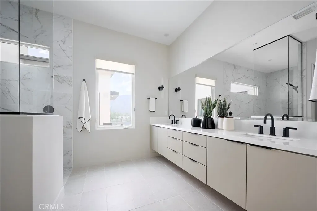 Gourmet Kitchen with Cafe Stainless Steel appliances package, Standard white Thermofoil cabinets throughout with concealed hinges and chrome handles. Beautiful Daltile one Quartz in Lucent white. Luxurious primary suites with floating cabinets large primary walk in closets with Quarte Lucent White with 6 ” backsplash in primary bathroom & 4” backsplash in all secondary’s. This is where timeless design meets modern desert living. Miralon Association offers 97 acres of open space, 7 miles of walking trails. 3 dog parks and thousand of oil trees. Amenity center features state of the art fitness facility WIFI space, full service bar, chef demonstration kitchen resort style pool and spa with private clubhouse to enjoy.