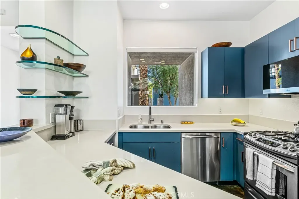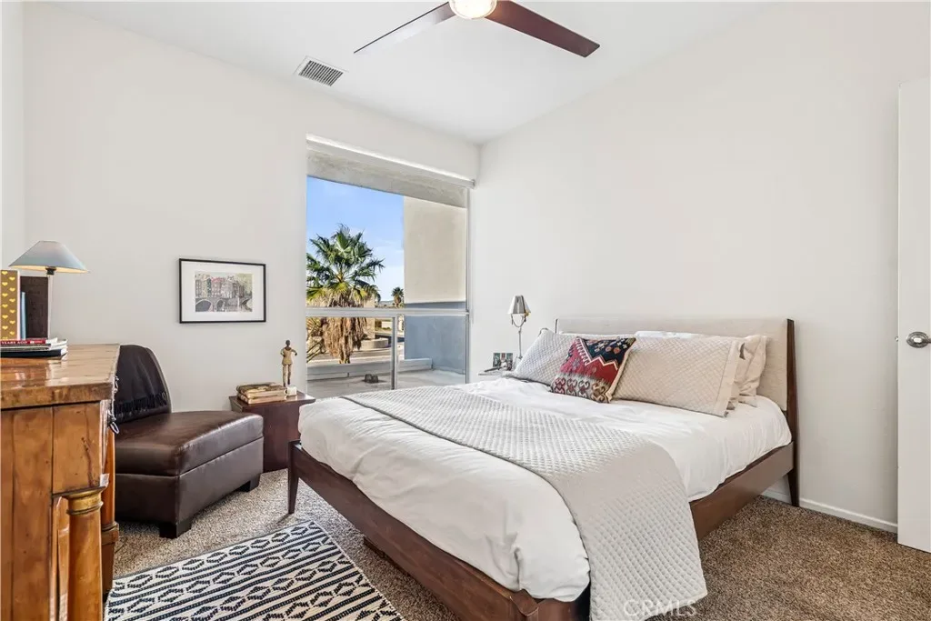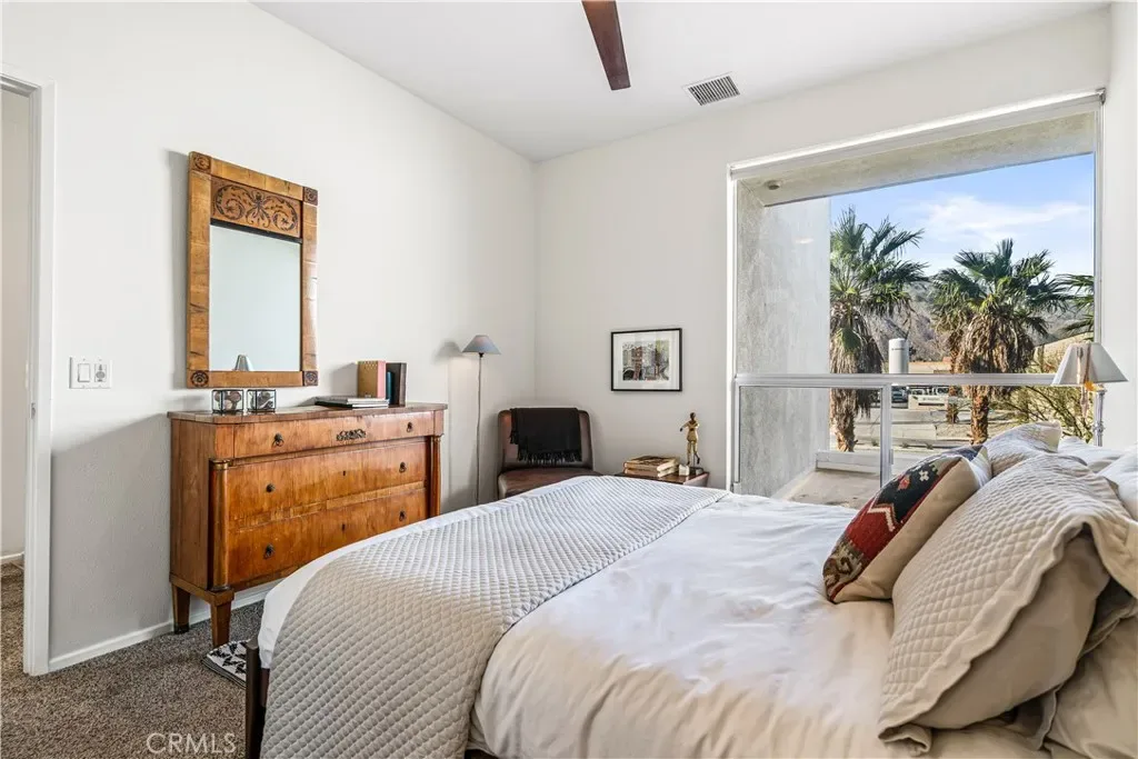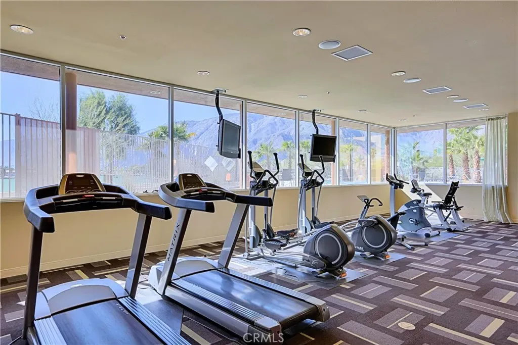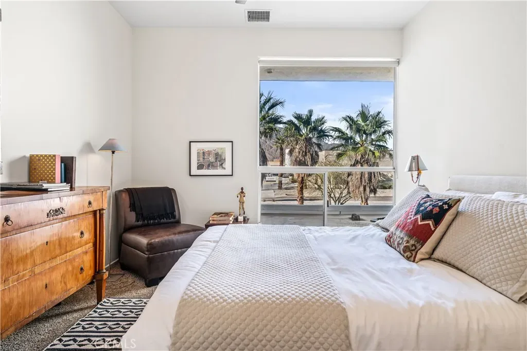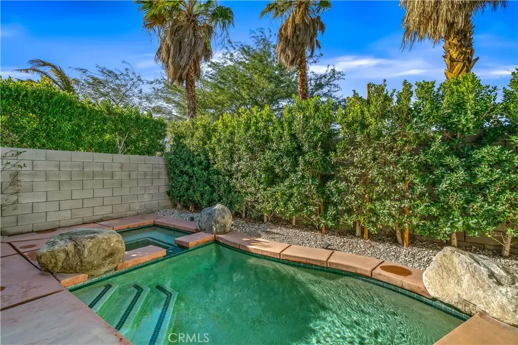 Welcome home to Palm Springs and affordable, luxury living at its finest… enter this gated community and experience all that indoor/outdoor desert living can offer… The home – on fee land you own, no lease – features doors and walls of glass that fill the vaulted main living space with light and offer mountain views. Its open floor plan creates an entertaining space warmed by a fireplace inside while the large glass doors beckon you outside to enjoy a private pool and spa with yet another fireplace. The main living area includes a guest powder room and easy access to the attached, private garage. Upstairs are two en-suite bedrooms – one with a nice outdoor deck. The upstairs also features the washer/dryer closet and an office nook space with mountain views. All of this in a great, gated community with two common pools and spas, a gym, and a clubhouse with a kitchen and pool table great for entertaining. Perfect to live full time, lock it and leave it, or whatever lifestyle fits you best. Don’t miss this wonderful opportunity at a great price. Again, welcome to some of the best Palm Springs living at a great price!