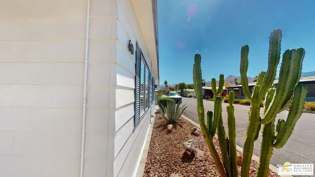 With Stunning Views of Mt. San Jacinto from the Living Room and Dining Room, this 2 Bedroom 2 Bath home has been nicely renovated. Currently used as an Artist’s “Studio”, this 1248sf home is ready for it’s next adventure. Keep it as an Artist’s “Studio” or use it as a residential property. The home features custom Plantation Shutters and plenty of public and personal spaces. The fenced patio features the wonderful view of Mt. San Jacinto as well. The home includes an in-unit stackable washer and dryer and Ceiling Can lights throughout, which add to the light and airy feeling of this great home. The monthly space rent includes a Clubhouse, 3 pools, water, trash and sewer. Palm Springs View Estates is conveniently located near Trader Joe’s, Target, Bart’s Bar and the new Eagle Bar to be opening in 2026. There are plenty of restaurants, golf and entertainment, especially at the Cathedral City Agua Caliente Casino and The Roost Bar. Palm Springs View Estates is a 55 plus community. Buyers must have park approval to close escrow. Contact the park manager for more details.