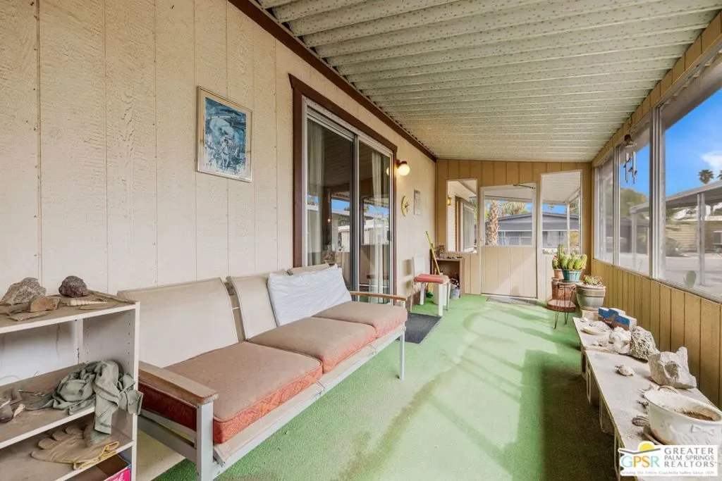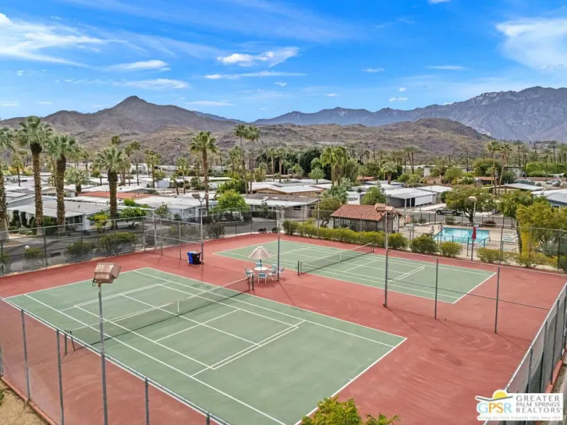 Welcome to your dream Palm Springs lifestyle in this charming manufactured home nestled in the highly desirable Palm Springs View Estates. This spacious 2-bedroom, 2-bathroom manufactured double-wide home in Palm Springs View Estates is seeking its next owner. This home offers the option to keep it as is or transform it into your own. Palm Springs View Estates is a 55+ community that boasts community pools and spas. There’s also covered carport parking for at least two cars, and the primary suite features a spacious ensuite bathroom. Welcome to your new home! The 2-bedroom, 2-bathroom home has a spacious interior of 1440 square feet. It’s conveniently located near stores, restaurants, two public 18-hole Arnold Palmer-designed golf courses, and minutes away from Agua Caliente Casino. Move-in conditions include furnishings and a spacious storage shed.The open floor plan features am additional versatile Screened Den/California Room, perfect for enjoying the cooler seasons in comfort and style.Affordable living under rent control with space rent at approximately $714 per month, including water, sewer, and trash, makes this a great value for this prime location. (Park requires income of 3x space rent and park approval prior to closing.)The community amenities are abundant, including three sparkling pools and spas, walking trails, and a clubhouse featuring a gym, billiards, ping pong, a community kitchen, and a cozy TV lounge.However, please note that per community rules (CC&Rs), a second resident may be 45+. Owner-occupants only, with no rentals, to preserve the peaceful and neighborly environment. Click on Video Tour for walk through – Additional photos coming soon –