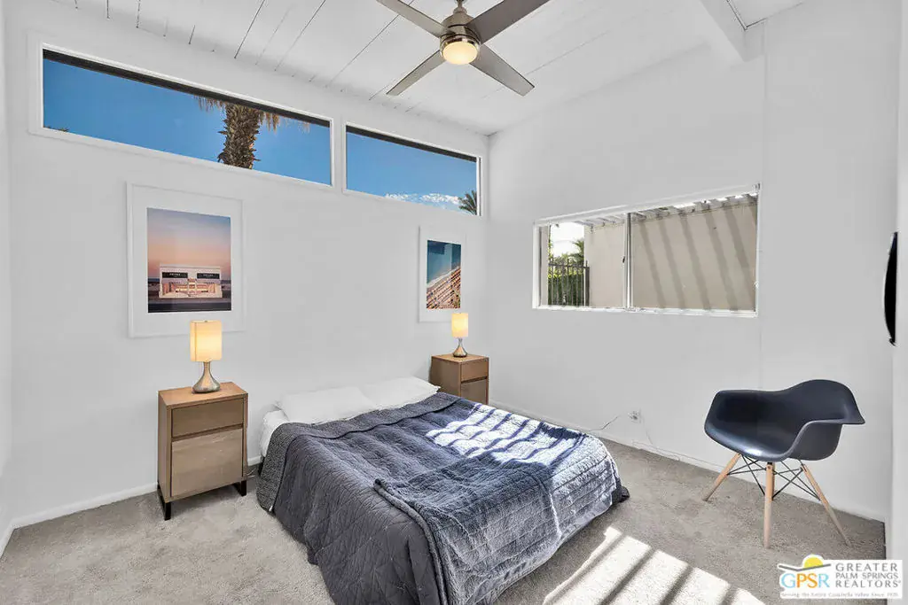 Unlock the potential of this expanded mid-century modern Meiselman home in the iconic Racquet Club Estates of Palm Springs. Set on an expansive 1/4-acre lot, this architectural gem offers the rare opportunity to restore, redesign, or fully reimagine a true piece of desert modern history. Spanning approximately 1,800 square feet, the home features a dramatic south-facing wall of glass that floods the living room with natural light and frames views of the kidney-shaped pool and mature palms beyond. A classic fireplace anchors the space, preserving the home’s authentic mid-century character. The primary suite retains its vintage tiled bath and walk-in closet, while two additional bedrooms provide generous accommodations for guests or creative flex space. An expanded great room with open kitchen layout offers tremendous upside the perfect canvas to create a show-stopping modern desert retreat. Outside, the oversized lot delivers privacy, scale, and room to elevate the poolside experience into a true resort setting. Mature palms enhance the serene ambiance and underscore the property’s timeless Palm Springs appeal. Adding significant value, the sellers have already invested $25,000 in custom architectural plans for a full remodel included in the sale. Some upgrades done; copper plumbing, HVAC system, pool heater, and pool resurfaced in 2022. Whether you’re a mid-century purist, design visionary, or savvy investor, this is a great opportunity to create something exceptional in one of Palm Springs’ most celebrated neighborhoods.