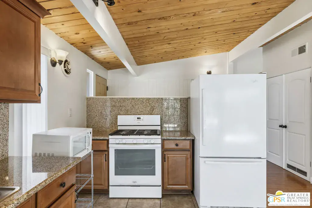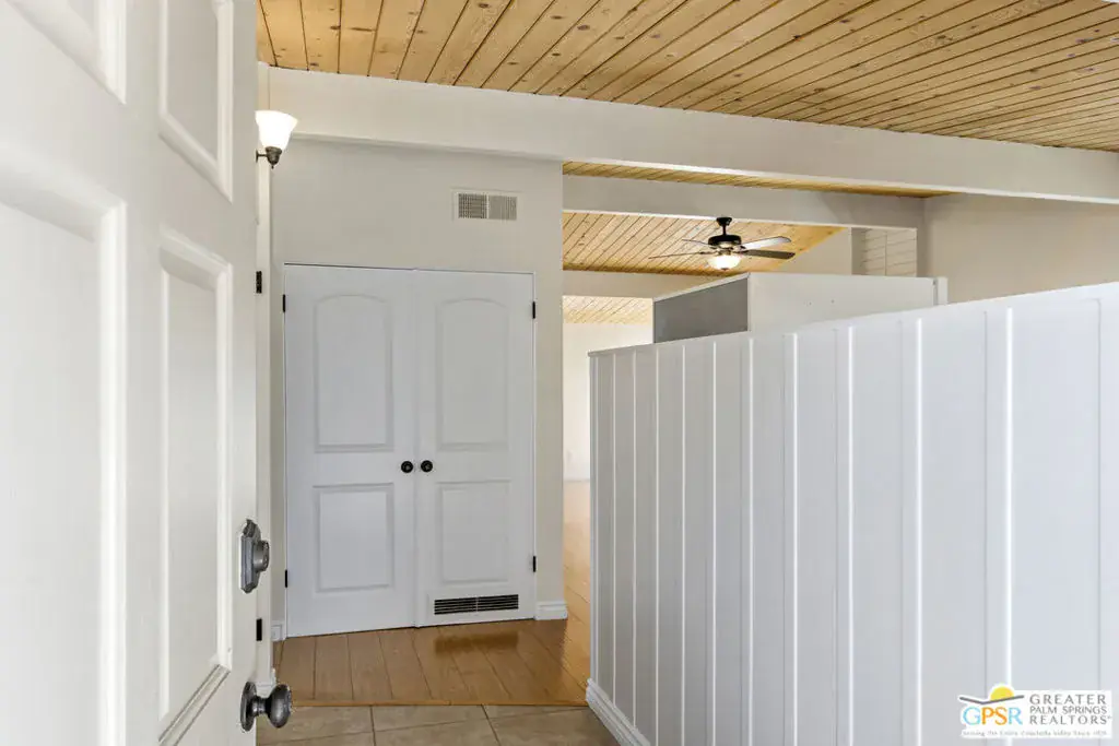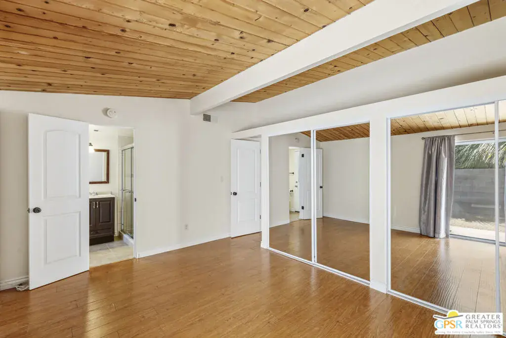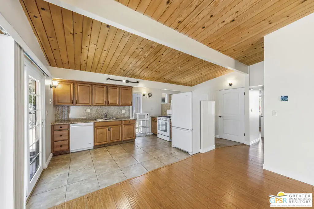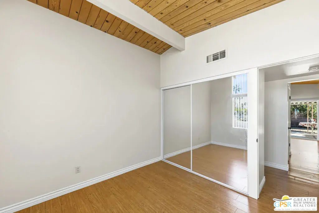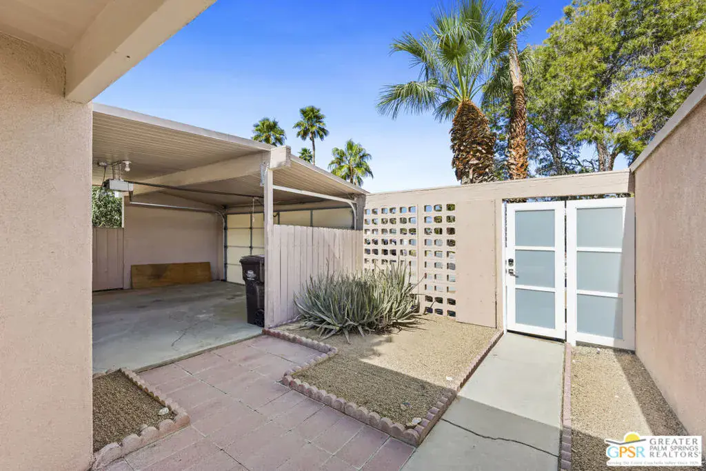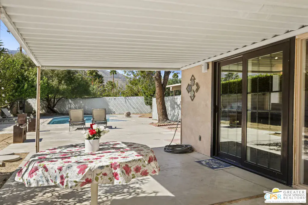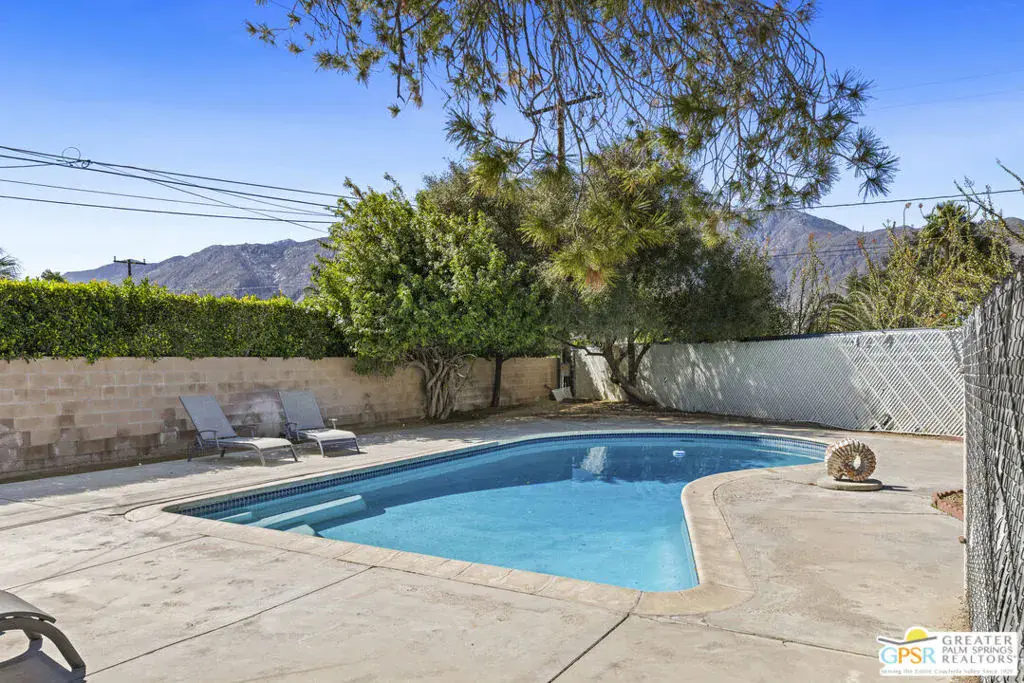 Mid-Century Alexander Built in 1961. Original Vaulted ceilings, 3 BR 1 3/4 Bath with Pool. Located on a clean Cul-de-sac and close to Markets, Shopping Center with Restaurants, Schools & Park. Close to downtown Palm Springs. Laminated Flooring plus Tile in the Kitchen & Bathrooms. Fenced yard with closed in carport with Garage Door. Beautiful view of the mountains. New Front gate in 2023, New Hydro Jet Sewer Line in 2024, New A/C in 2025, New Pool Pump in 2026, No pool heater. This property has been a Long Term Rental for 40 years and is being sold in a “AS IN” condition.