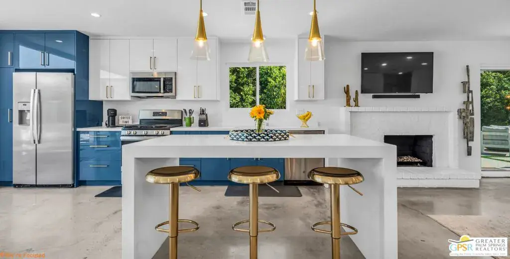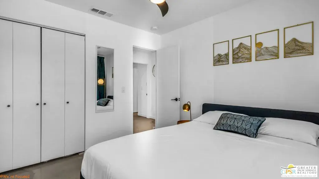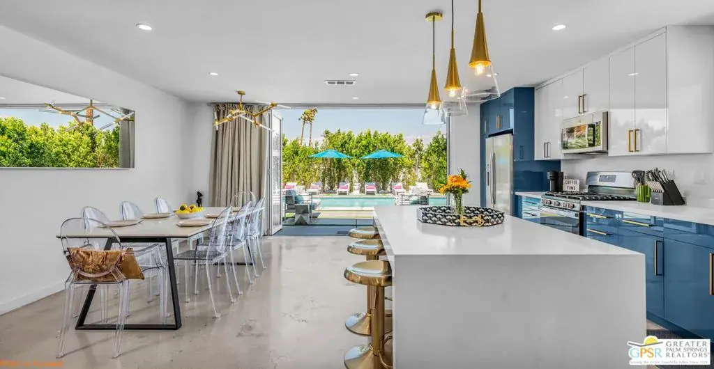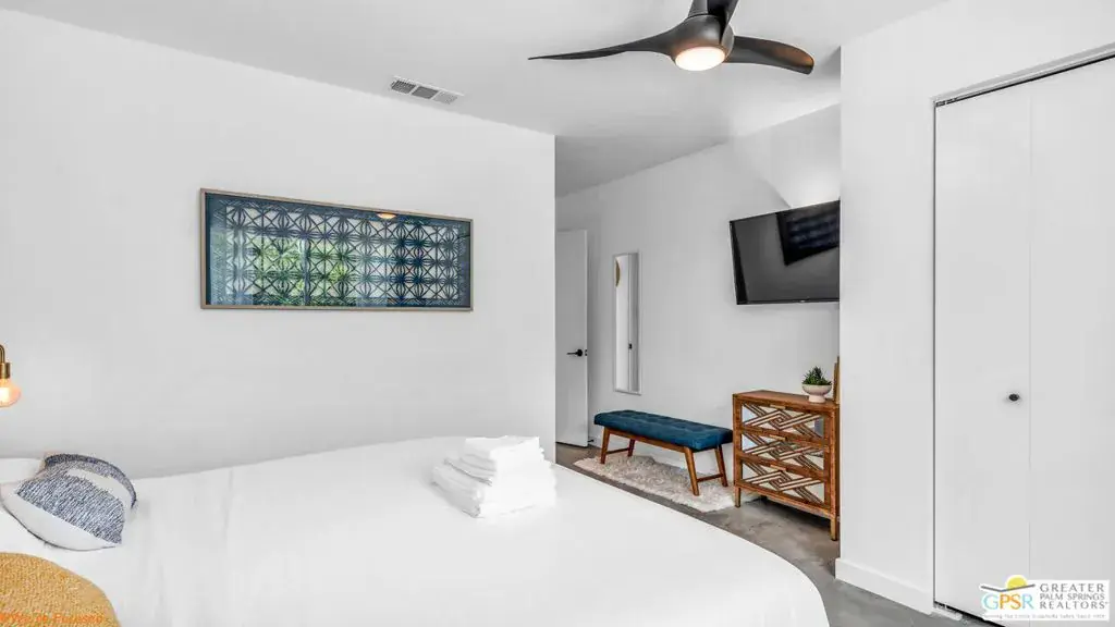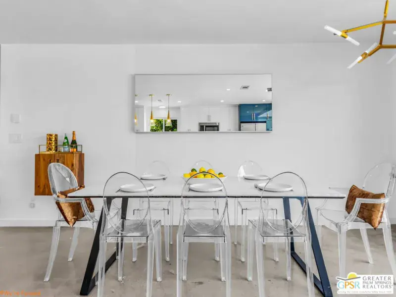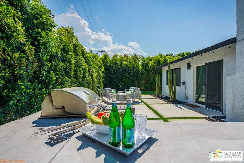 Experience the pinnacle of desert living in this 4-bedroom, 3.5-bath modern oasisa fully reimagined retreat where sophistication meets serenity. Set on a rare double-wide lot, this home is surrounded by over 100 mature ficus trees, creating a lush private sanctuary with unobstructed mountain views. Step outside to a resort-style escape featuring a saltwater pool and spa with baja shelf, a 10-person hot tub, and a firepit beside a turfed play area. Entertain with ease thanks to a built-in BBQ, outdoor dining area, and dedicated pool bath, all enhanced by $150K+ in professional hardscaping and landscaping, sleek block walls, and ample parking pads. Inside, natural light pours through expansive glass doors connecting the living area to the outdoors. The chef’s kitchen boasts quartz counters, stainless steel appliances, and a Carrara marble dining table centerpiece. Modern touches abound: polished concrete floors, floating vanities, and two primary suites with en-suite baths.Offered fully furnished and turnkey, this property has a proven short-term rental history with rave reviews, making it ideal as a luxury investment or personal retreat. Additional upgrades include a new HVAC system, leased solar, and a new Pentair saline system for effortless maintenance.Live or invest in one of Palm Springs’ most desirable neighborhoods where modern elegance, privacy, and income potential unite in one extraordinary property.